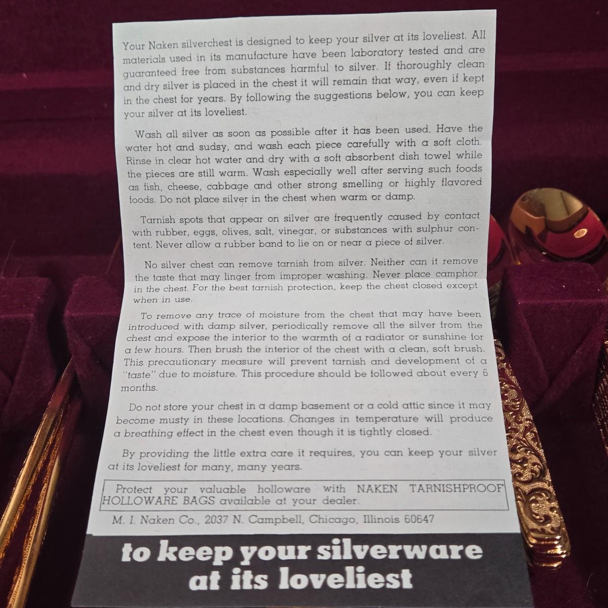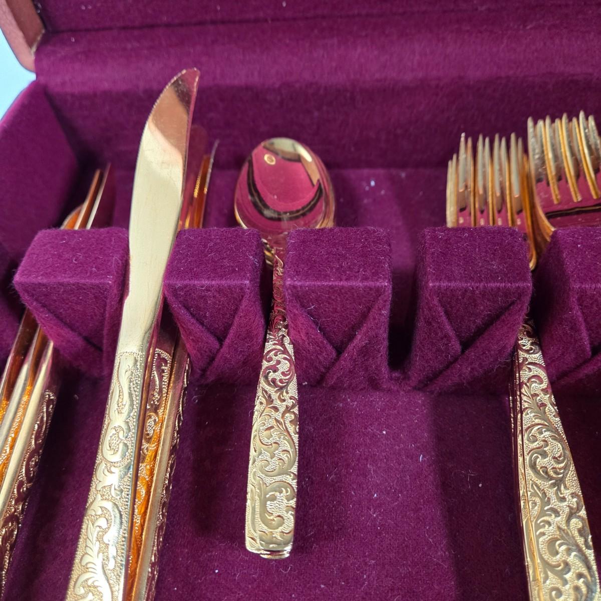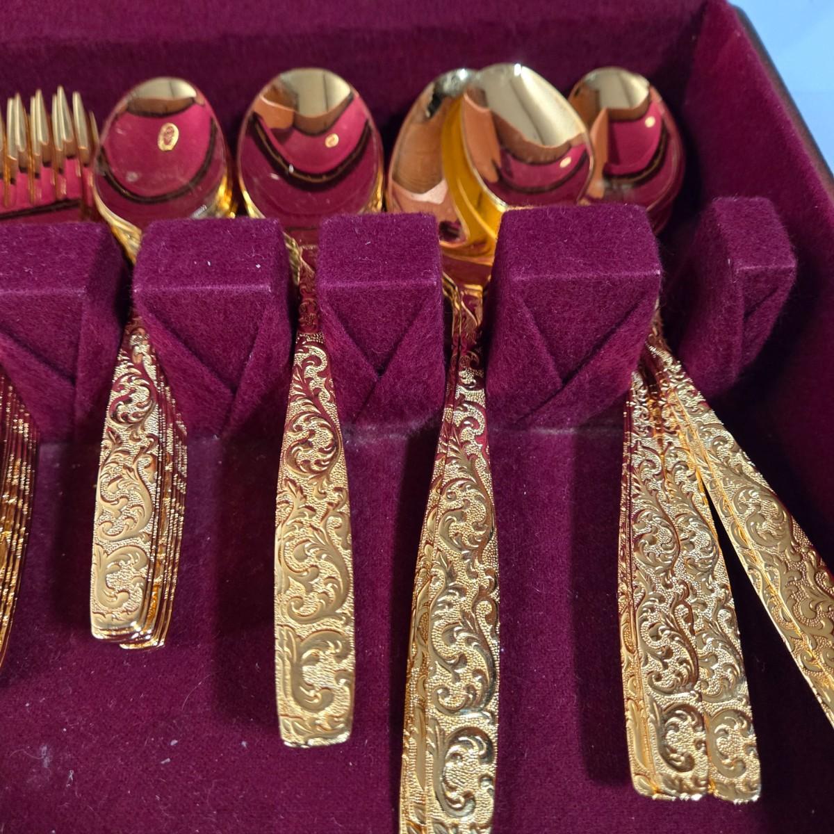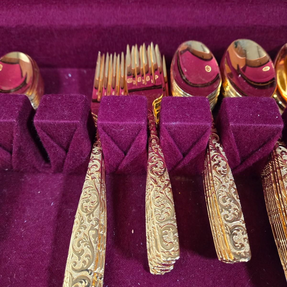 LOT 29D: Naken Gold Flatware Set in Wood Chest
