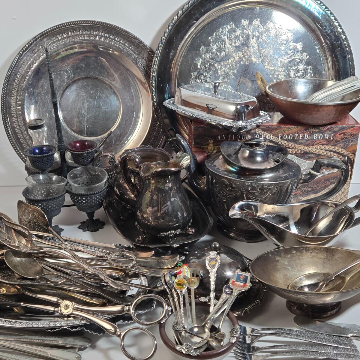 LOT 34D: Huge Lot of Silver Plated Pieces and More