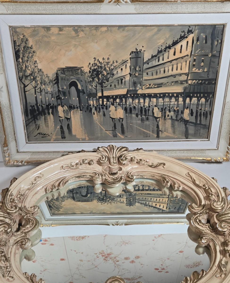 LOT 35D: Parisian City Scape Print and Ornate Vintage Wall Mirror