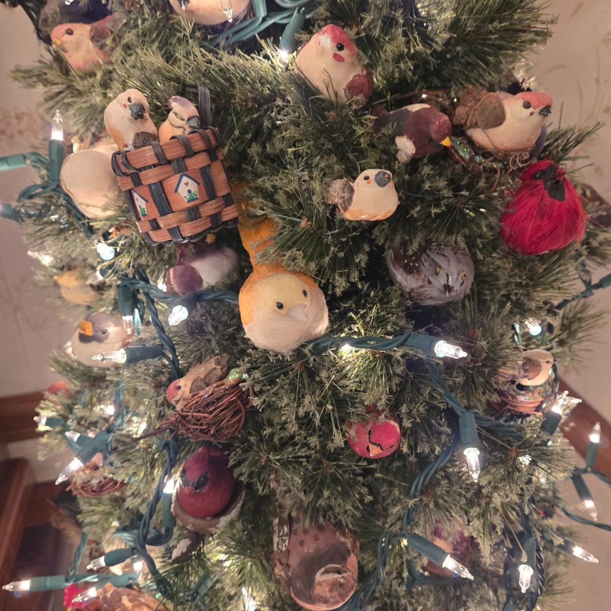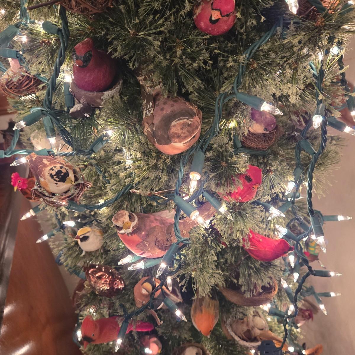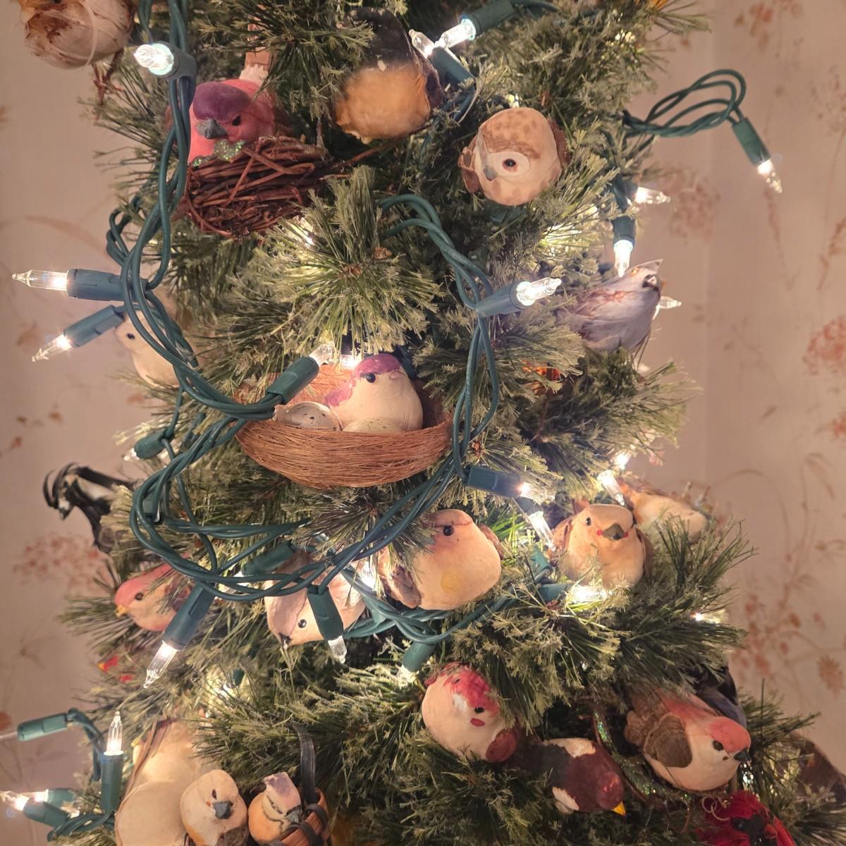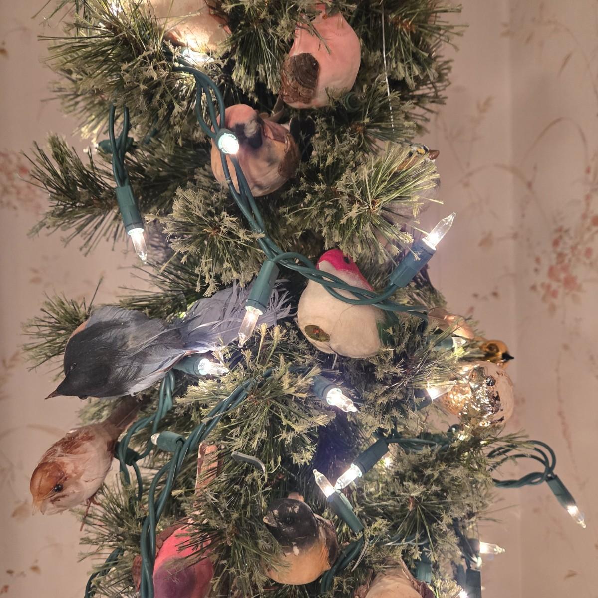 LOT 39D: Christmas Tree with White Lights & Multiple Bird Ornaments and Santa