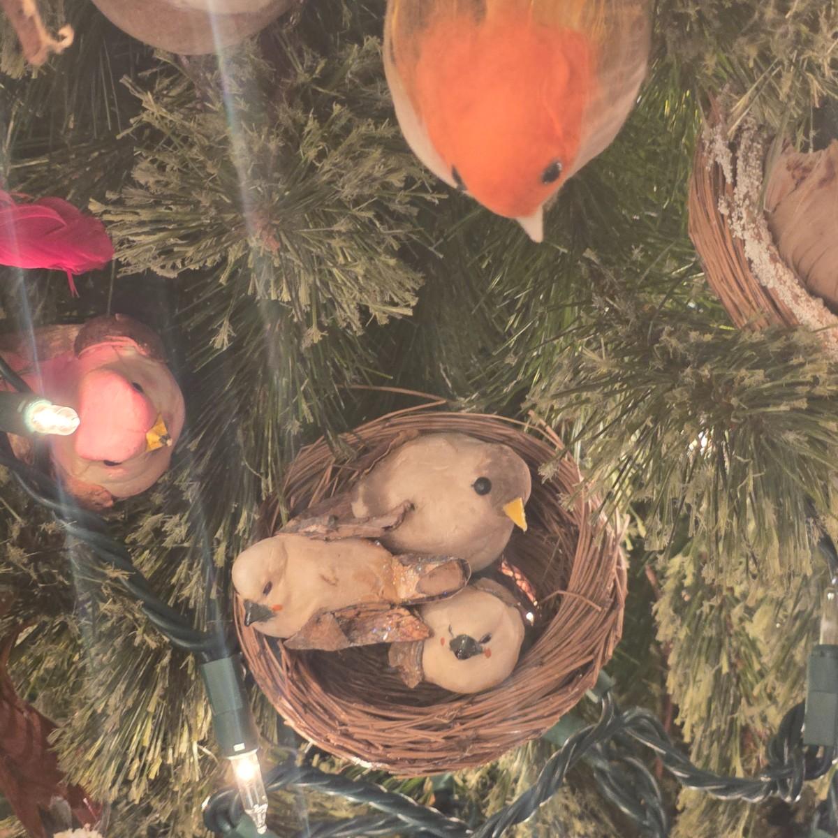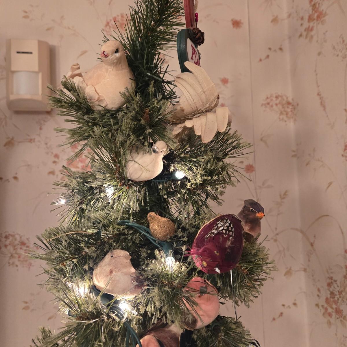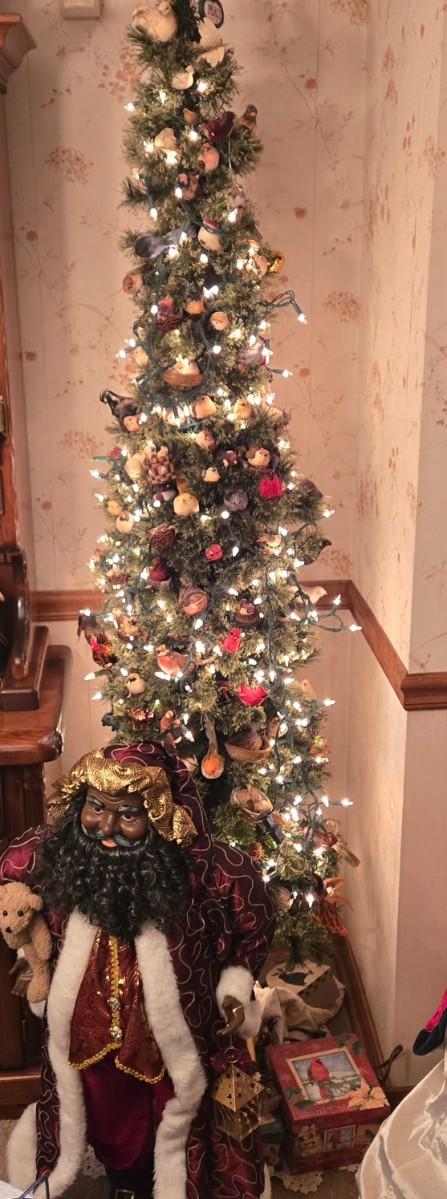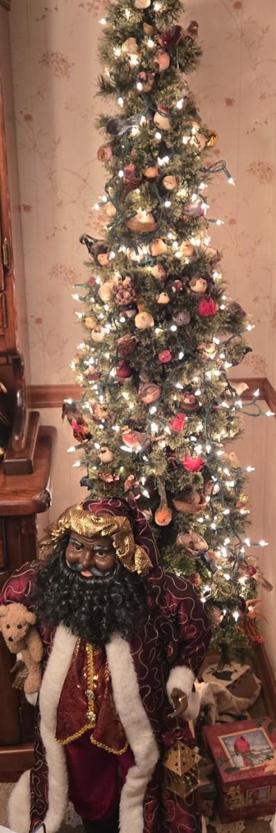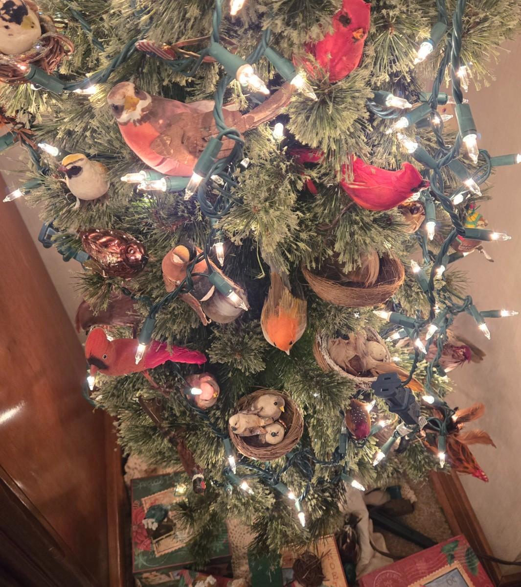 LOT 39D: Christmas Tree with White Lights & Multiple Bird Ornaments and Santa