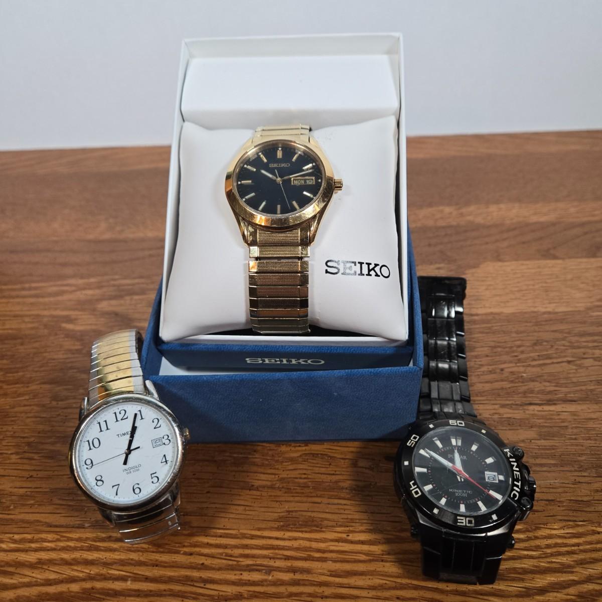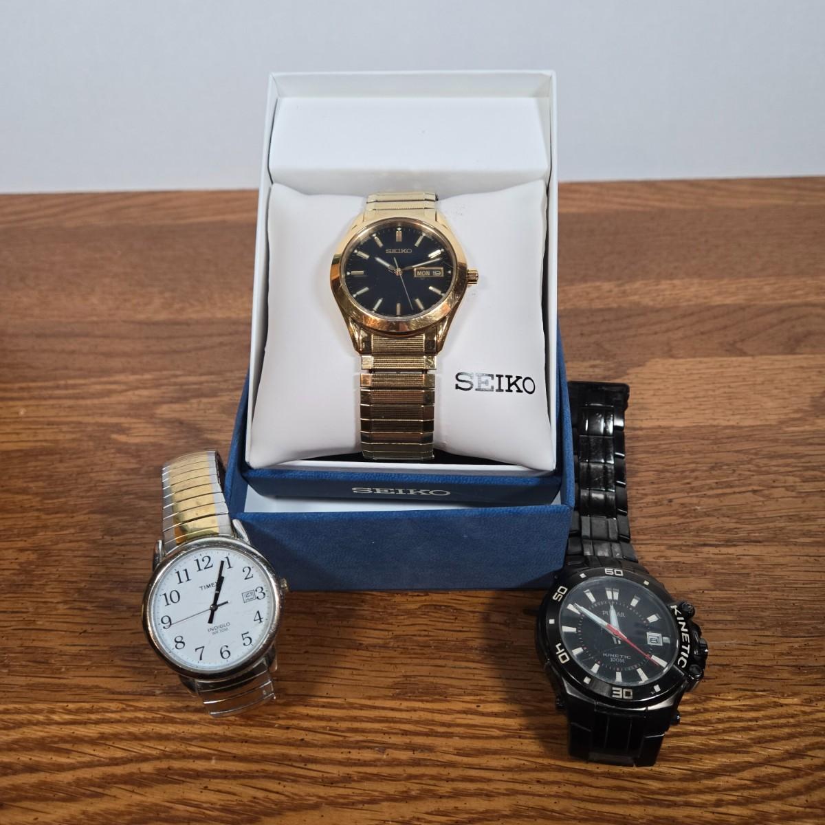 LOT 45X: Men's Seiko Watch with Original Box & Pulsar, and Timex Watches