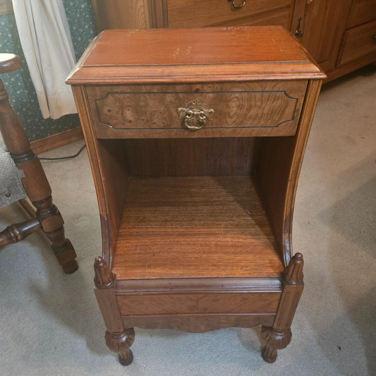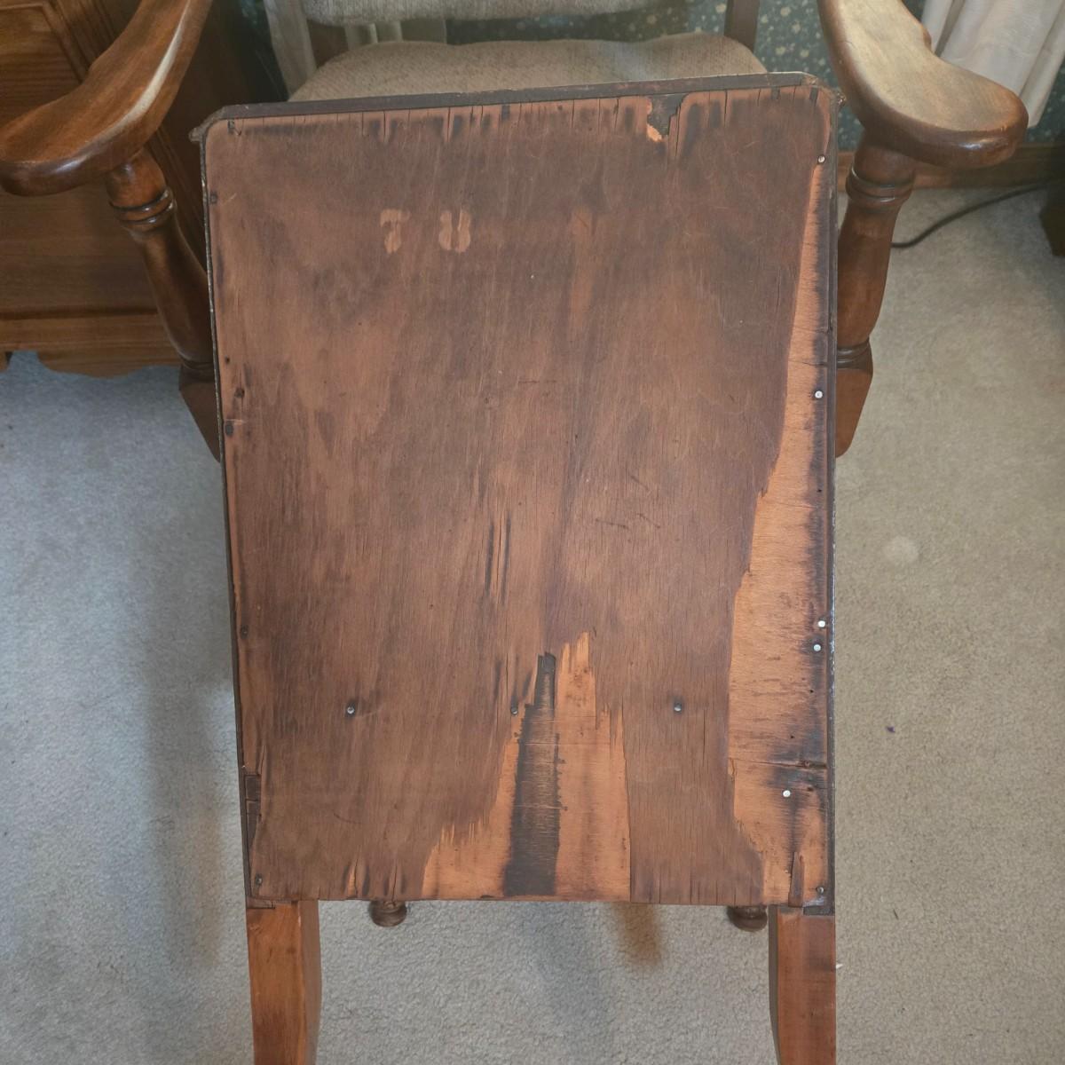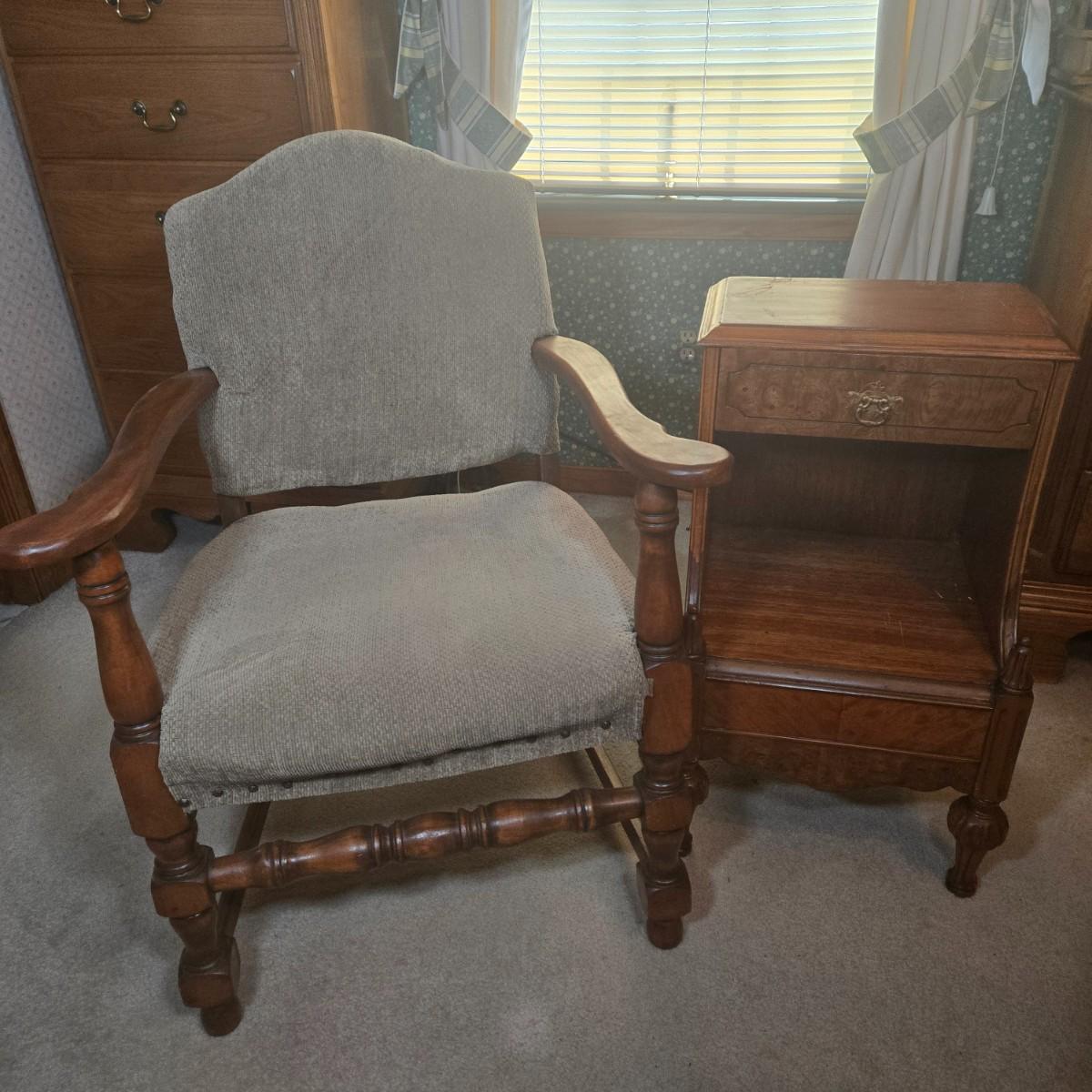 LOT 52X: Vintage Accent Chair and Side Table with Drawer and Shelf
