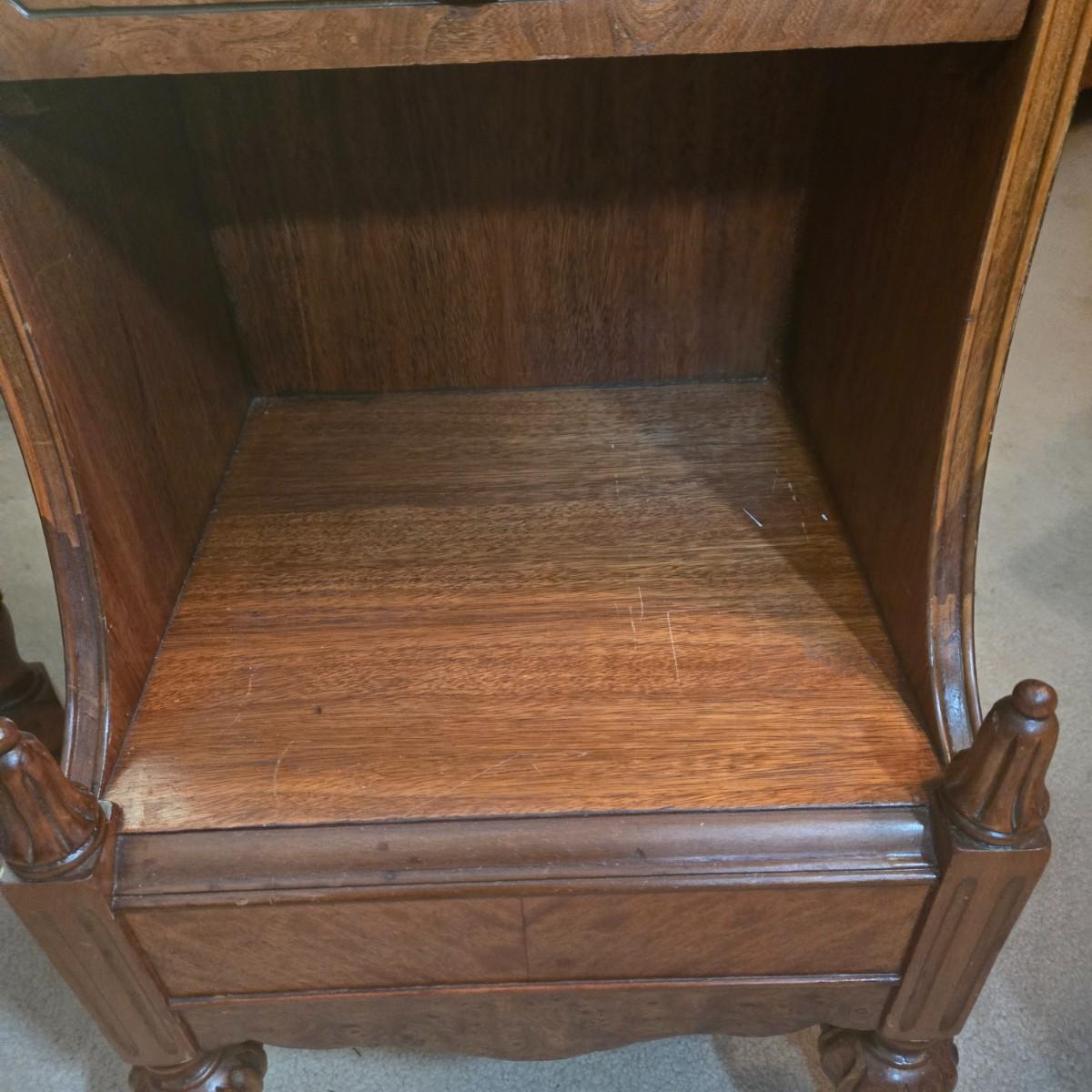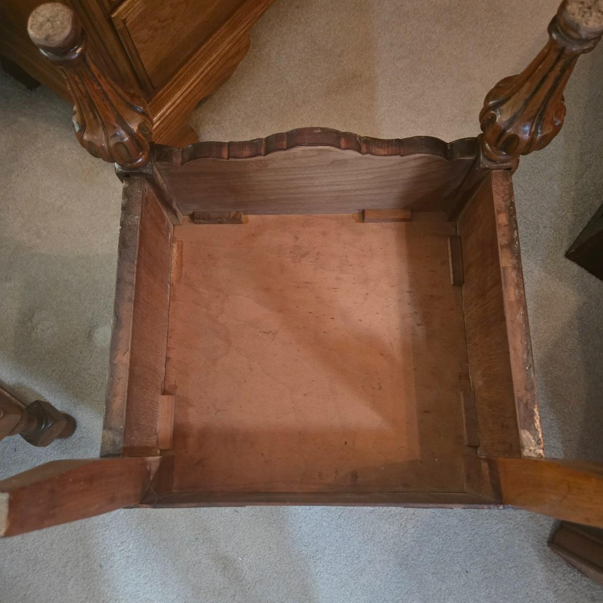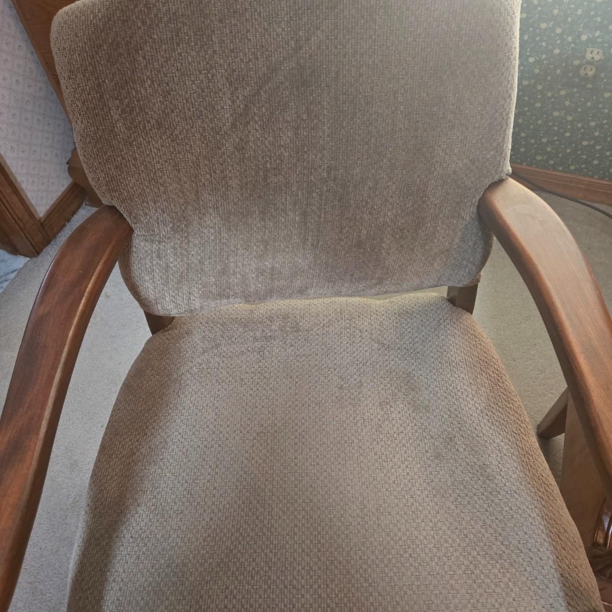 LOT 52X: Vintage Accent Chair and Side Table with Drawer and Shelf