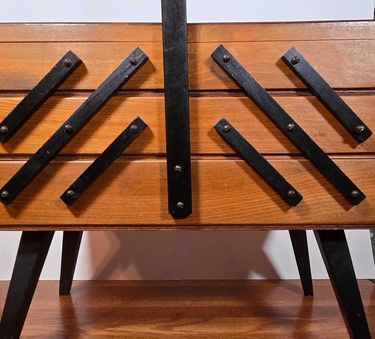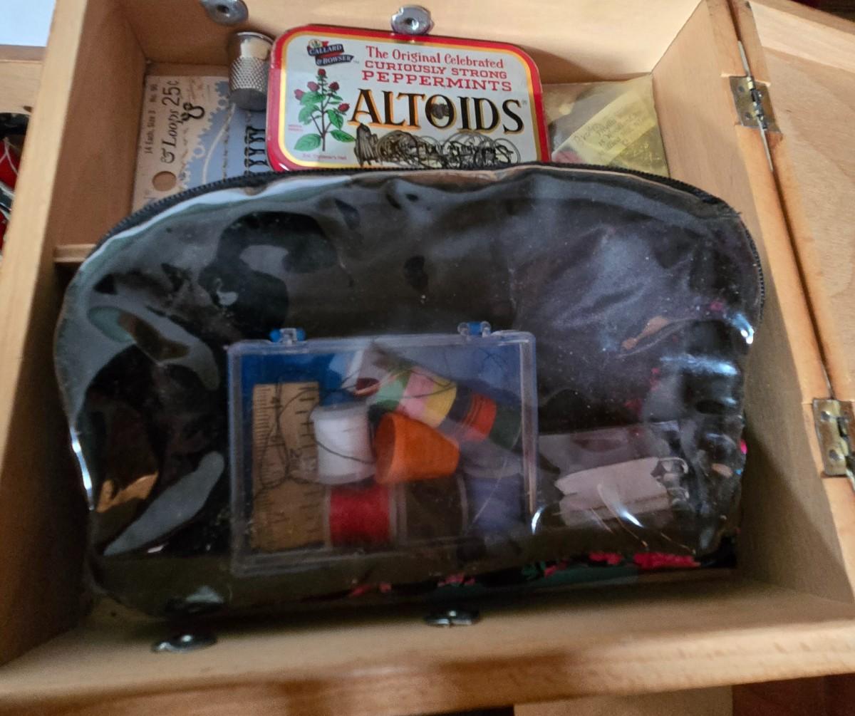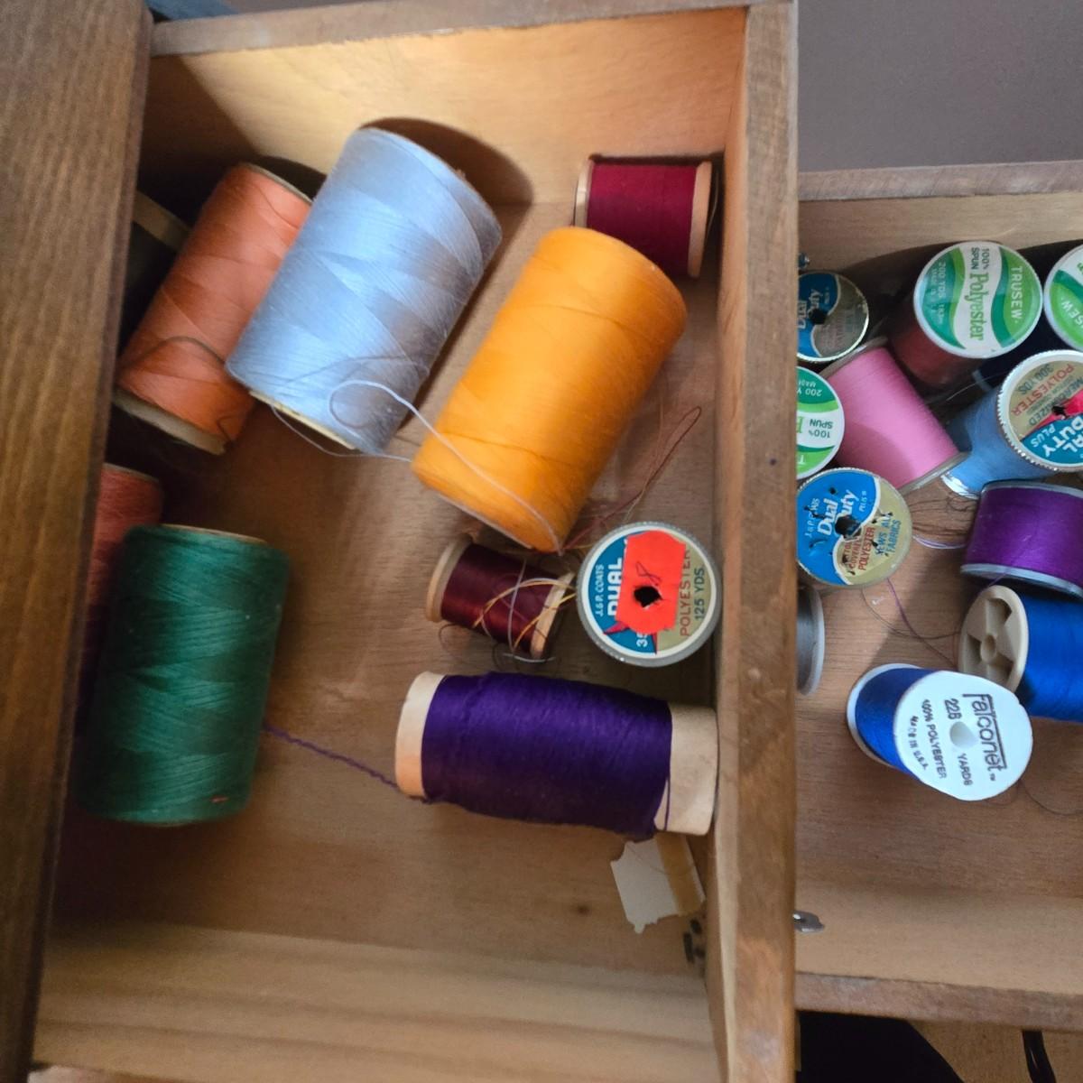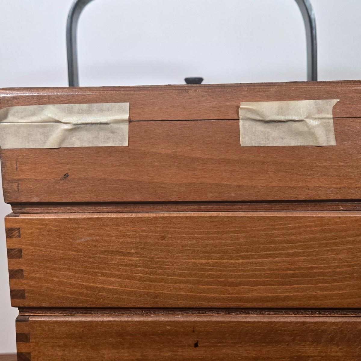 LOT 57X: Vintage Cantilever Sewing Box with Various Sewing Supplies