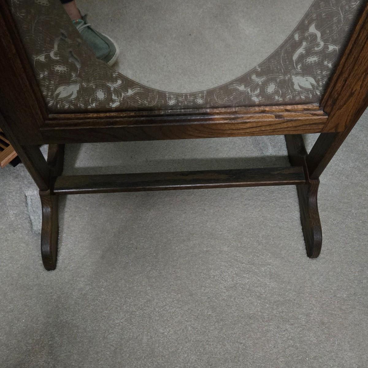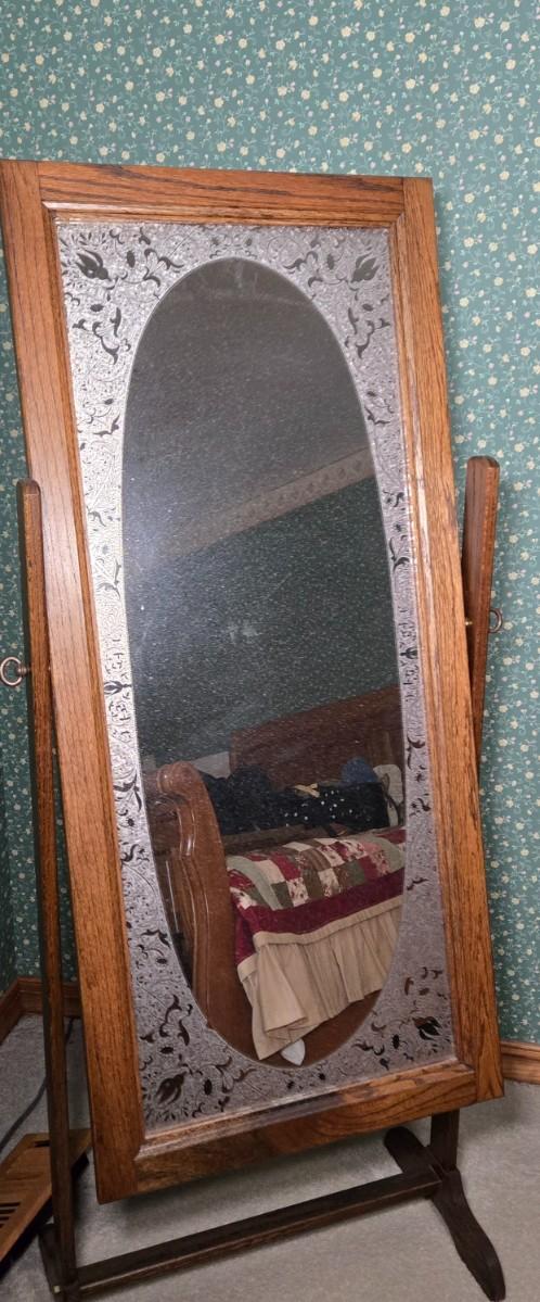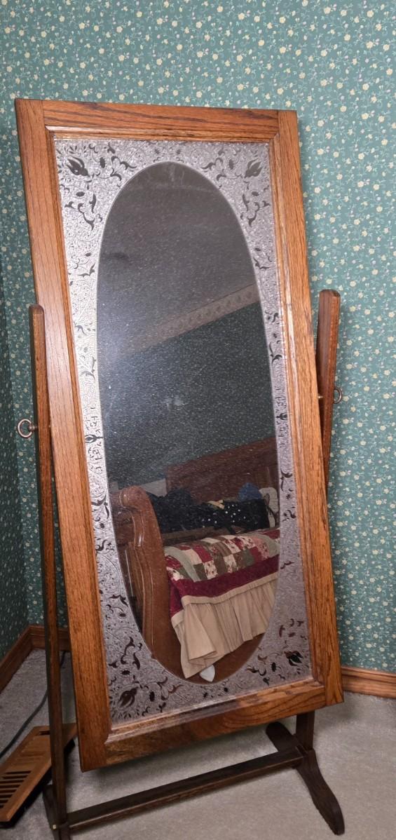 Total height is 56.5/ mirror is 44 tall by 20 wide./Please see all pictures as they are the best representation of the items. The pictures show condition, measurements if taken, and what is included in the lot. Due to the large amount that we photograph and the time frame, we are not always able to take measurements. All items unless noted, are pre-owned and have been used. If you purchased furniture, you must bring help. We do not allow one person to carry large furniture out on their own. Bring help, tools and a truck for the safety of our client’s homes, and your personal safety. Any damages that result to the property including walls, and floors due to moving of the furniture will be charged to the buyer. Company policy. Thank you.