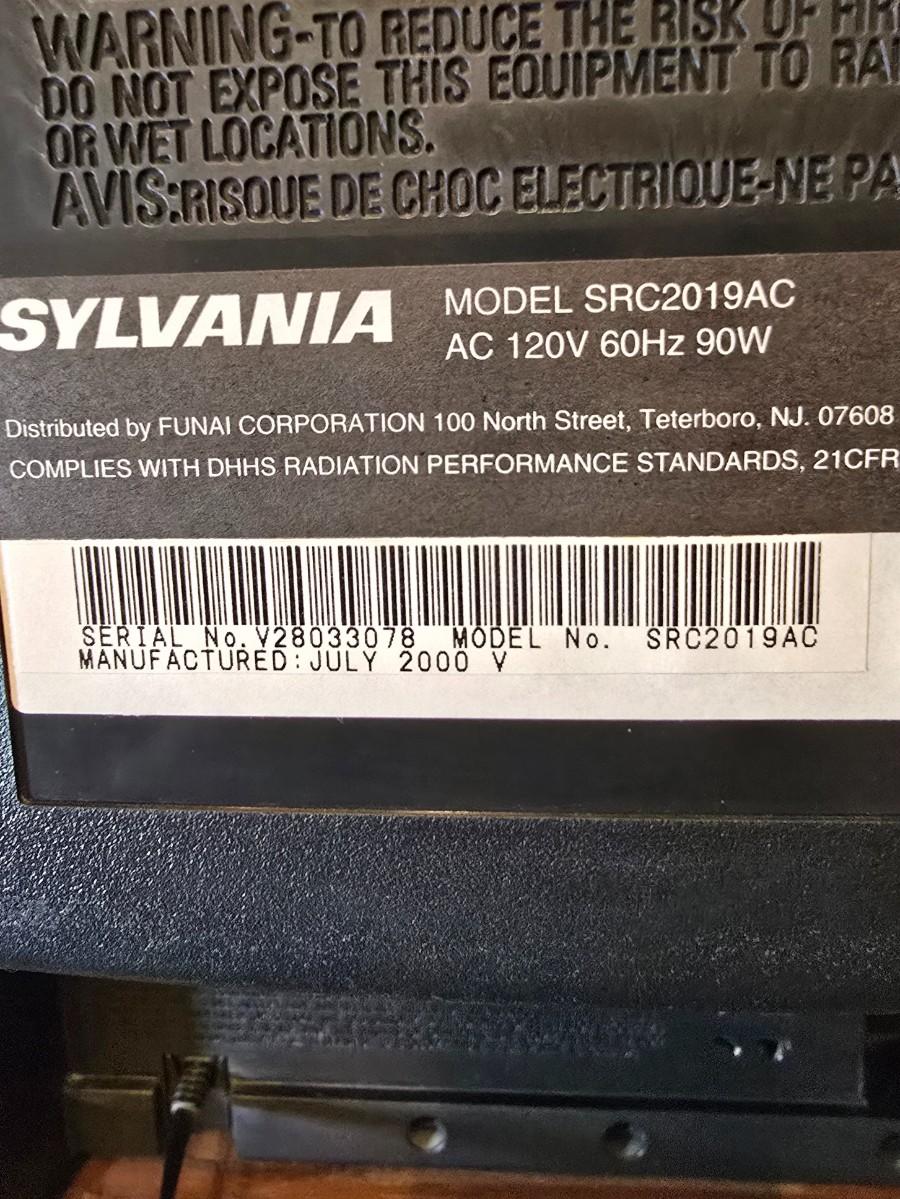 LOT 75Z: 19" Sylvania TV/VCR SRC2019AC