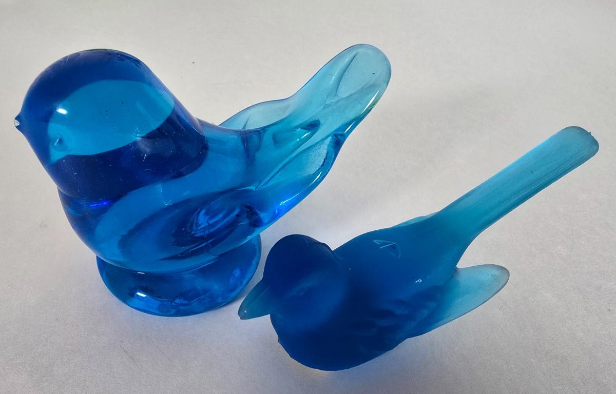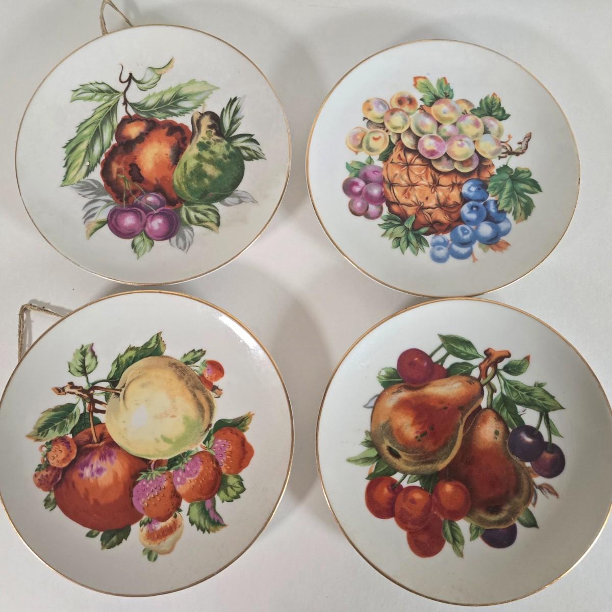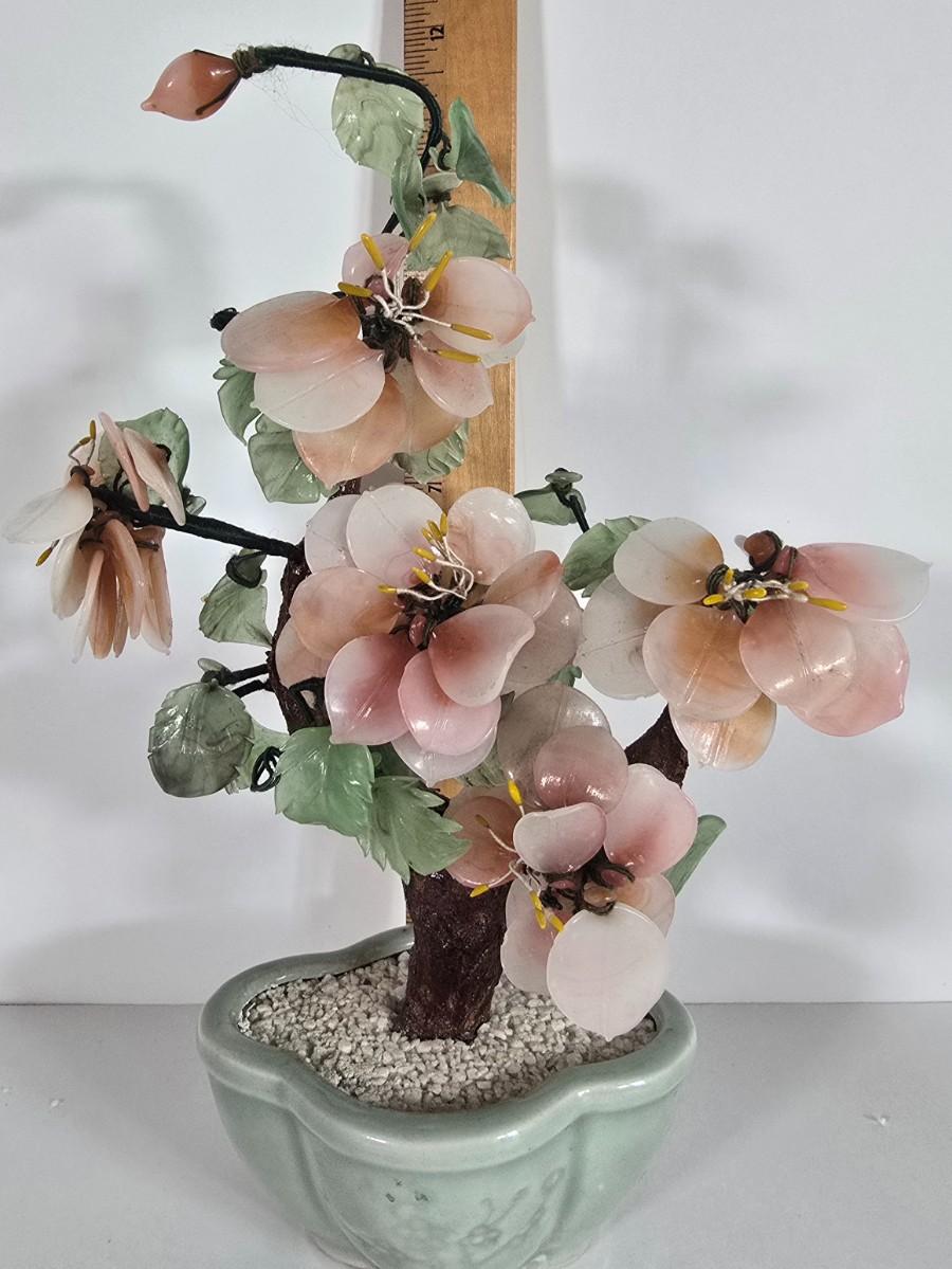 LOT 83L: Vintage "Jade" Glass Bonsai Tree, Decorative Plates, Blue Bird of Happiness and Apple & Pear Glass Paperweights