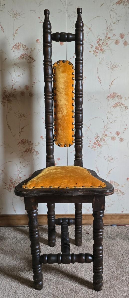 LOT 102L: Vintage Spanish Jacobean Style Hall Prayer Chair- Renaissance Gothic Revival