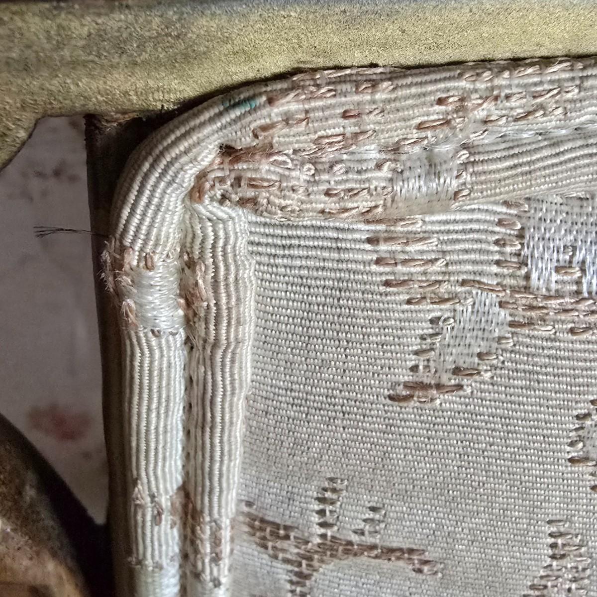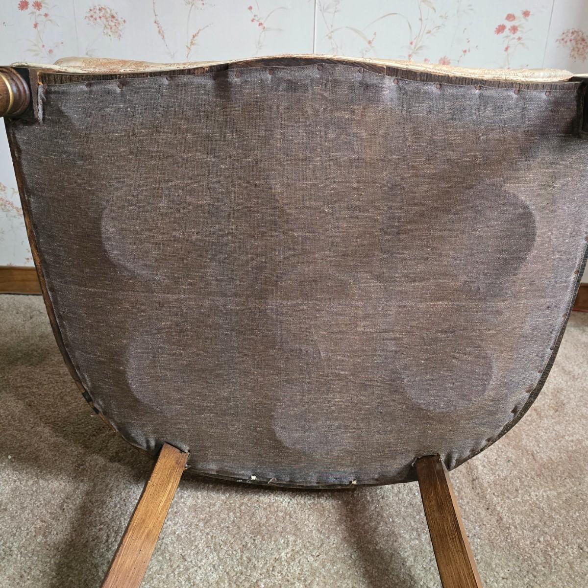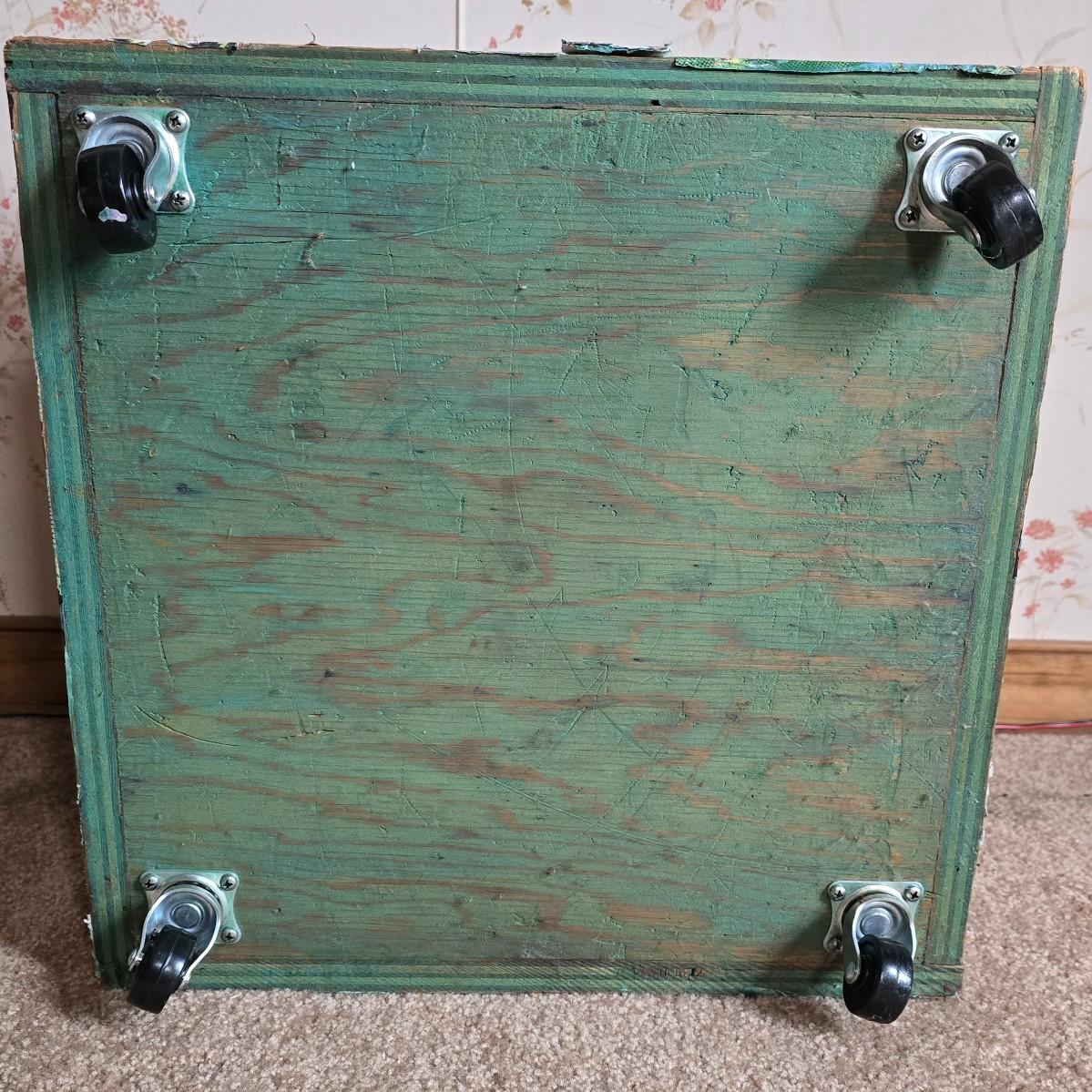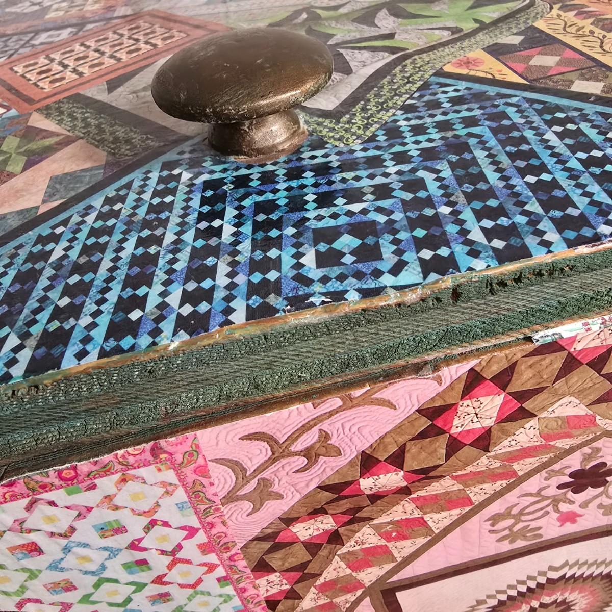 LOT 110L: Antique Armchair and Decoupaged Quilt Box on wheels
