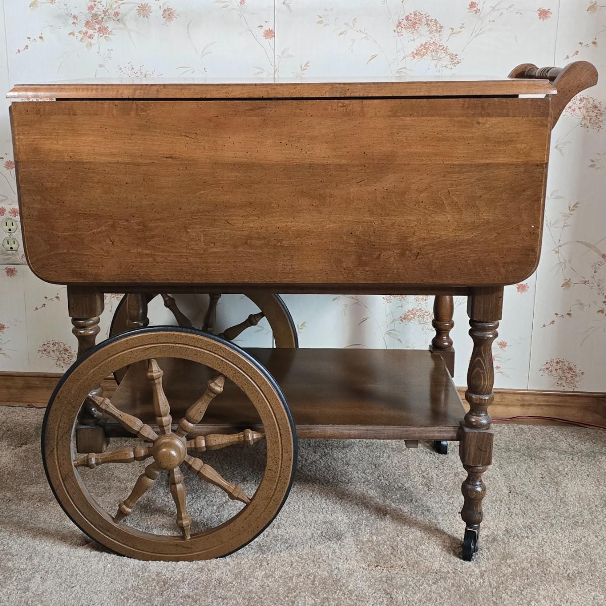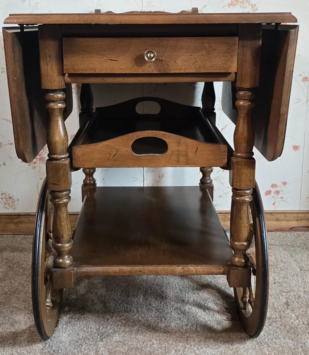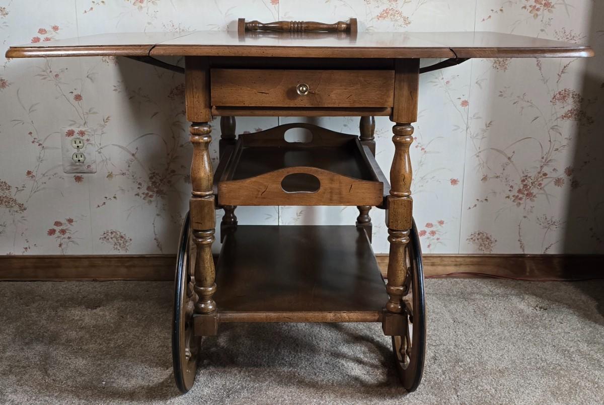 LOT 112D: Athens Table Co.- American made Drop Leaf Tea Cart with Drawer and Tray