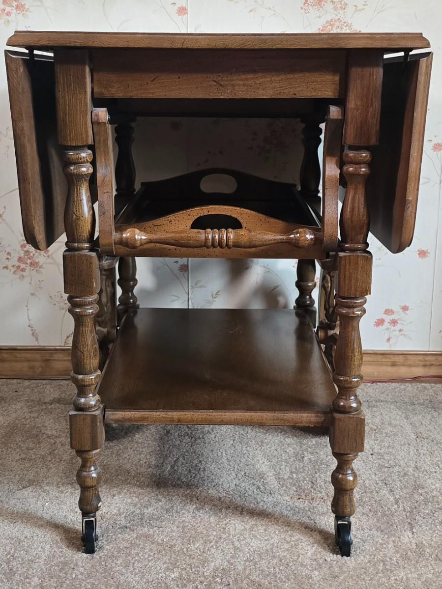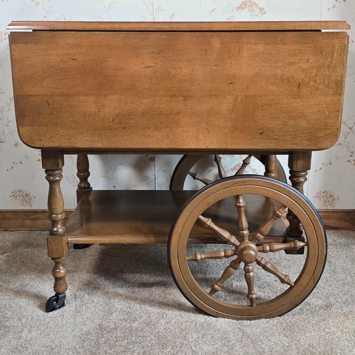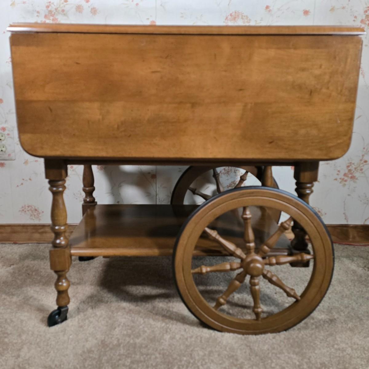 LOT 112D: Athens Table Co.- American made Drop Leaf Tea Cart with Drawer and Tray
