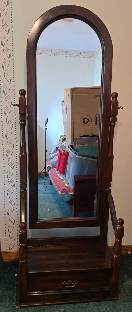 LOT 120Z: Early American Full Length Mirror with Drawer