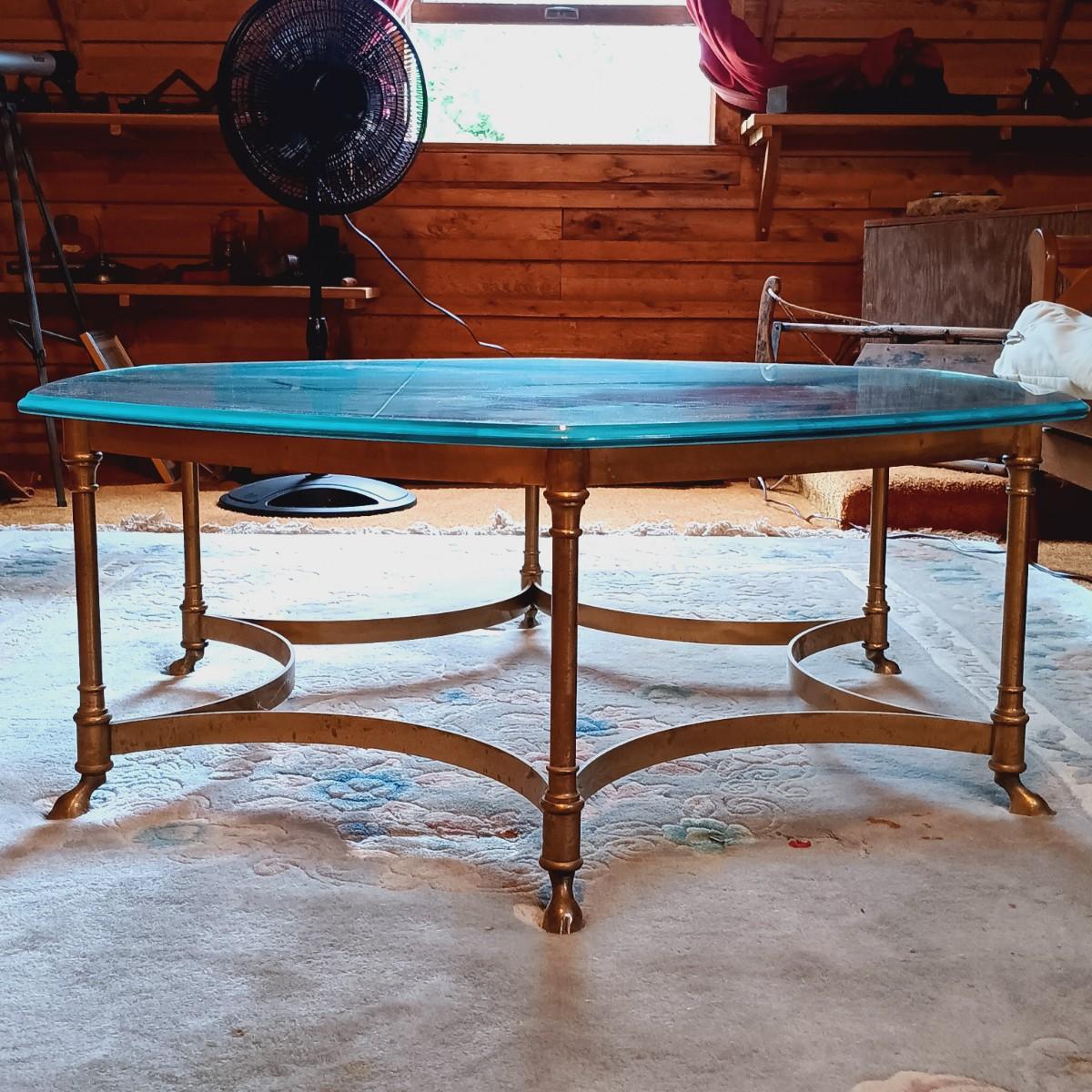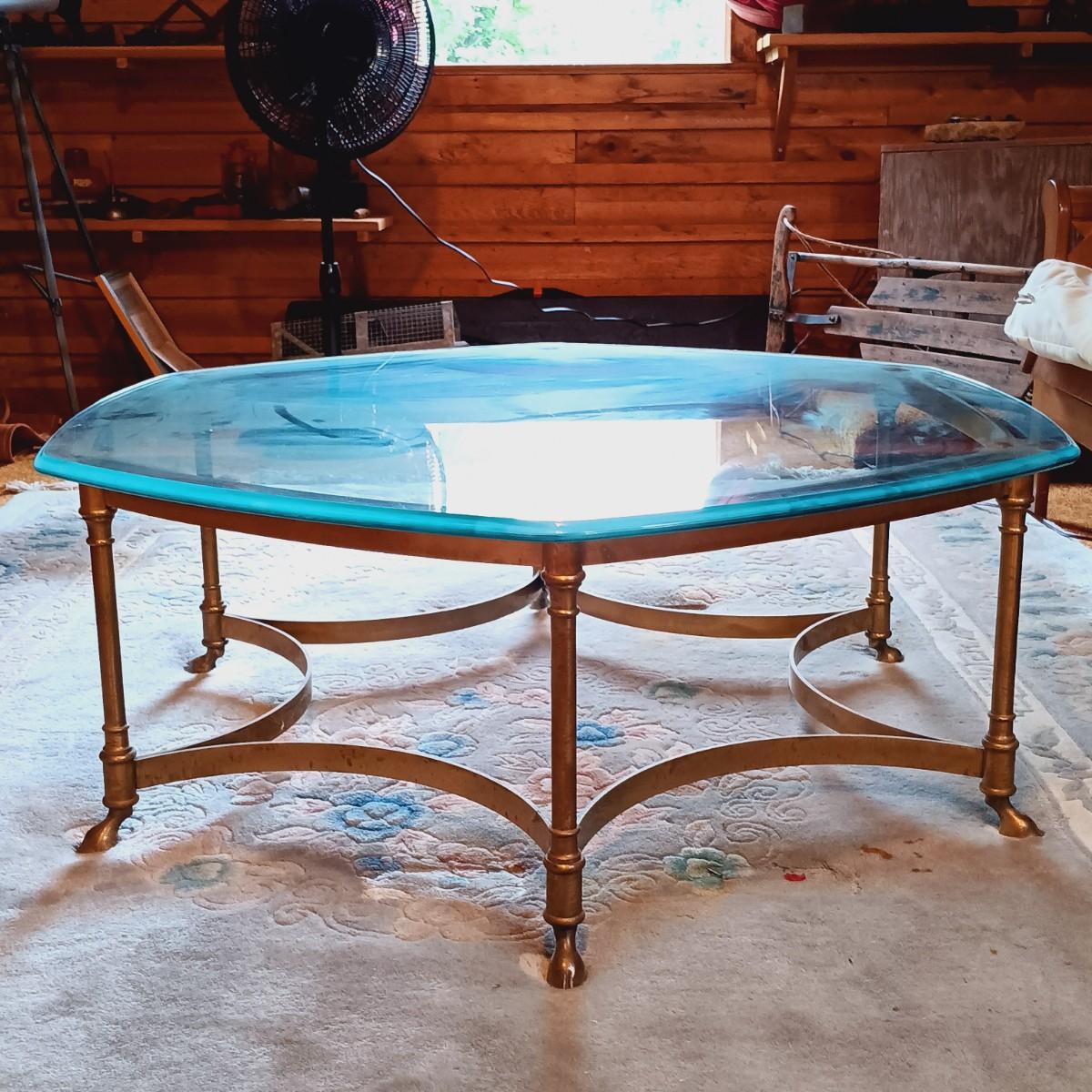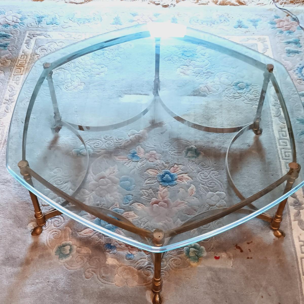 LOT 5: Vintage Brass Hexagonal Coffee Table with Glass Top
