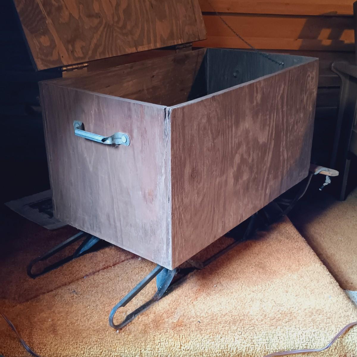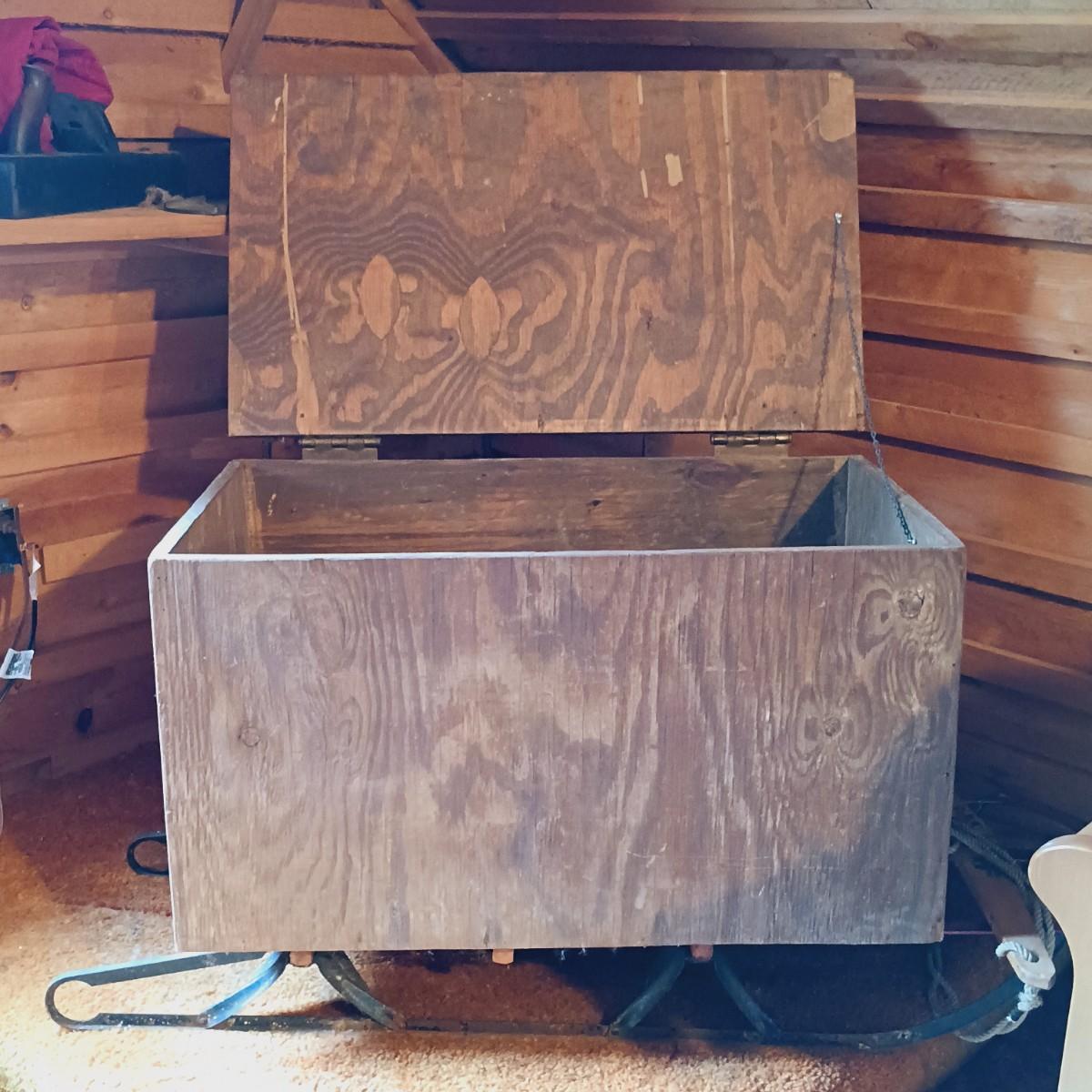 LOT 7: Vintage Wooden Cargo/ Trapper’s Box with Sled Runners and Handles