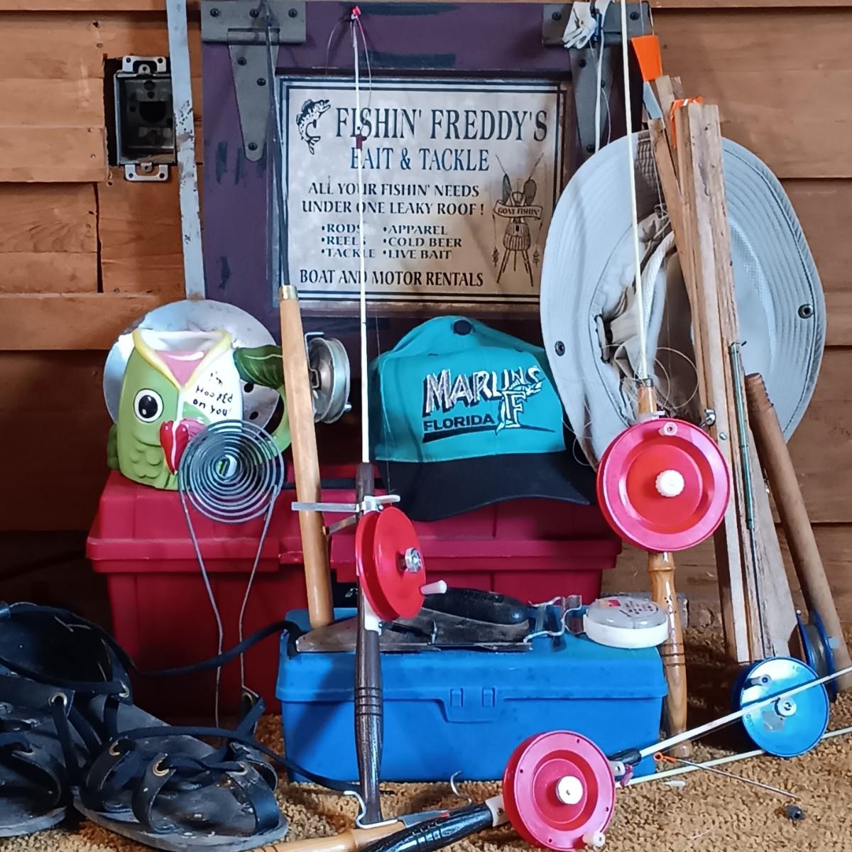 LOT 9: Fishers Find - Including Ice Fishing Poles, Fishing Claw Boots Tackle Boxes and More