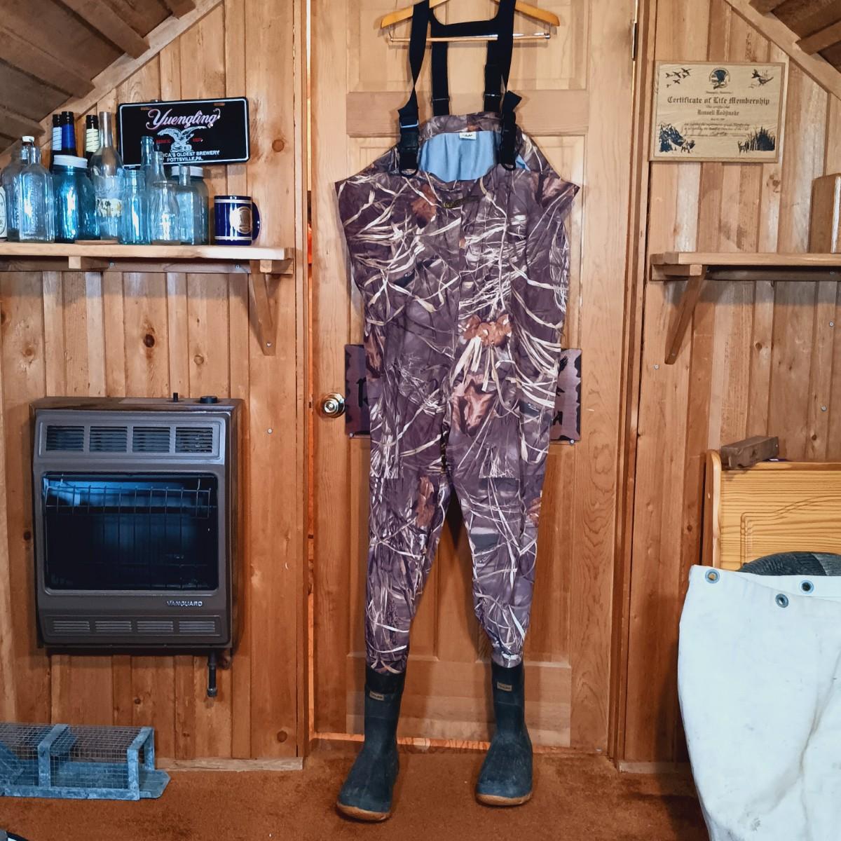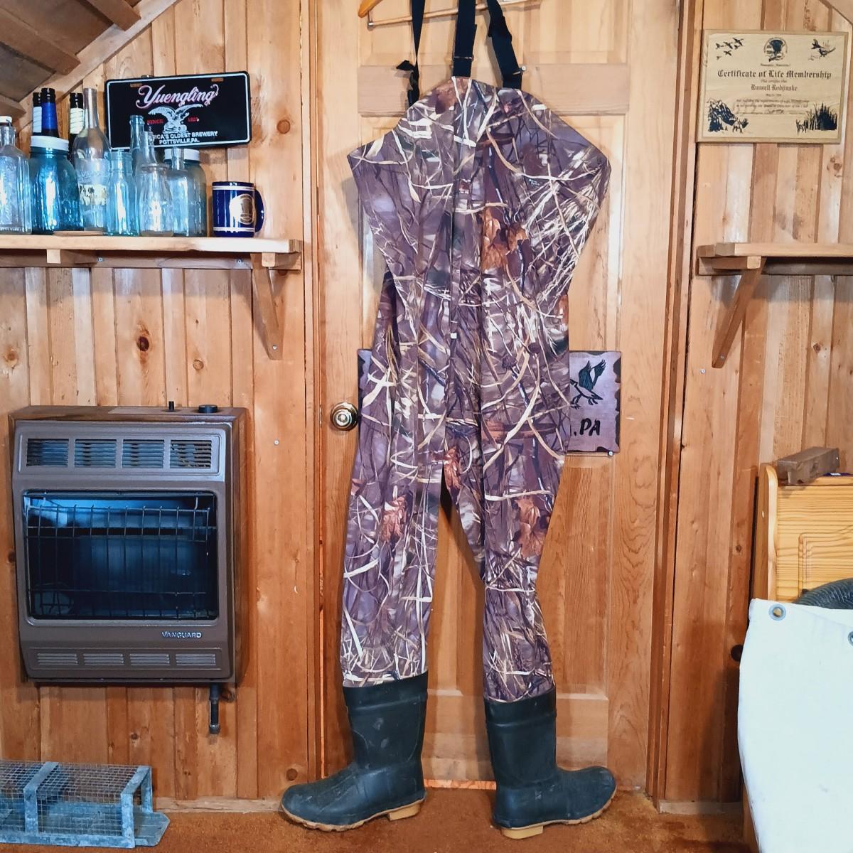 LOT 11: Cabela’s Camouflage Dry-Plus Fishing Waders and Attached Rubber Boots