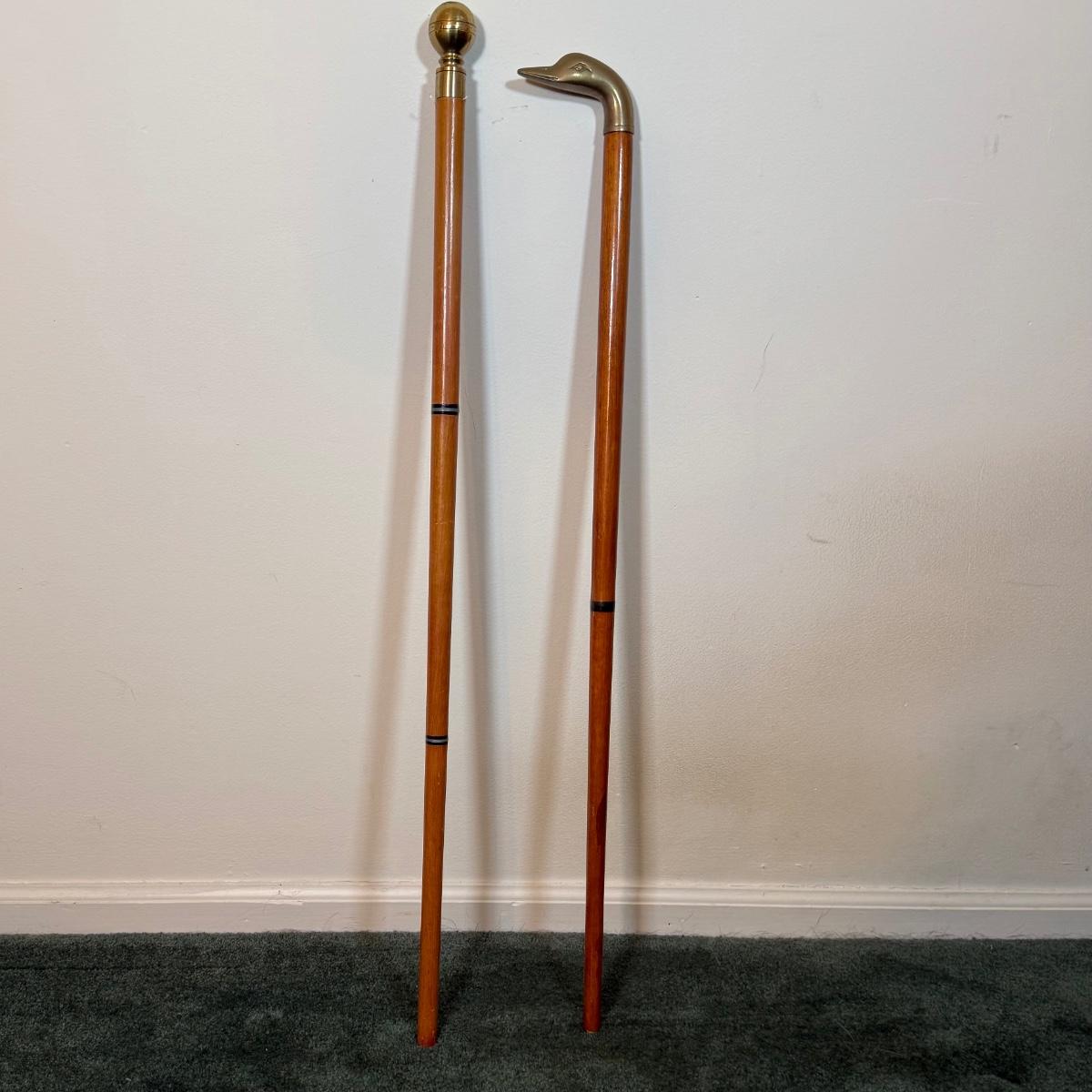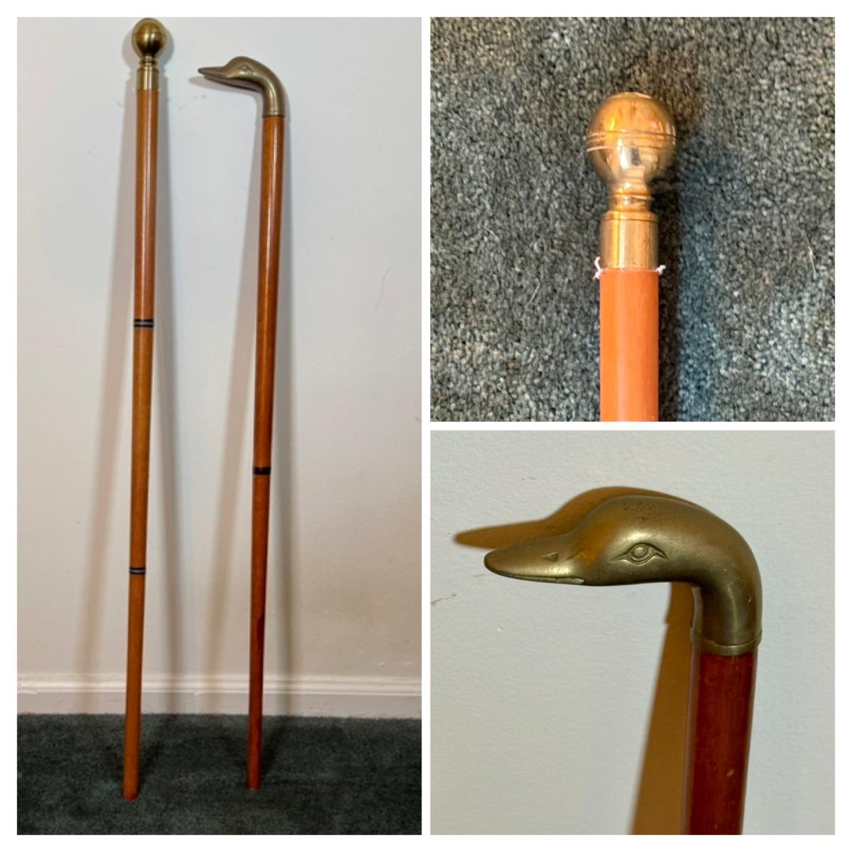 LOT 34: Set of Two(2) Brass Top Wooden Canes