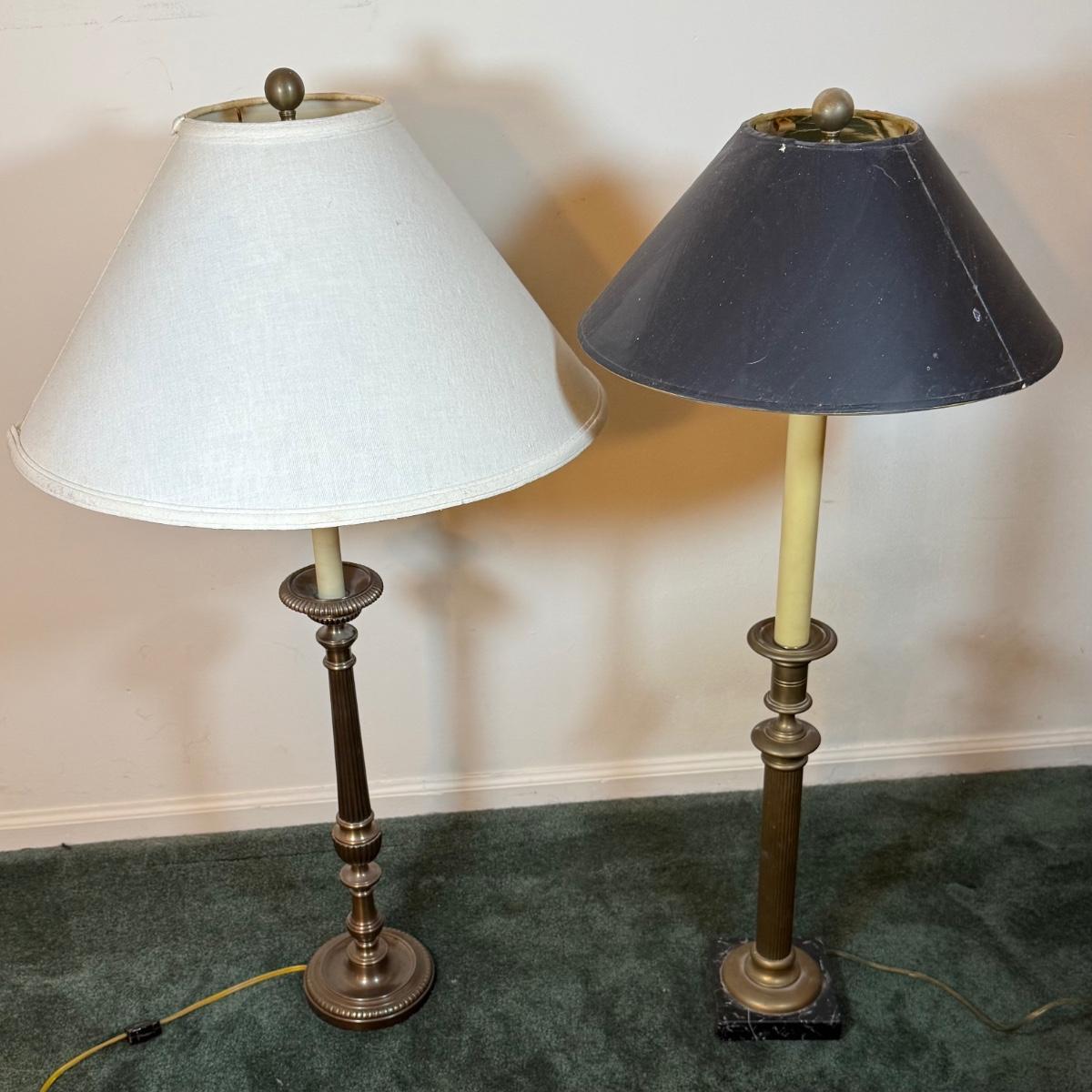 LOT 35; Set of Two (2) Vintage Candle Stick Style Table Lamps - One with Marble Base