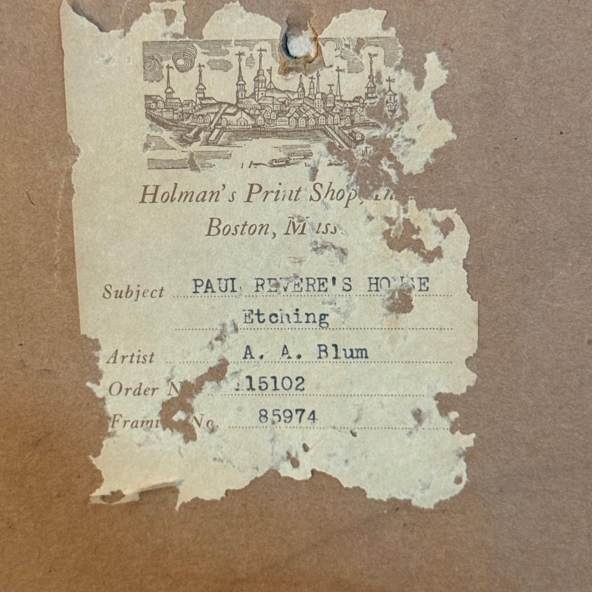 LOT 37: Vintage Framed Alex. A. Blum Etching Paul Revere’s House
