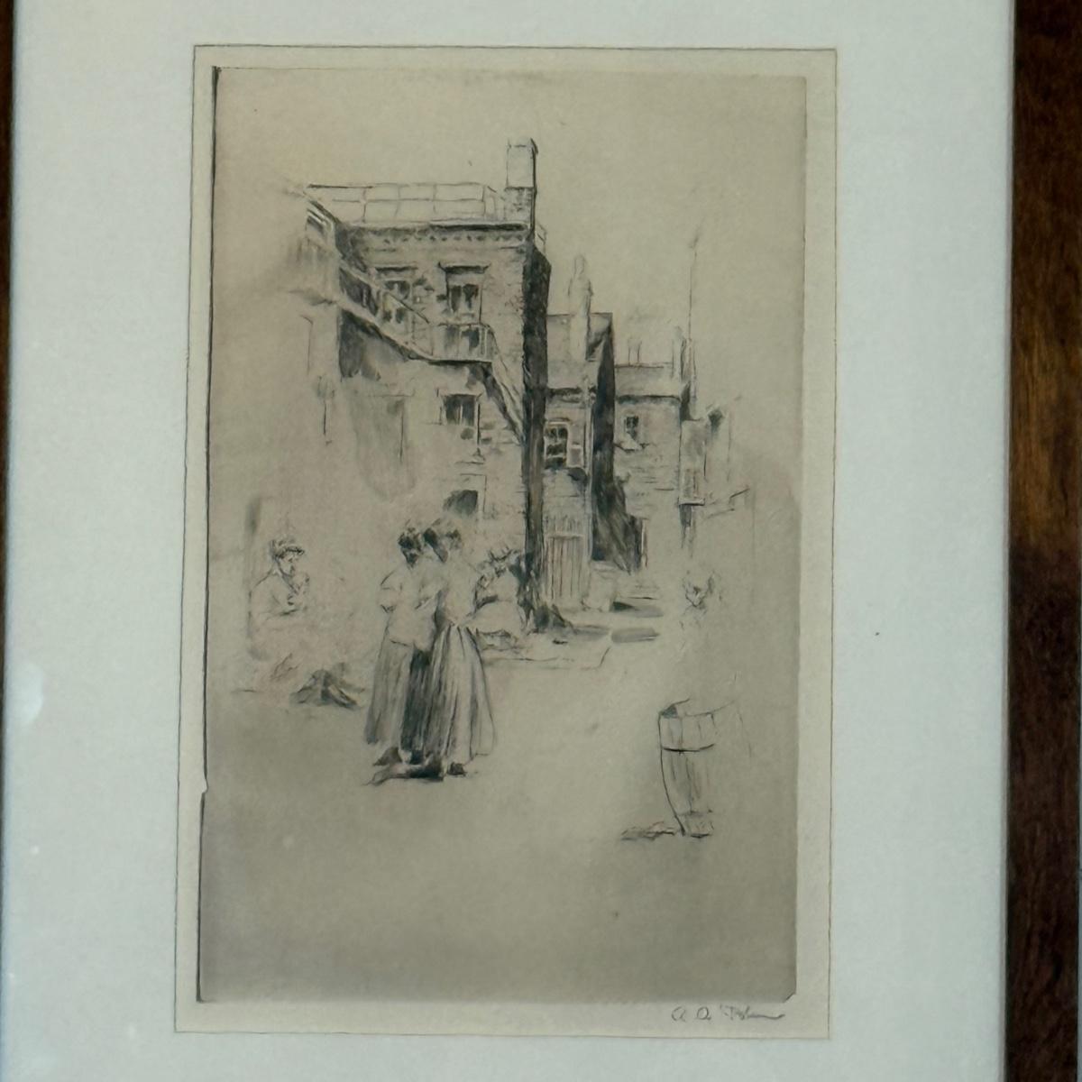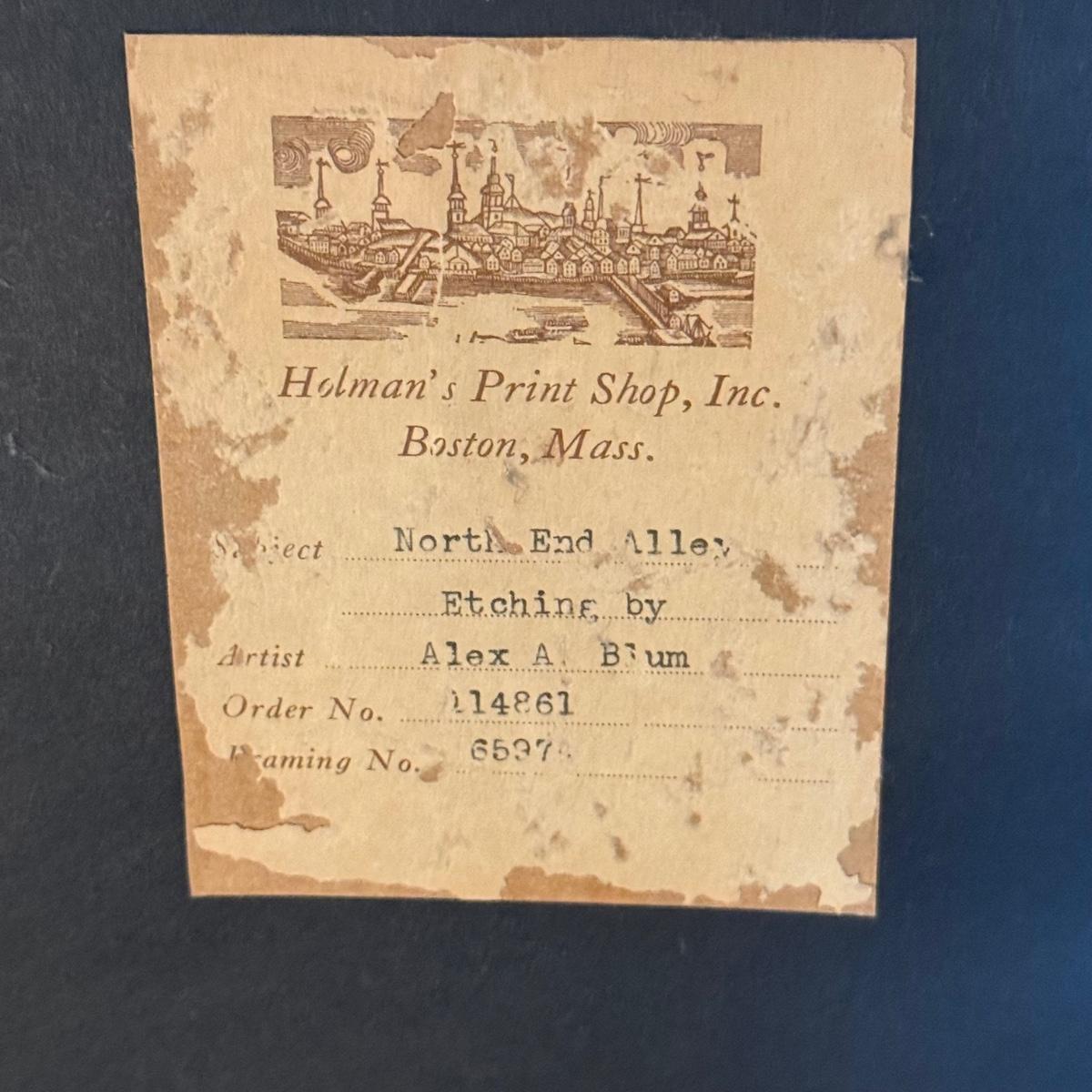 LOT 38: Vintage Alex A. Blum Etching - North End Alley