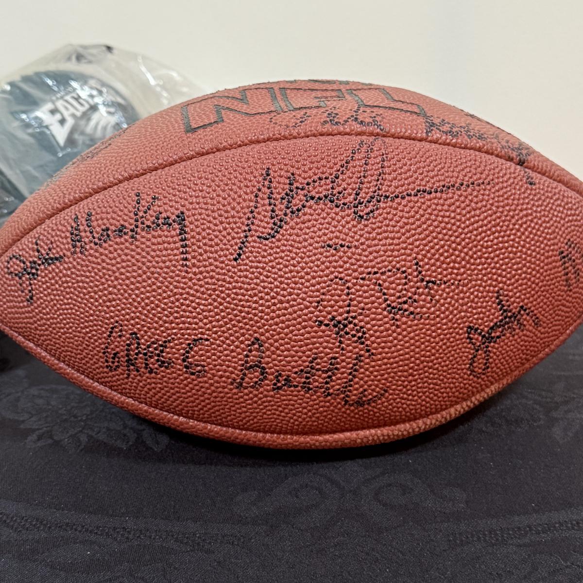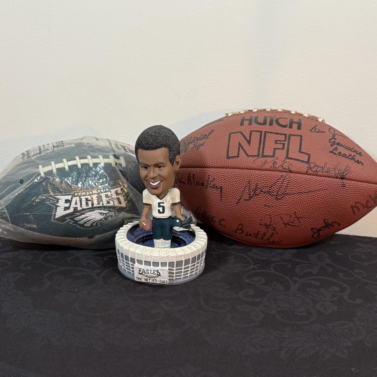 LOT 43: Philadelphia Eagles Football and Bobble Head and Signed Hutch Football