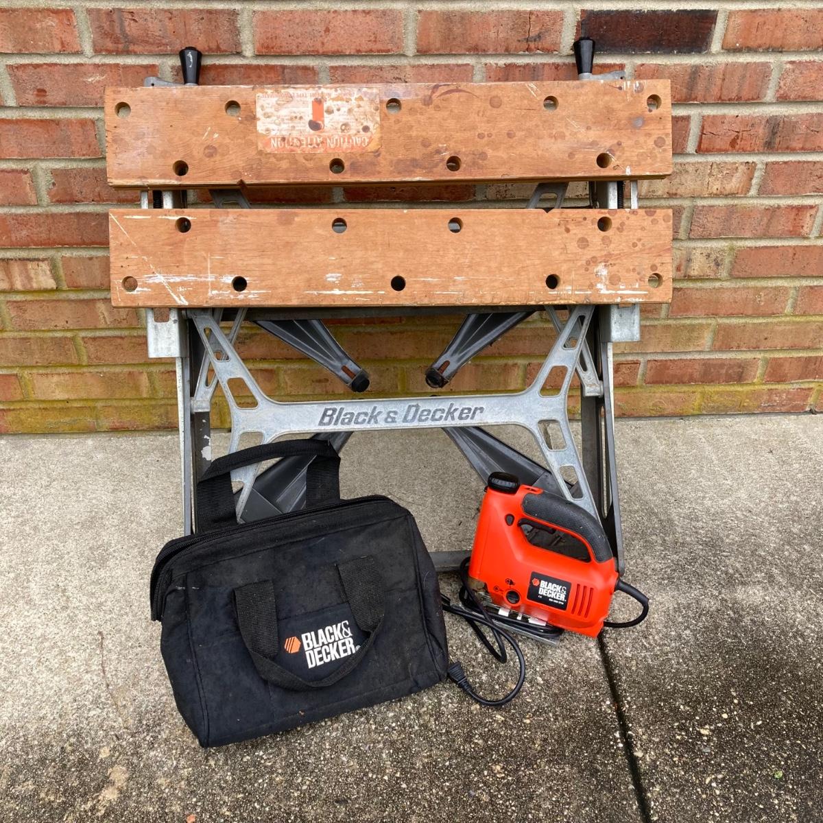 LOT 67: Black and Decker Workmate Work Bench, Variable Speed Jig Saw with Case