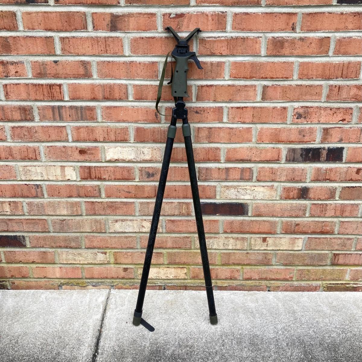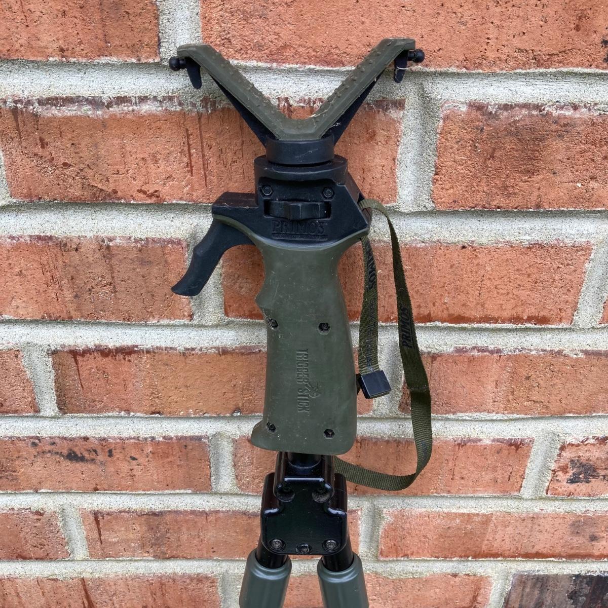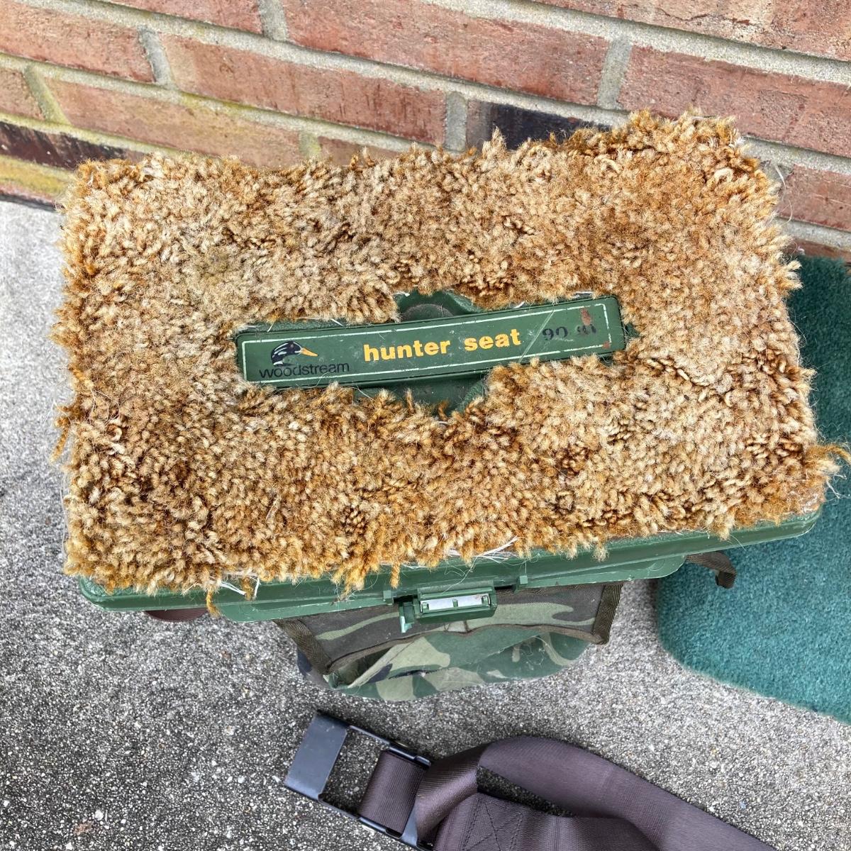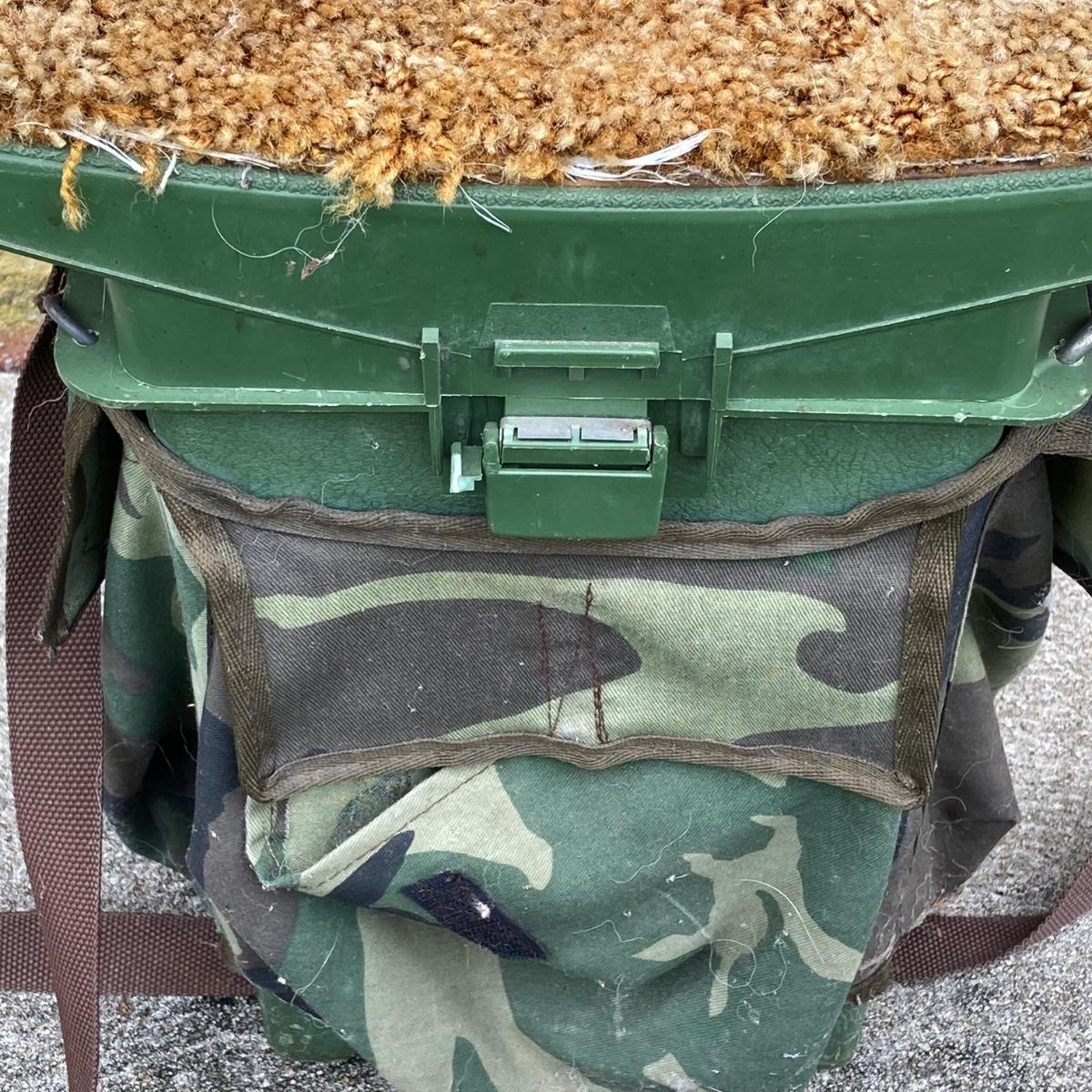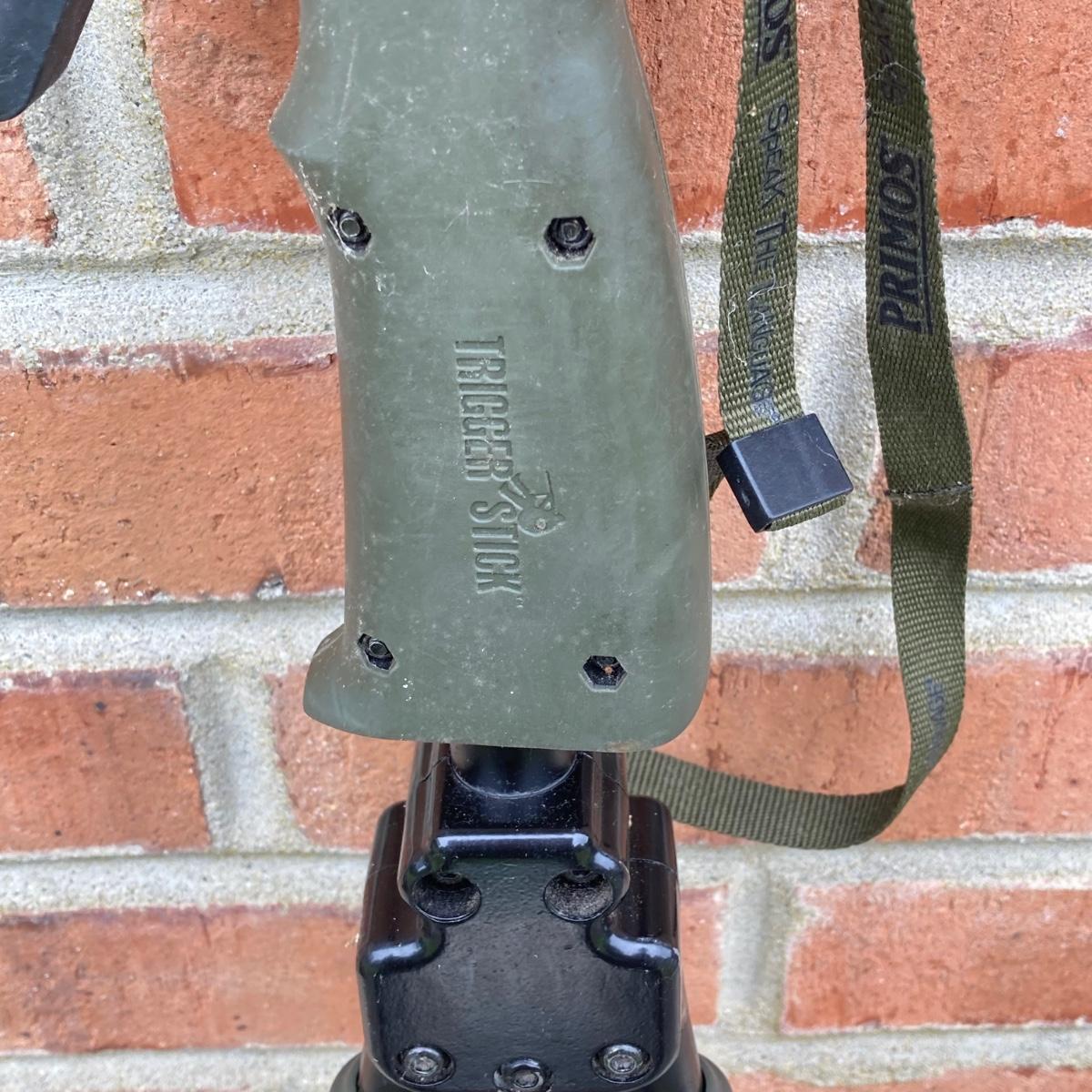 LOT 116: Primos Trigger Rifle Stick / Holder, Hunter's Seats (Woodstream and More), Ammo Box and "The Spirit Lives On" Signed Print