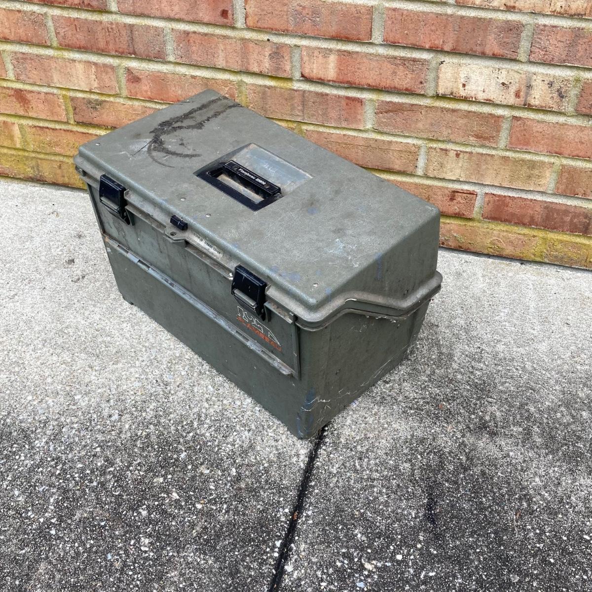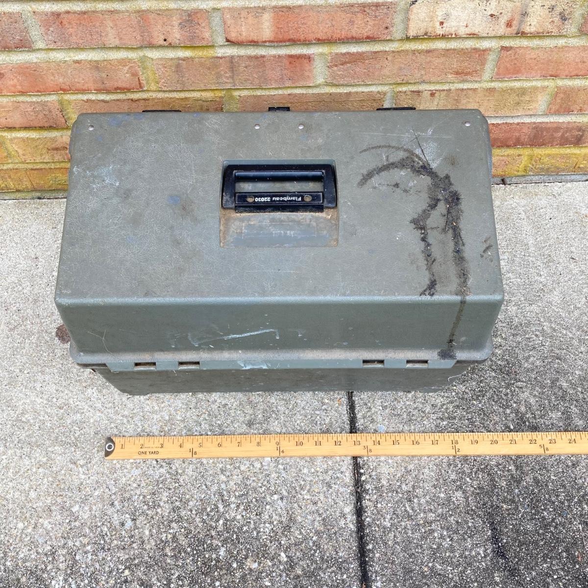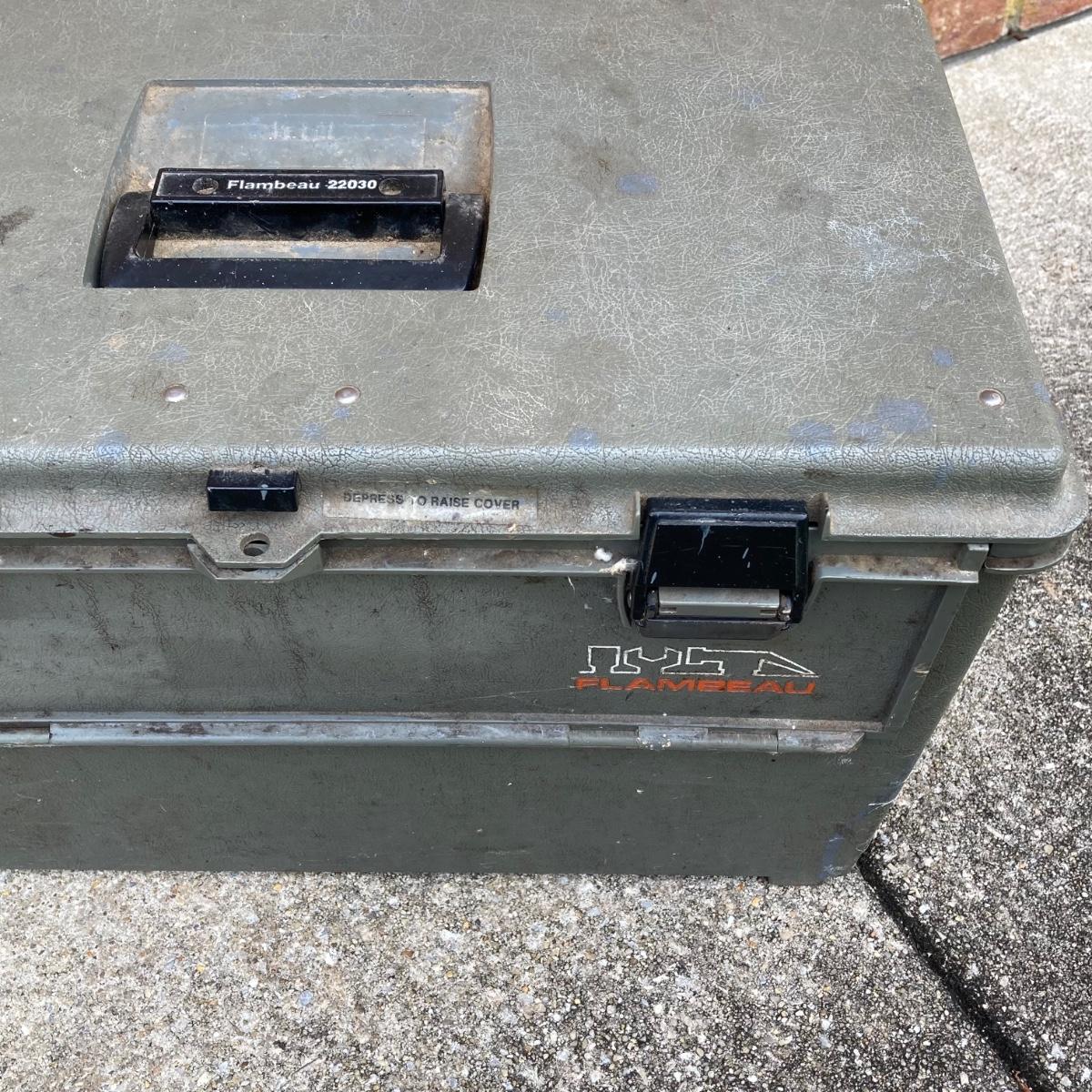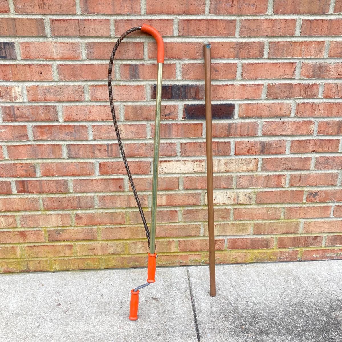 LOT 118: Plumber's Tool Collection - Flambeau Toolbox with Contents, Copper Pipe, General Drain Cleaner Snake Tool
