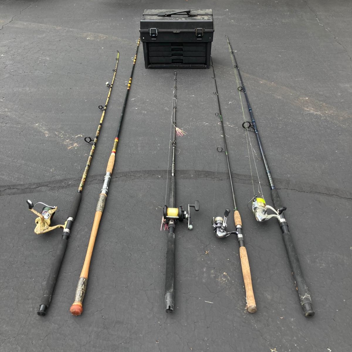 LOT 121: Fishing Rods, Reels by Penn and Daiwa and Other and a Tackle Box