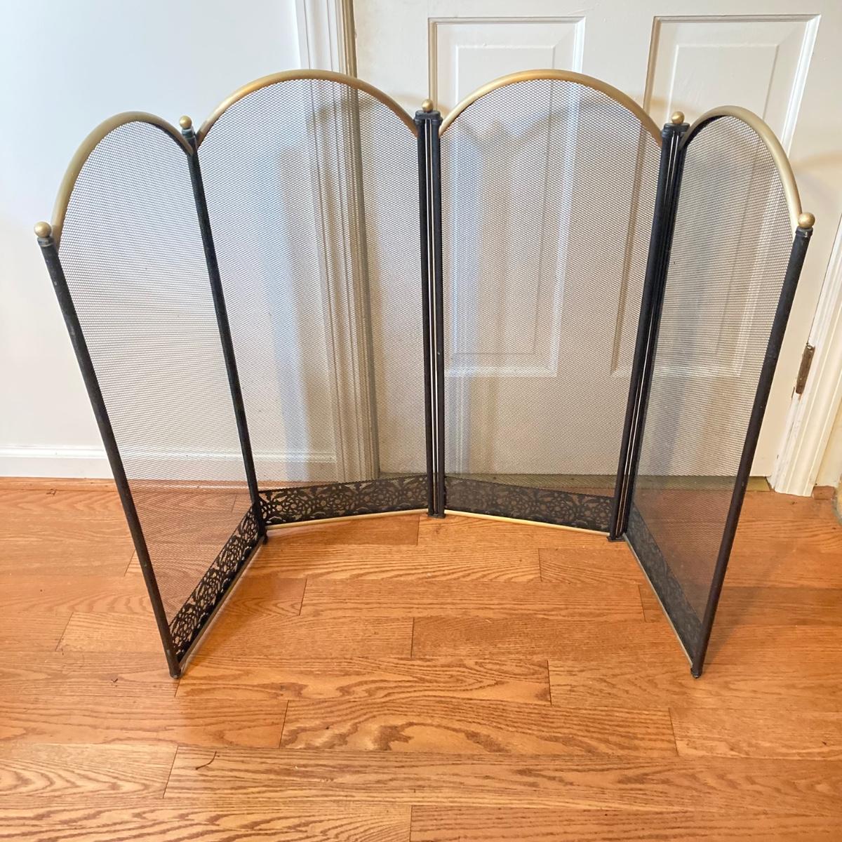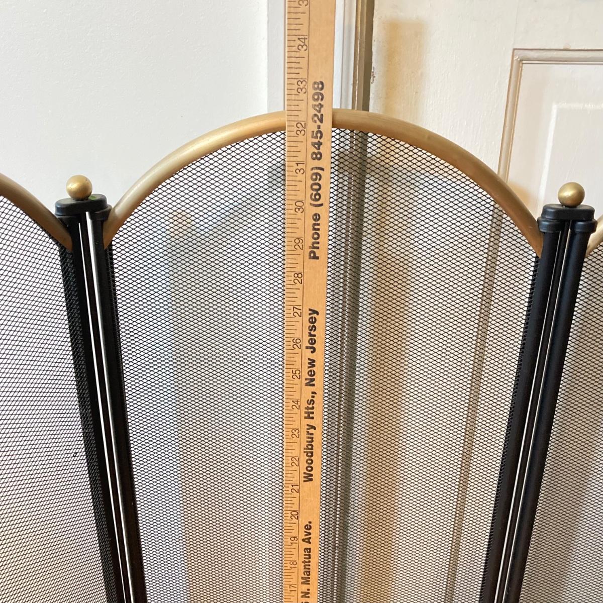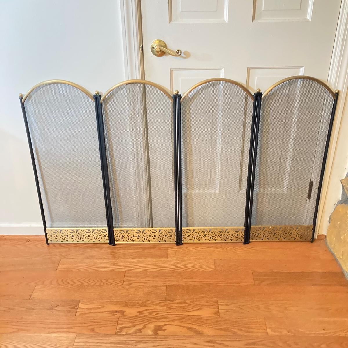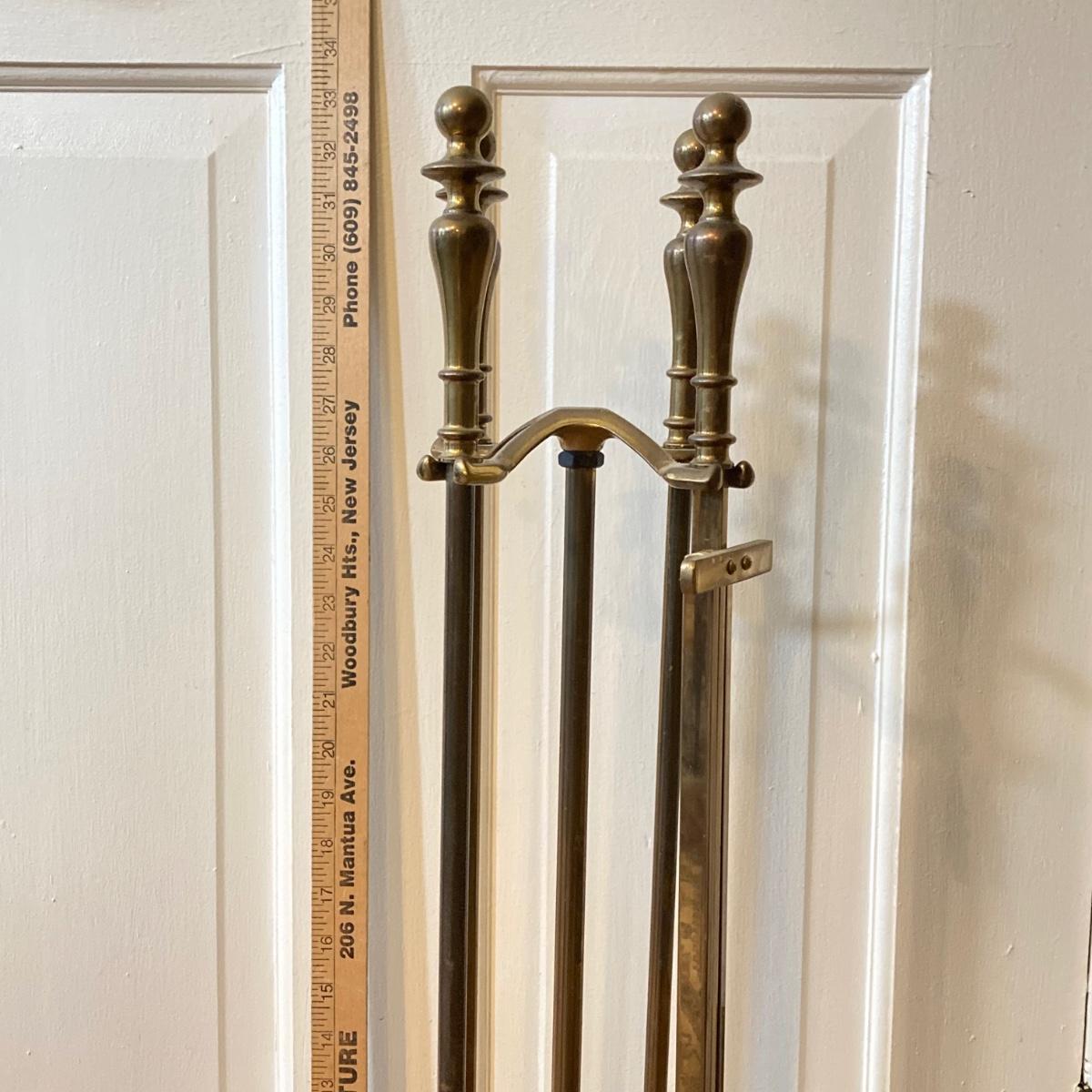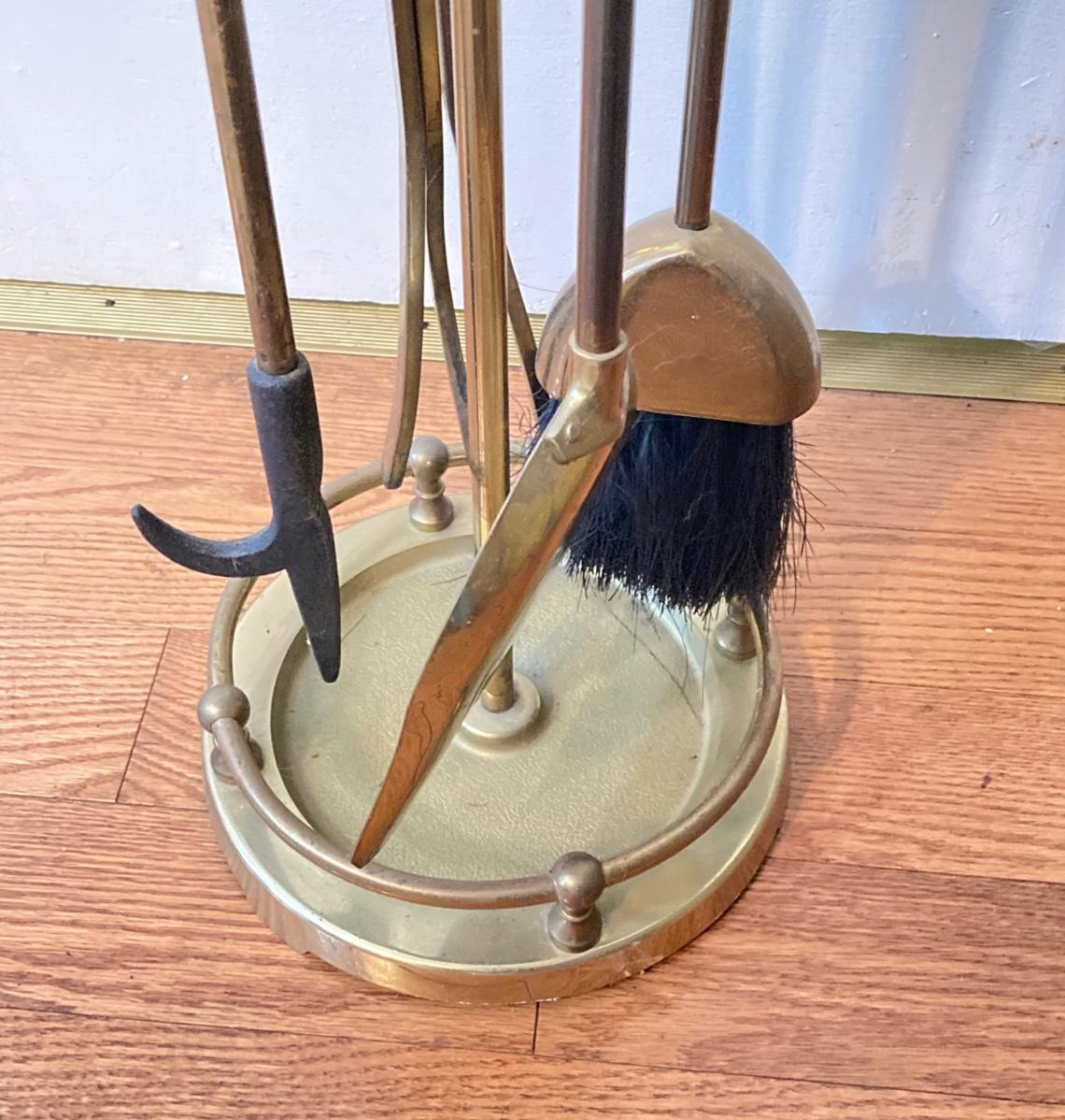 LOT 130: Brass Trimmed Fireplace Screen with Brass Fireplace Tools / Stand