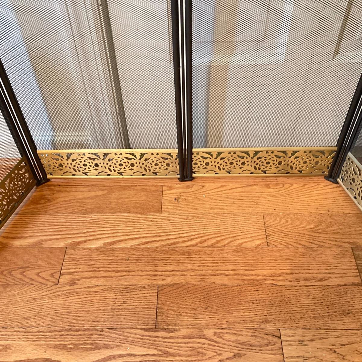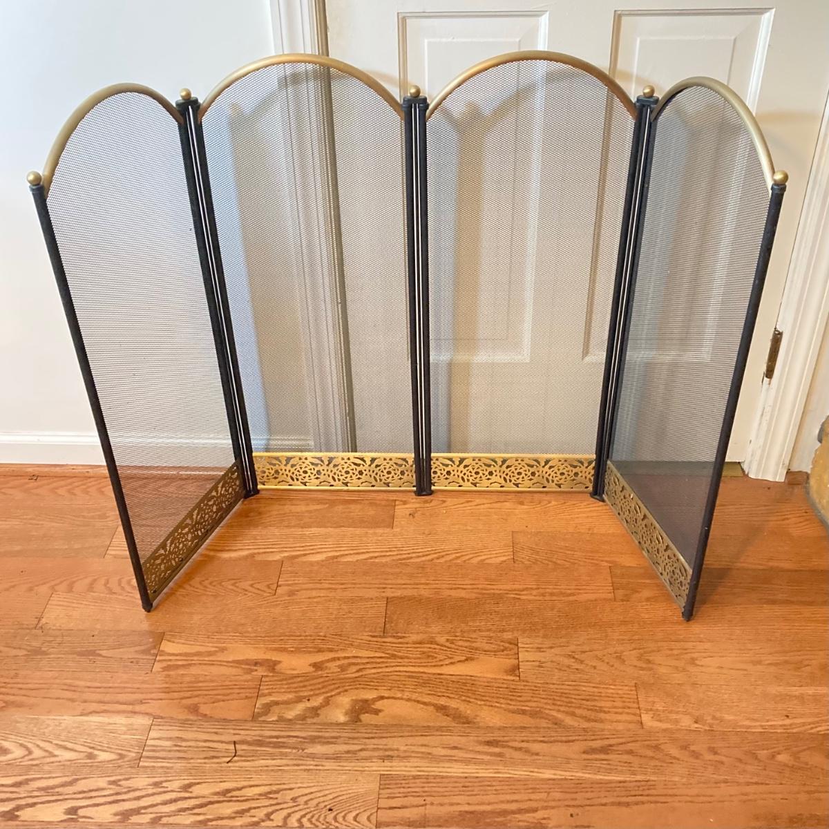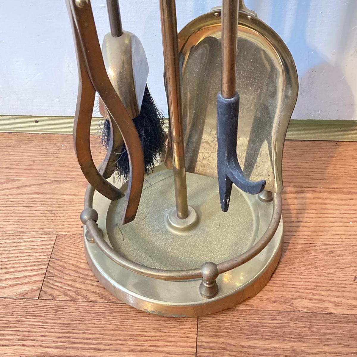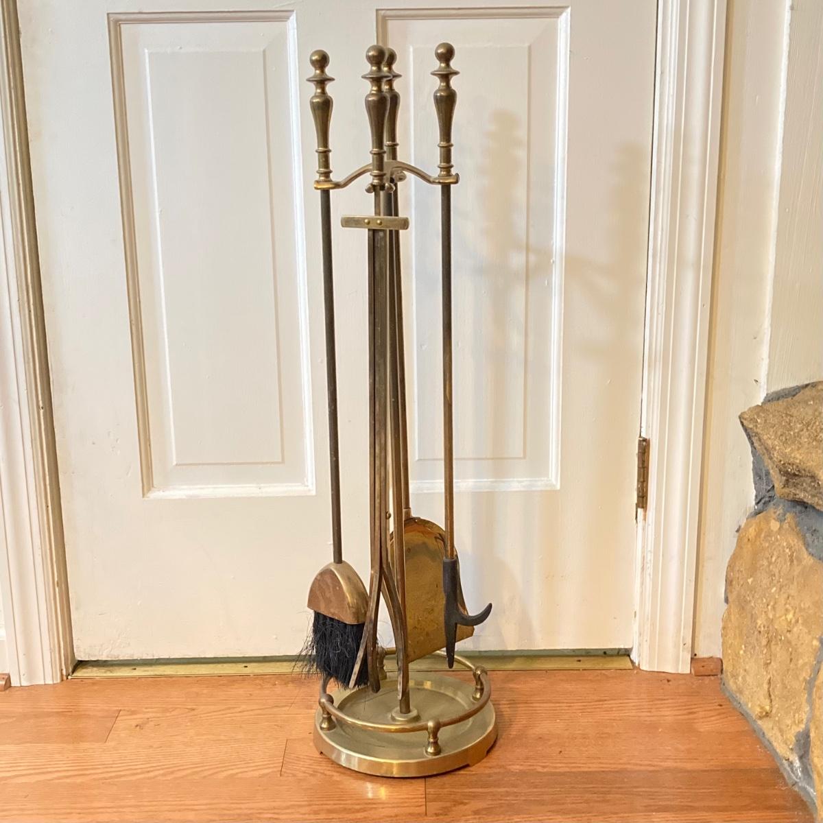 LOT 130: Brass Trimmed Fireplace Screen with Brass Fireplace Tools / Stand