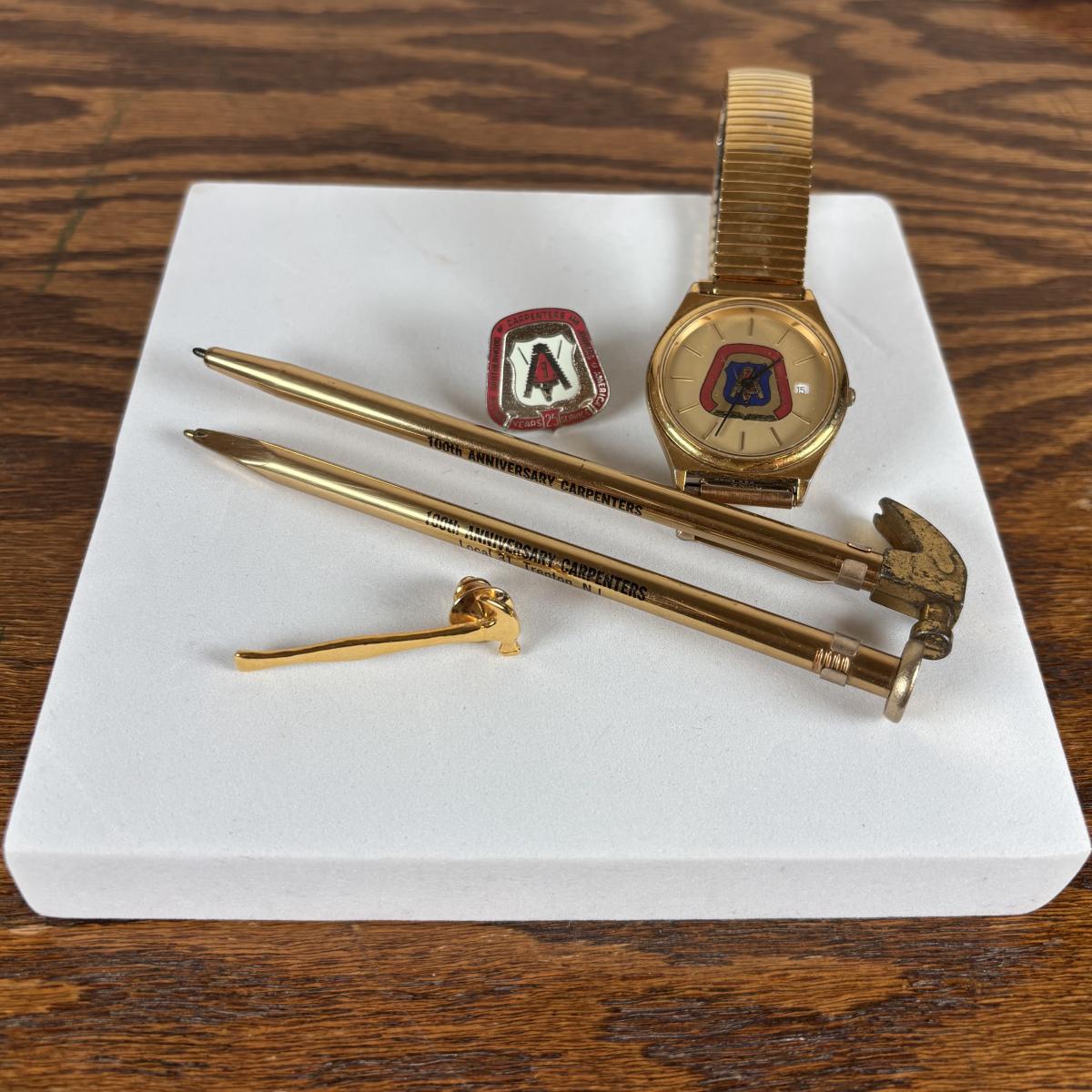 LOT 136: Men's Capenter Union Watch, Lapel Pin, Tie Tack, Pen & Pencil Set