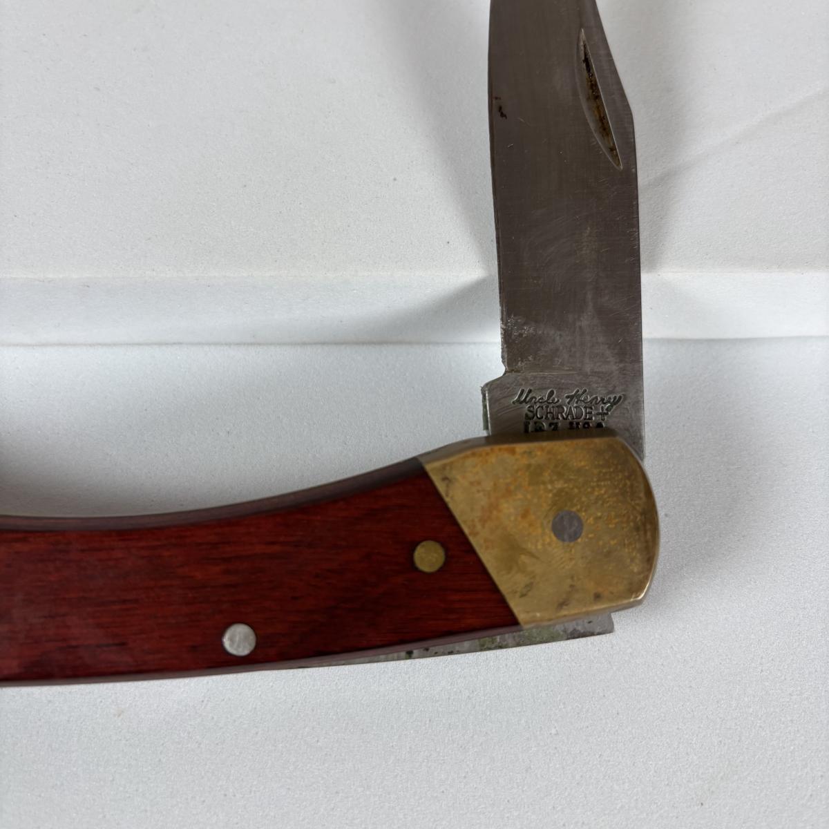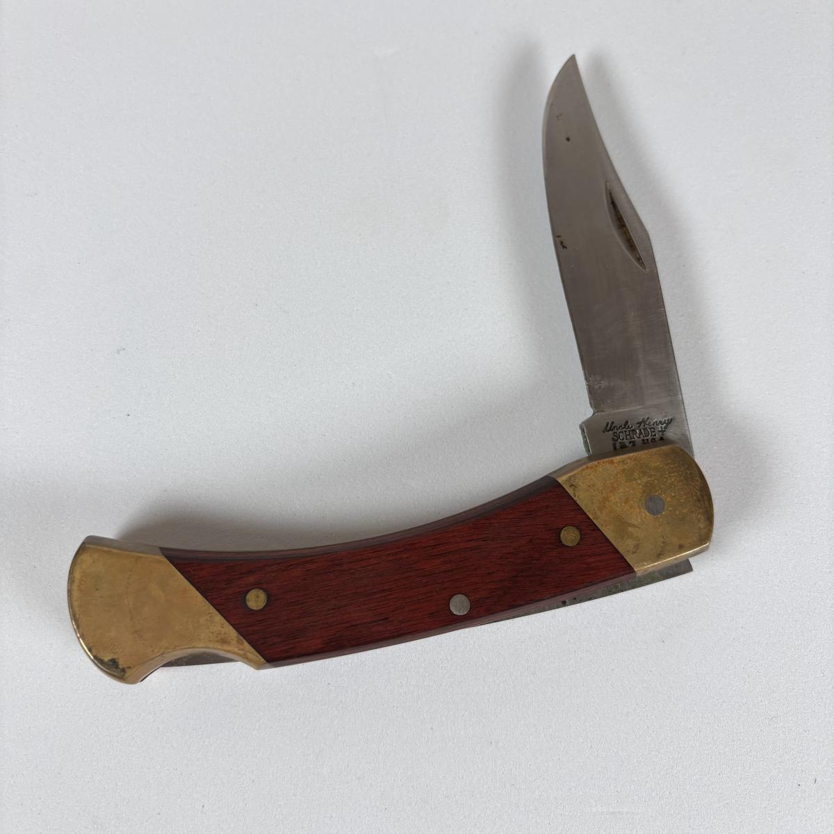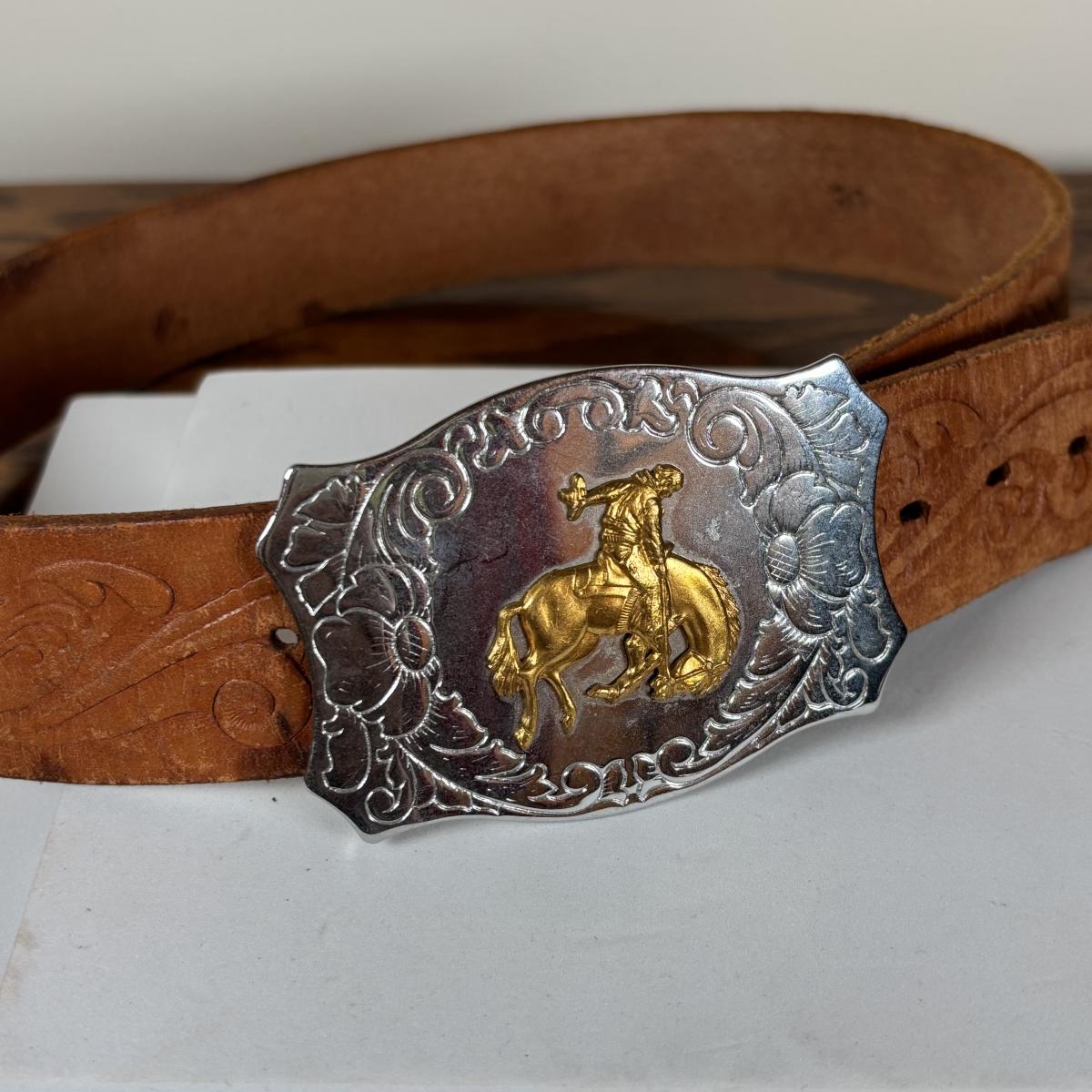 LOT 138: Rodeo Cowboy Belt Buckle w/Leather Belt & Uncle Henry Schrade Pocket Knife