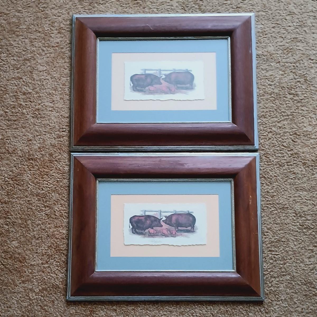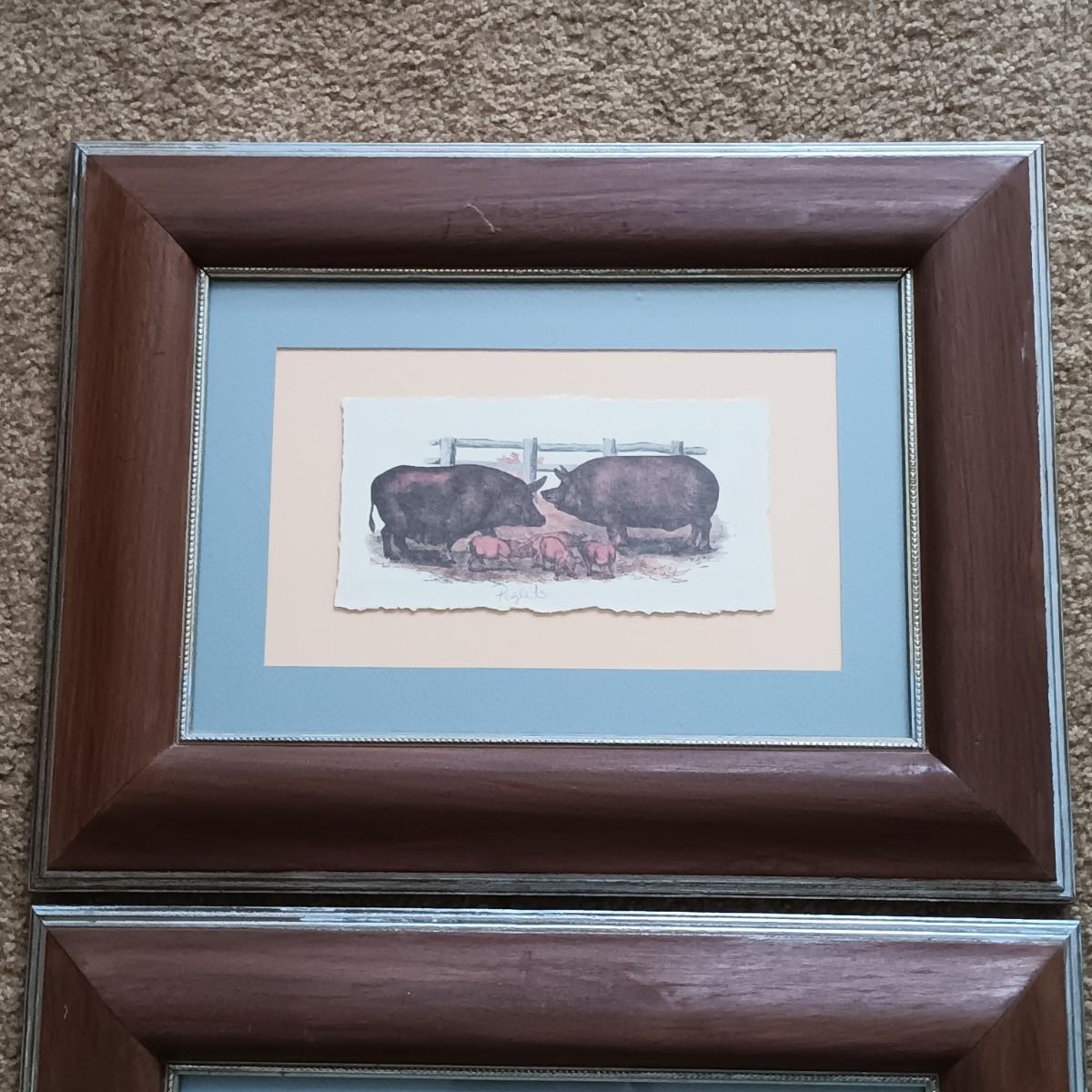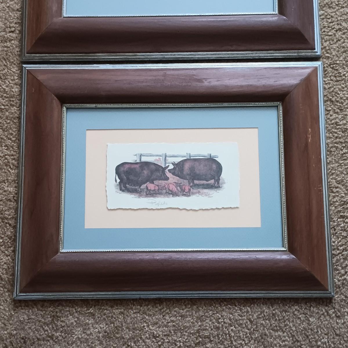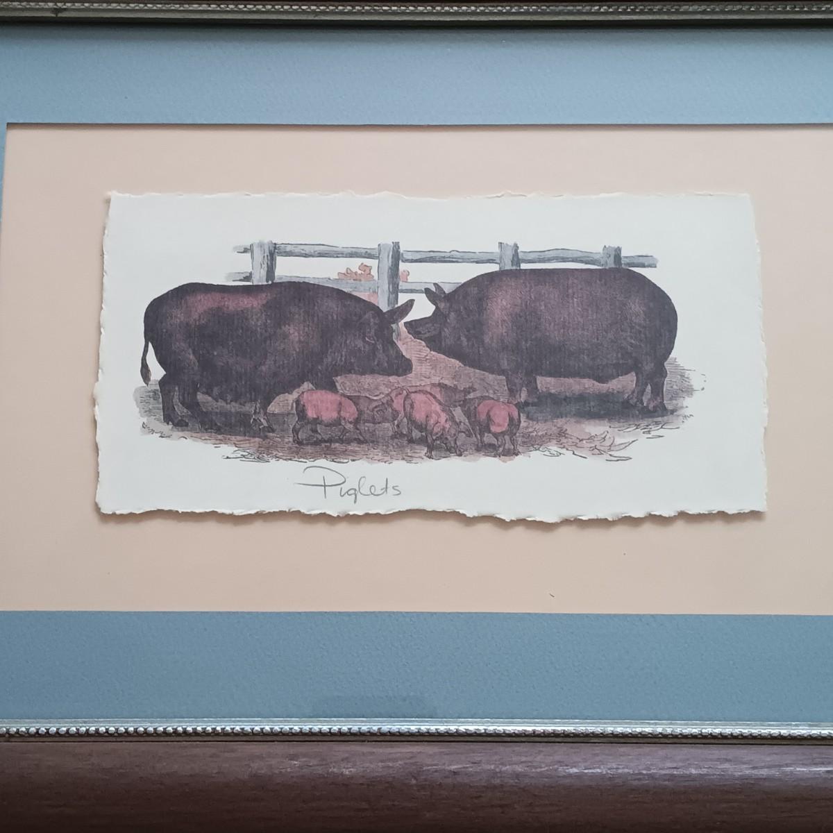 LOT 154: Framed and Matted Wall Art - Piglets