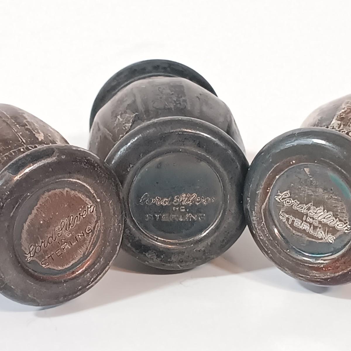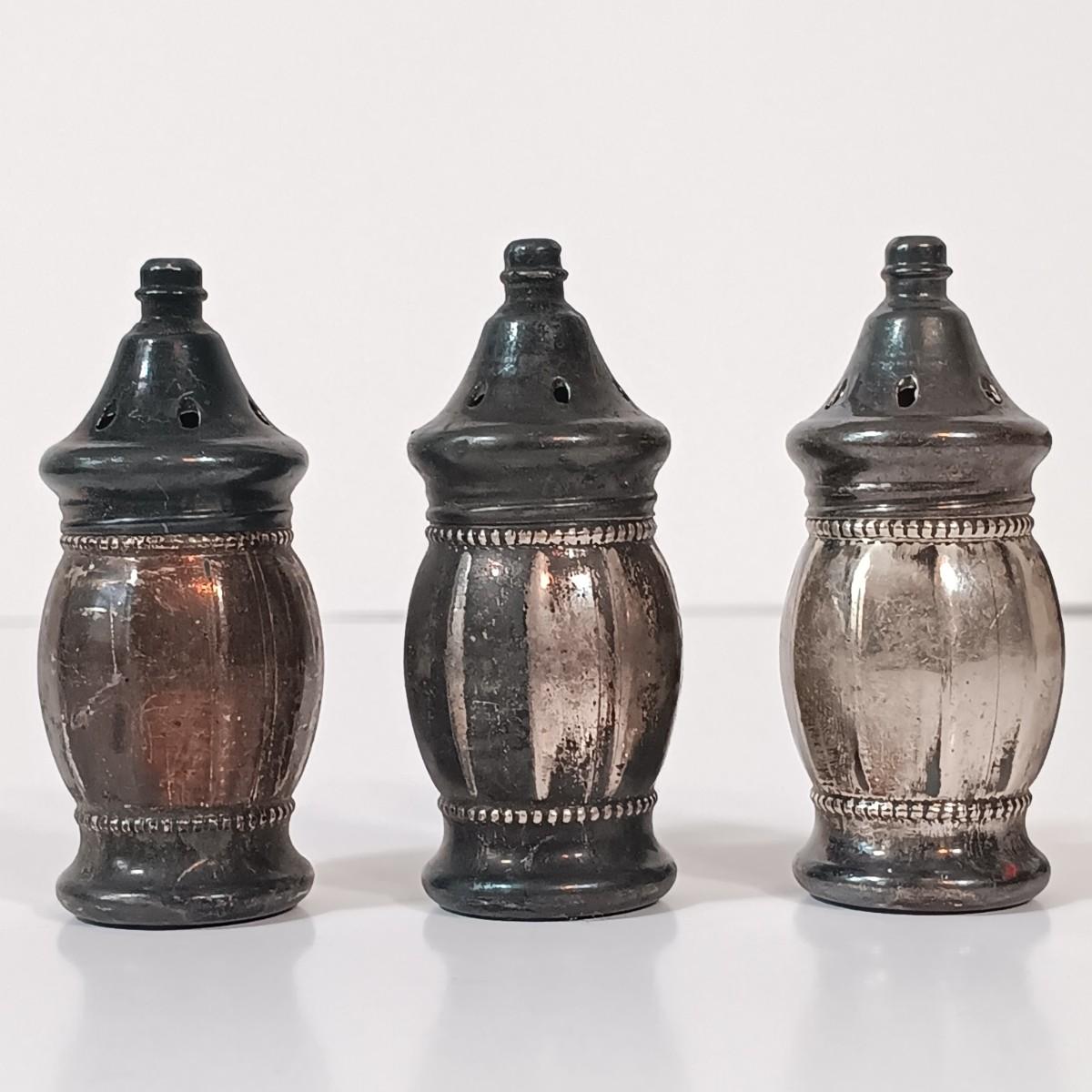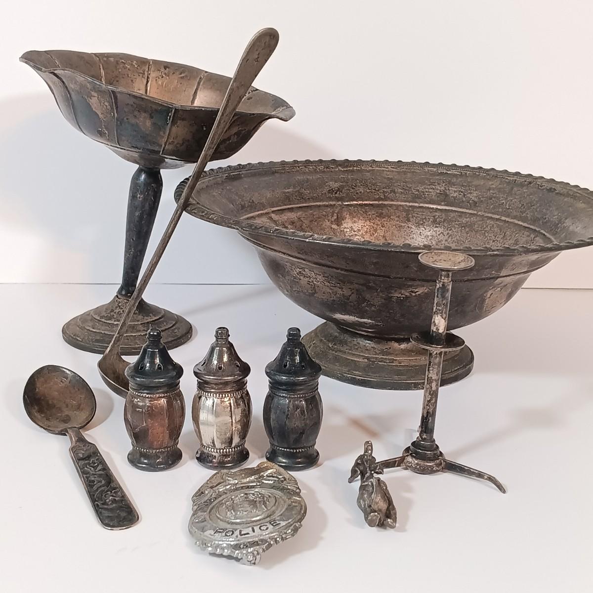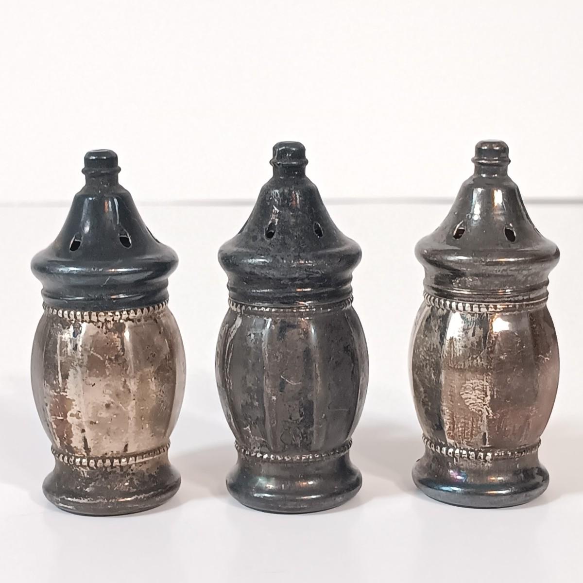 LOT 157: Set of 3 Sterling Silver Salt Shakers with Weighted Silver & Plated Items