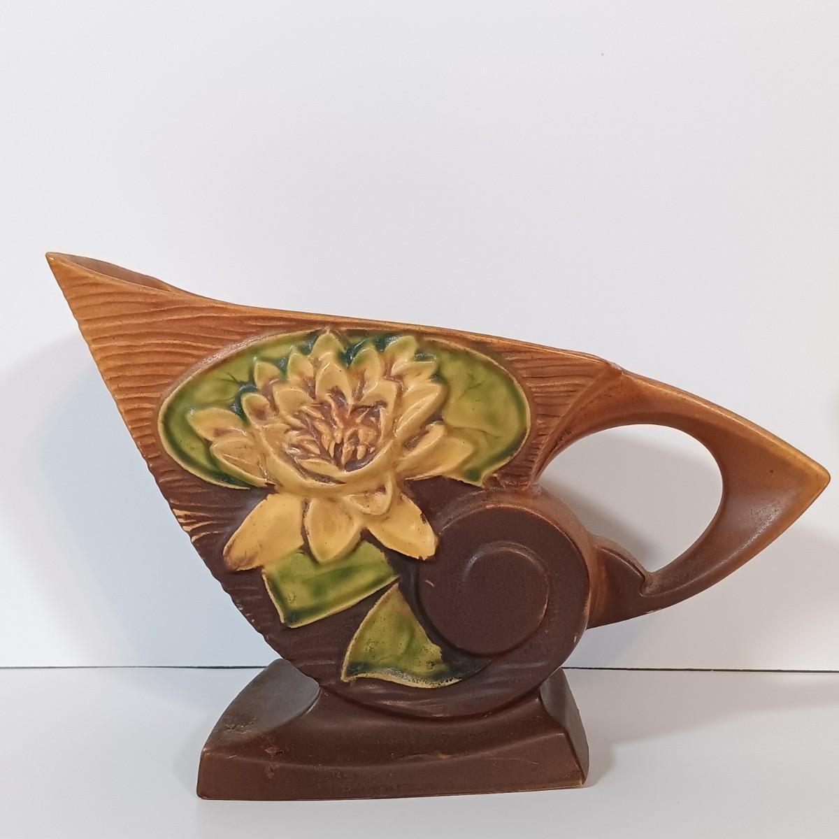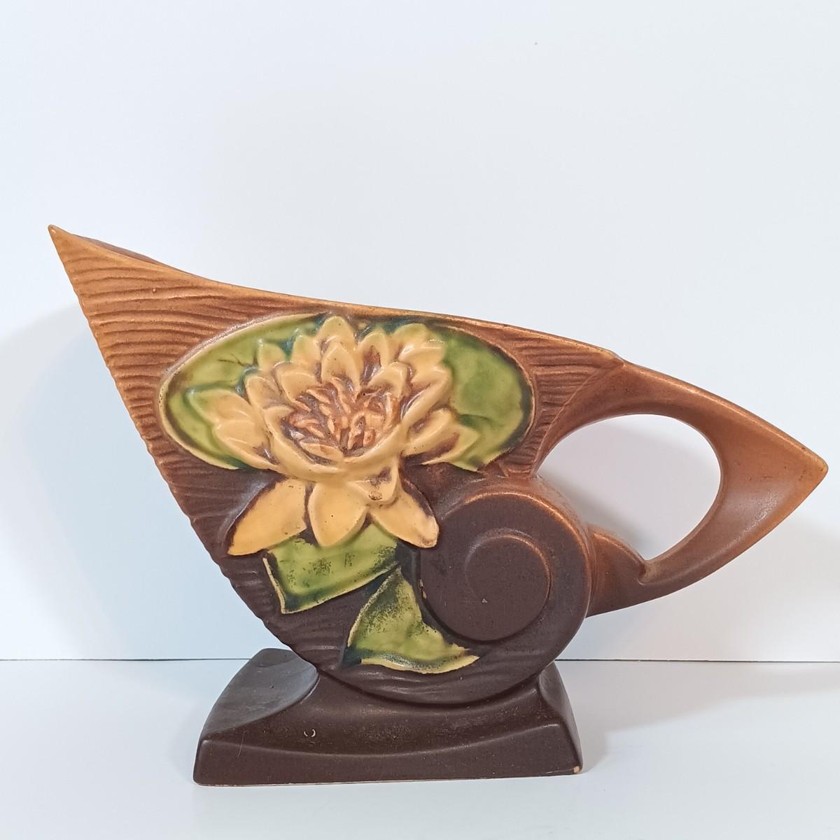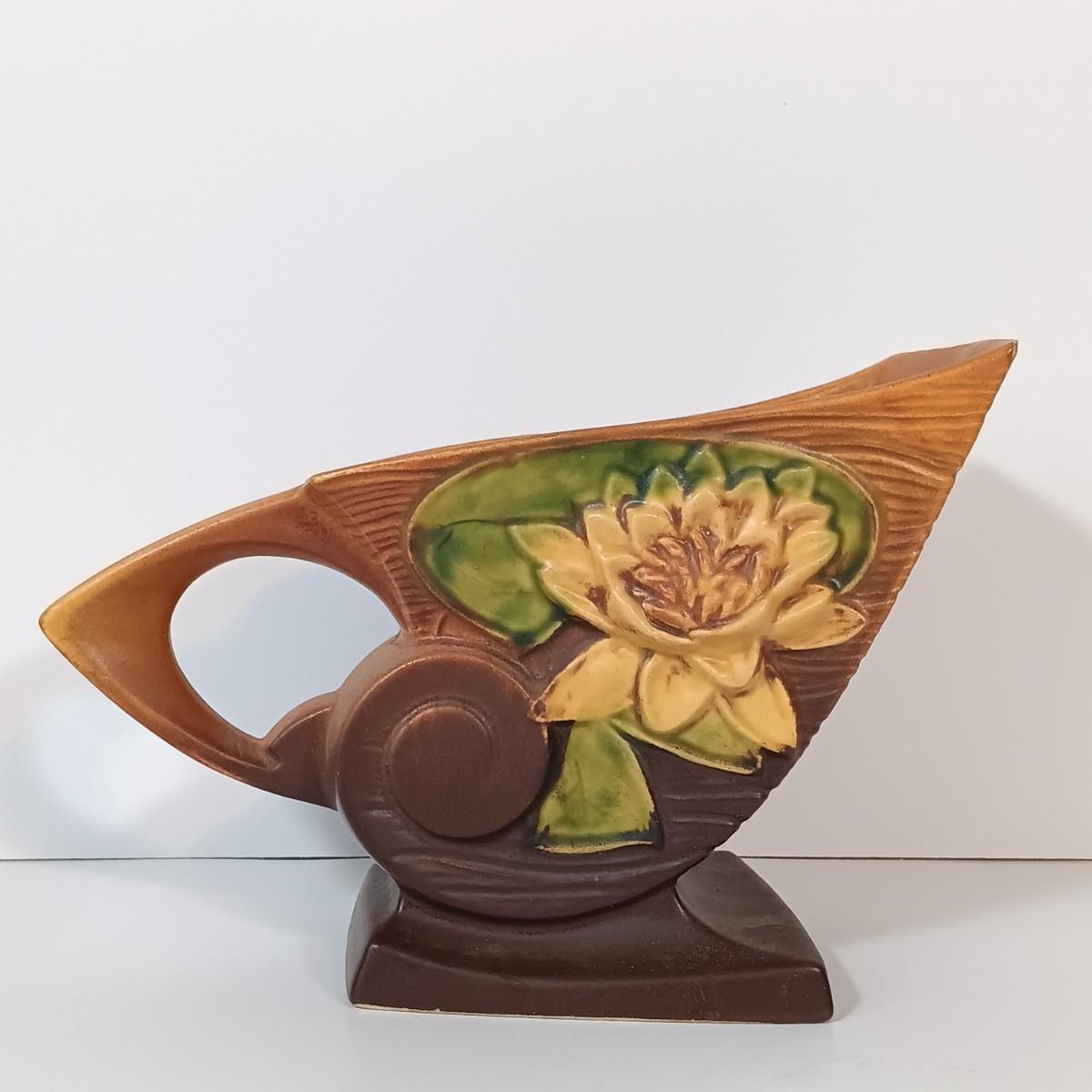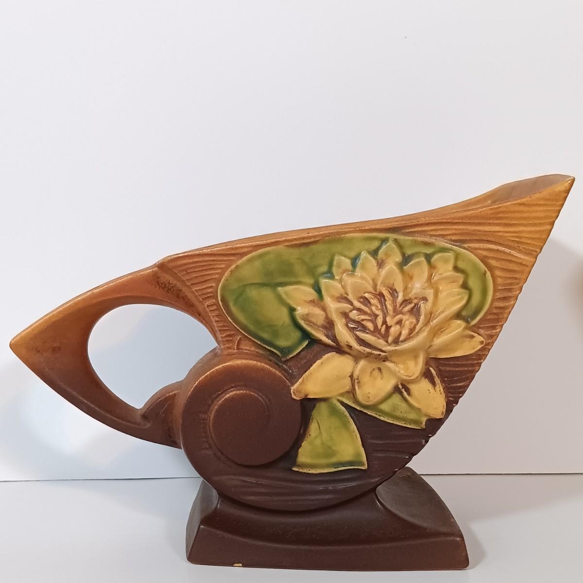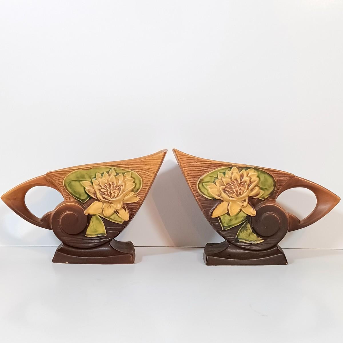 LOT 159: Roseville Pottery Water Lily Cornucopia Vases