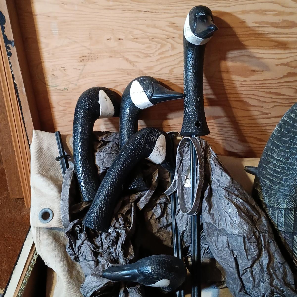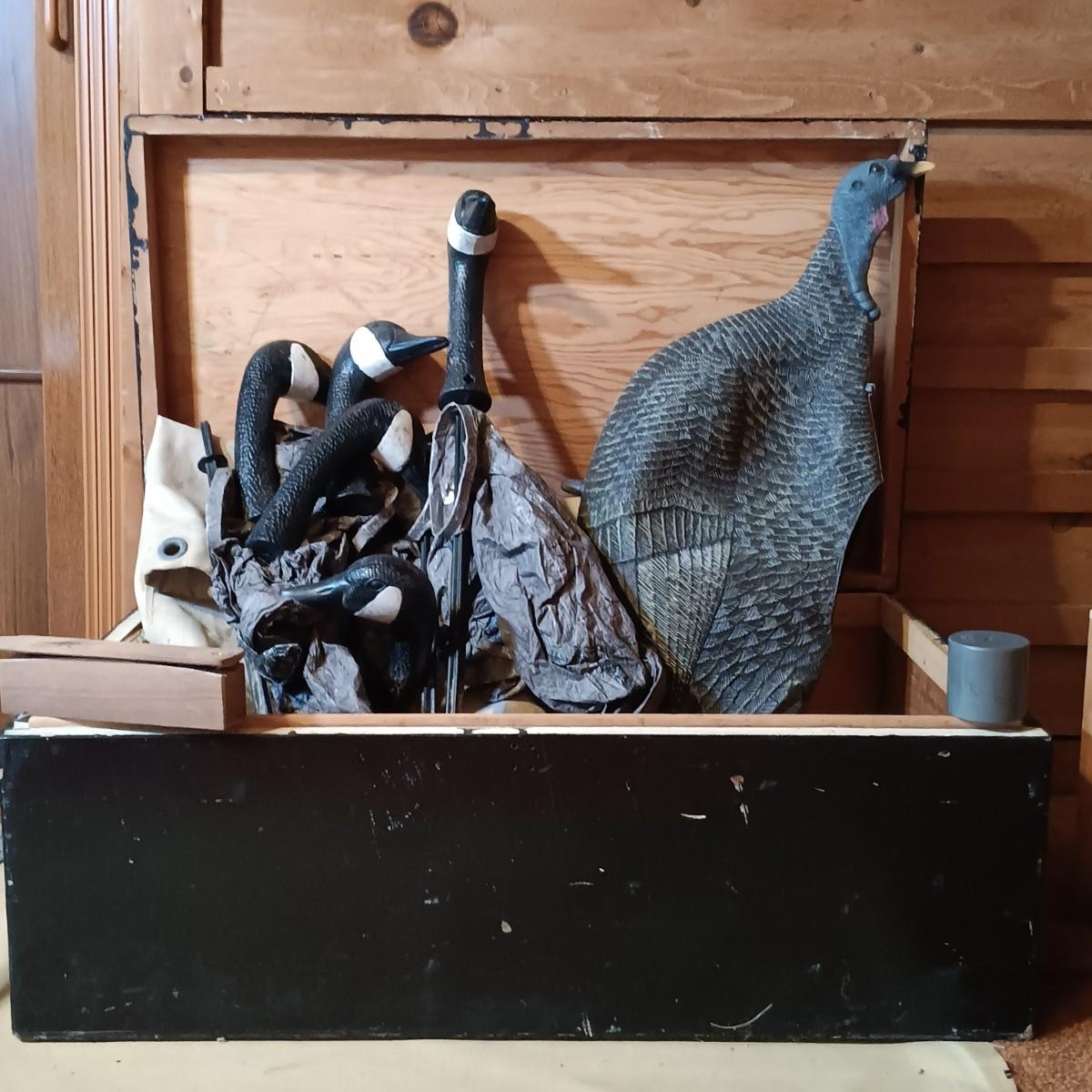 LOT 163: Wooden Storage Box Full of Rubber Duck Decoys and More