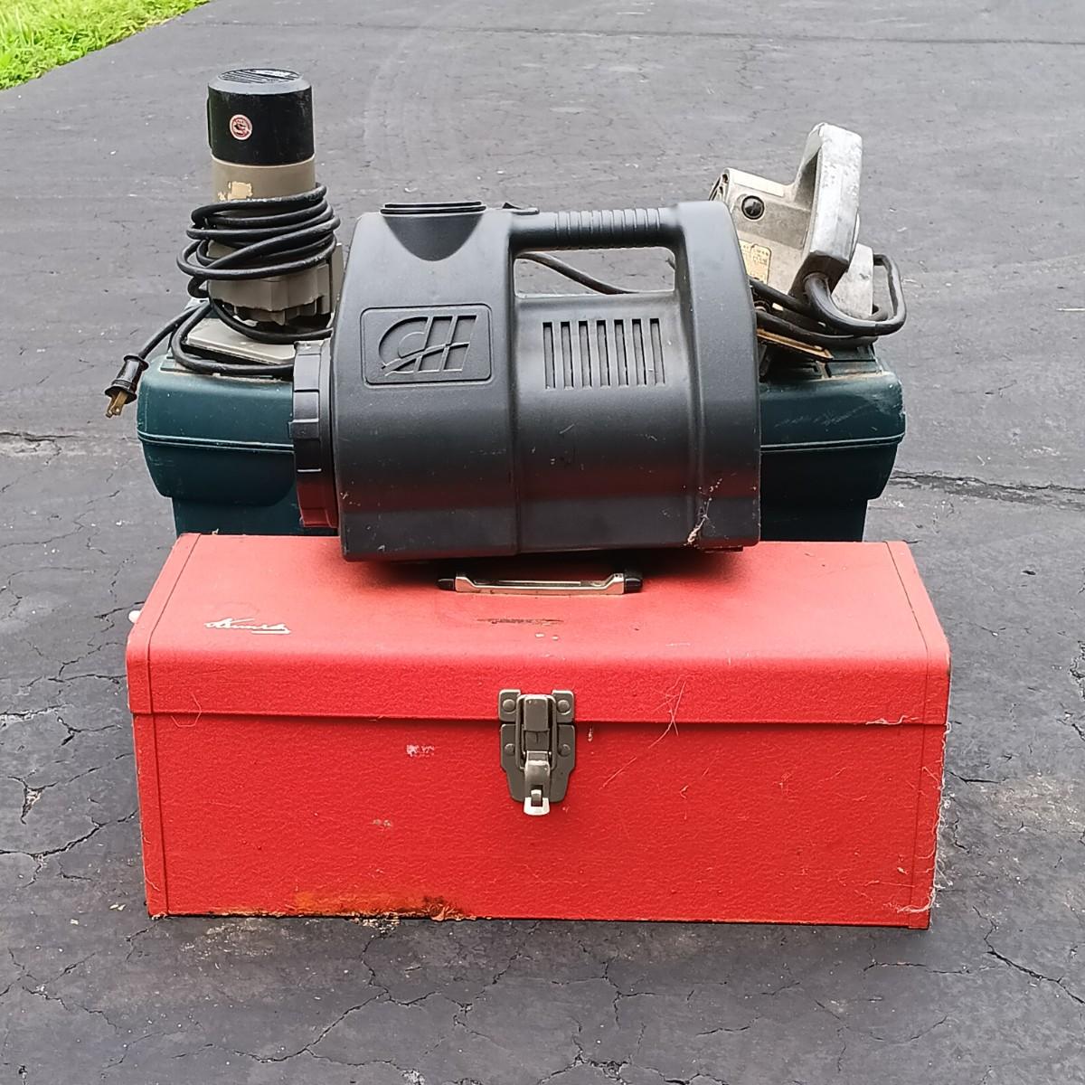 LOT 182: Porter-Cable Laminate Trimmer and Power Unit, and Tool Boxes with Tools and More