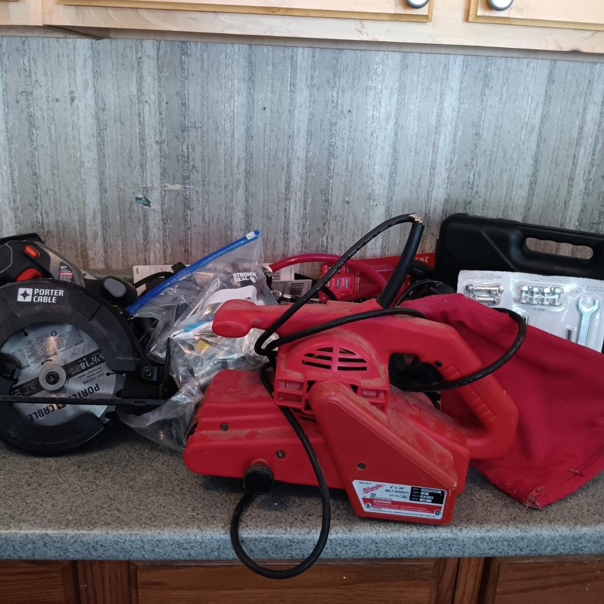 LOT 184: Porter Cable Circular Saw, Black & Decker Jig Saw, Milwaukee Belt Sander and More