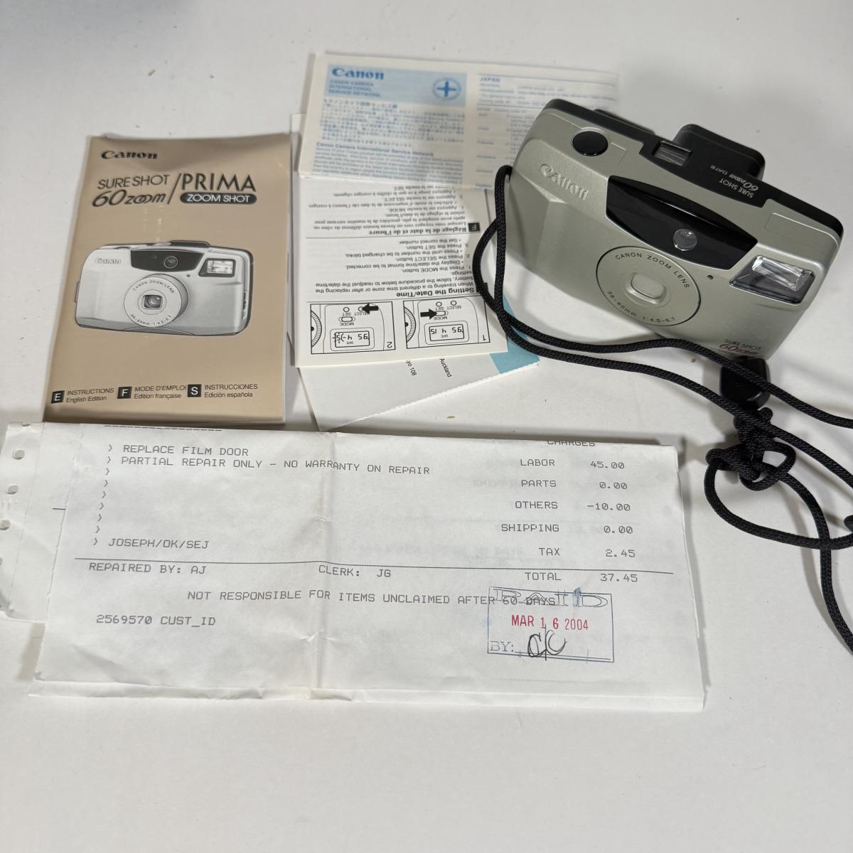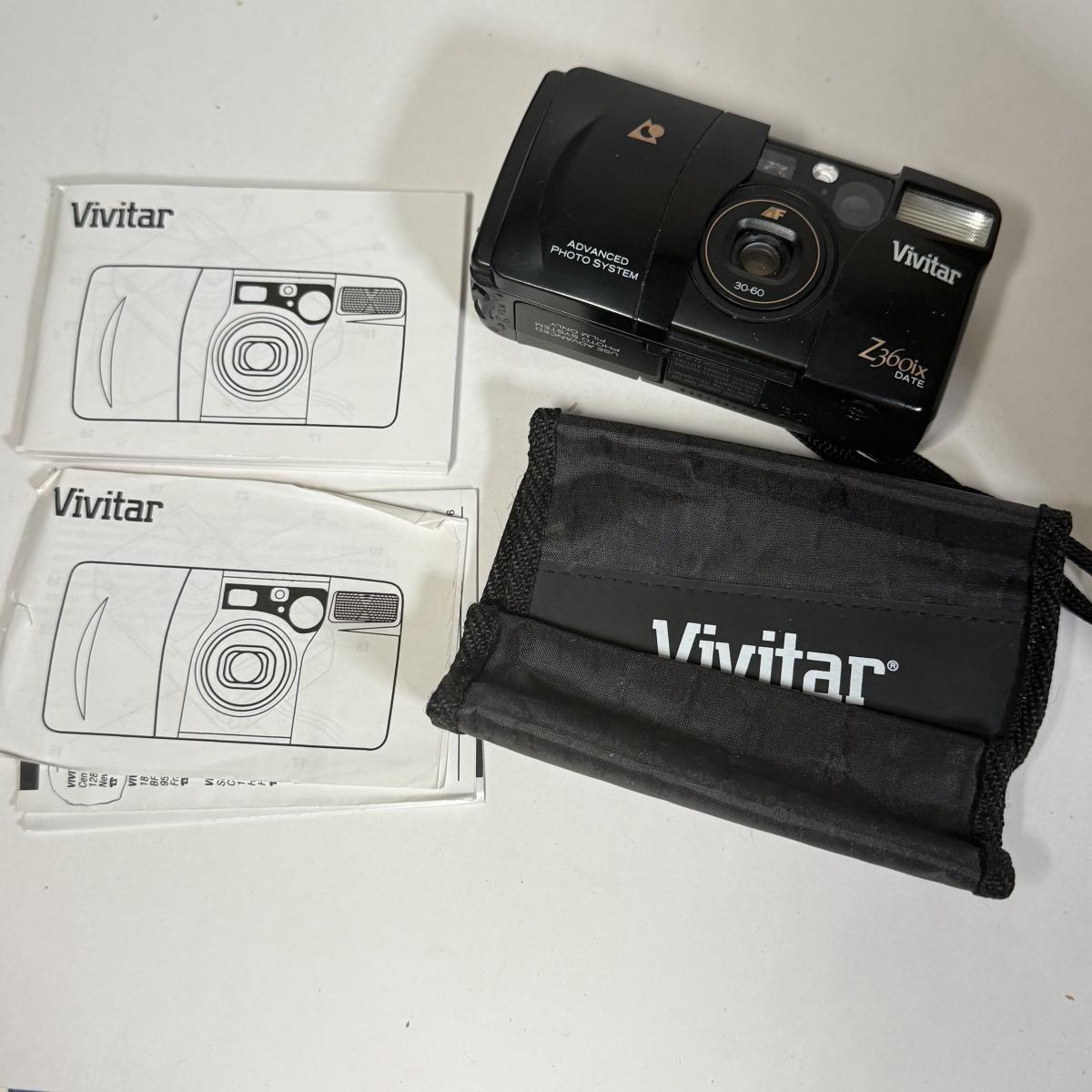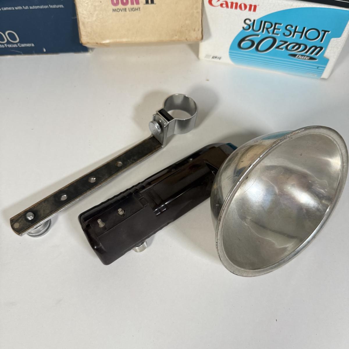 LOT 2D: Cameras & Equipment: Ricoh AF-100 35mm, Vivitar Z360ix, Canon Sure Shot 60 Zoom, Sylvania Sun Gun II Movie Light w/ Box & Kodak Flasholders