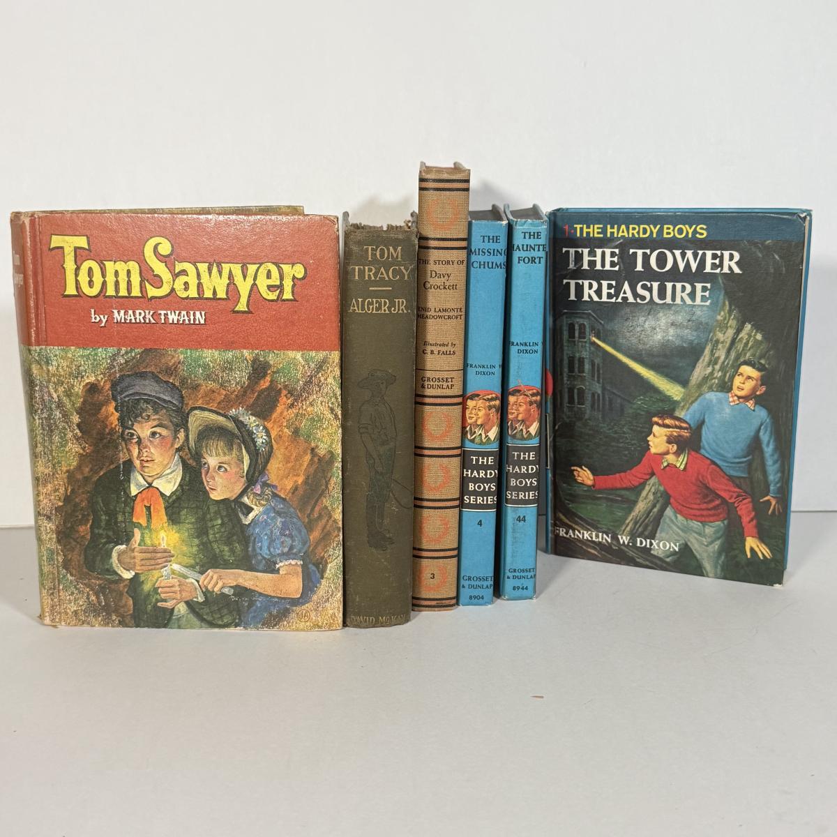 LOT 4K: Vintage Kids' Books: Tom Sawyer (Mark Twain), The Hardy Boys (Franklin W. Dixon), Tom Tracy (Horatio Alger, Jr) & The Story of Davy Crockett (Enid LaMonte Meadowcroft)
