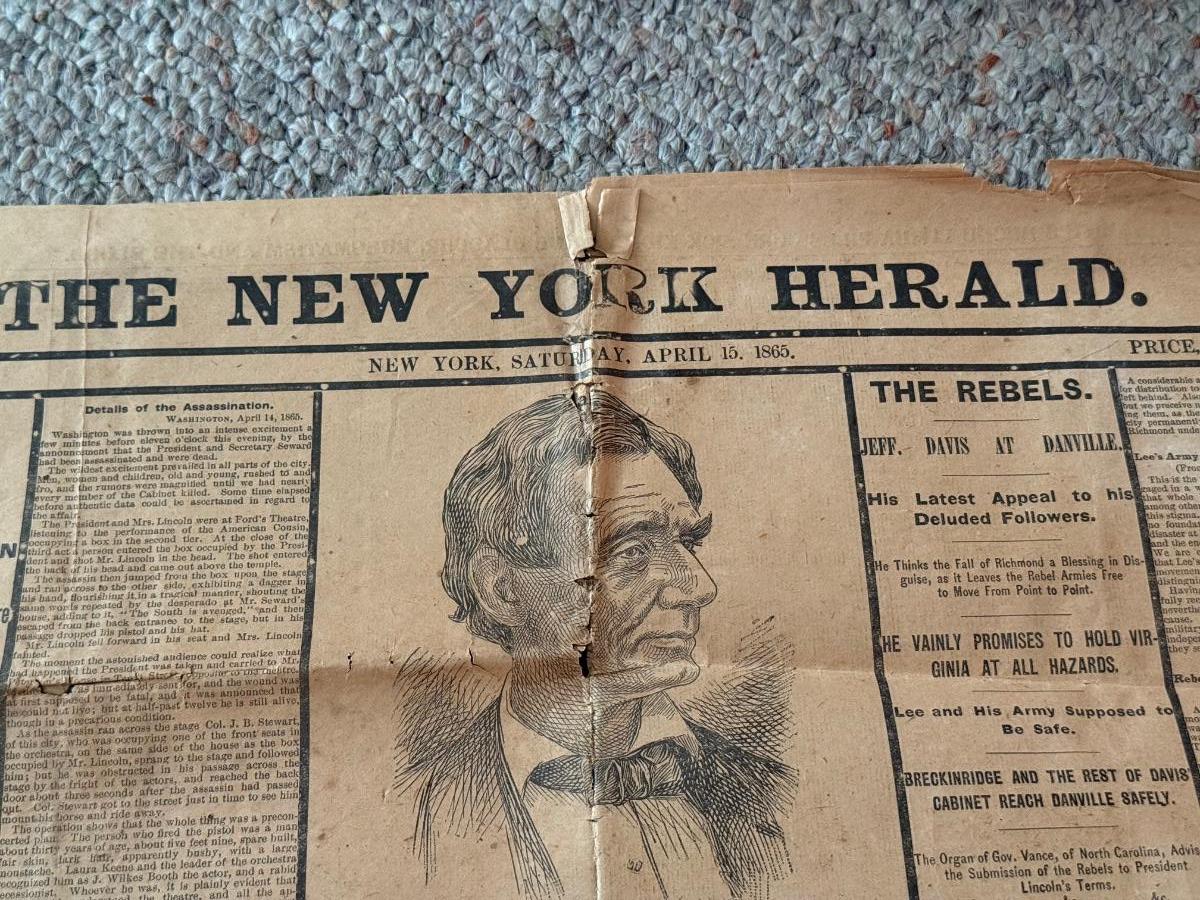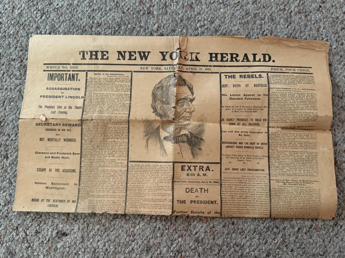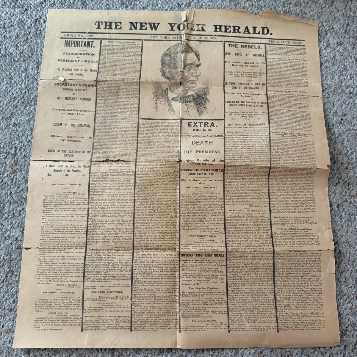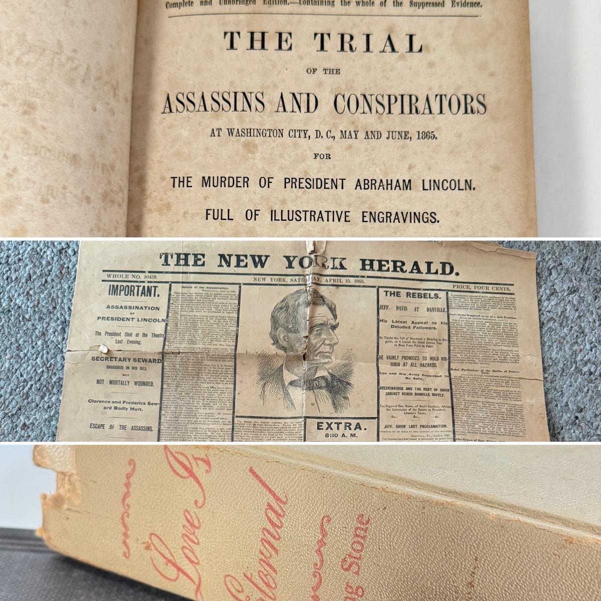 LOT 9K: 1865 Book of the Trial for the Assassination of Abraham Lincoln, 1940s Repro New York Herald Lincoln Assassination Newspaper & "Love is Eternal"