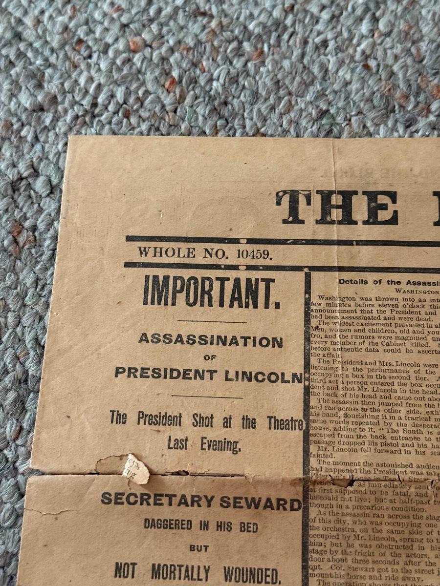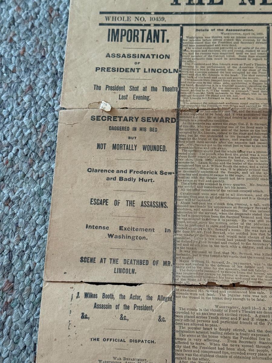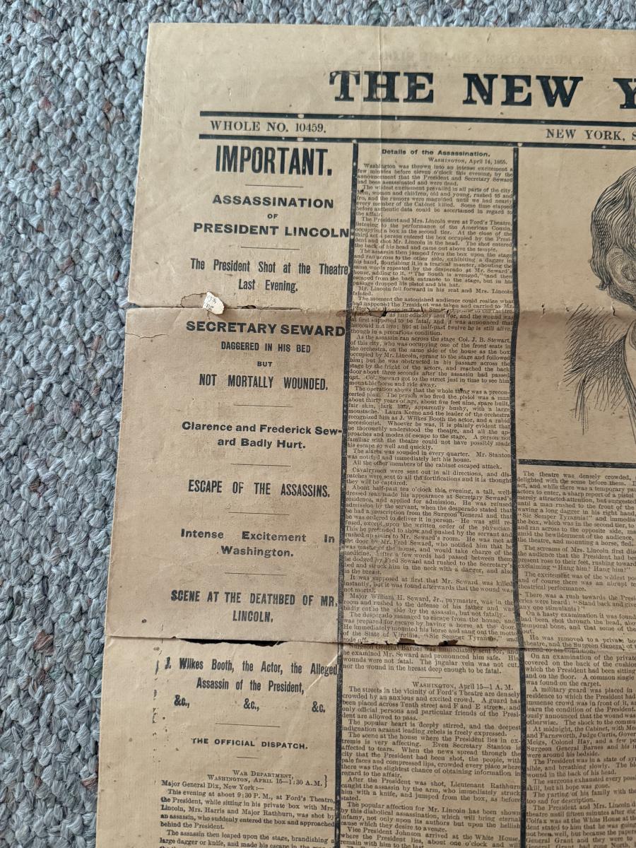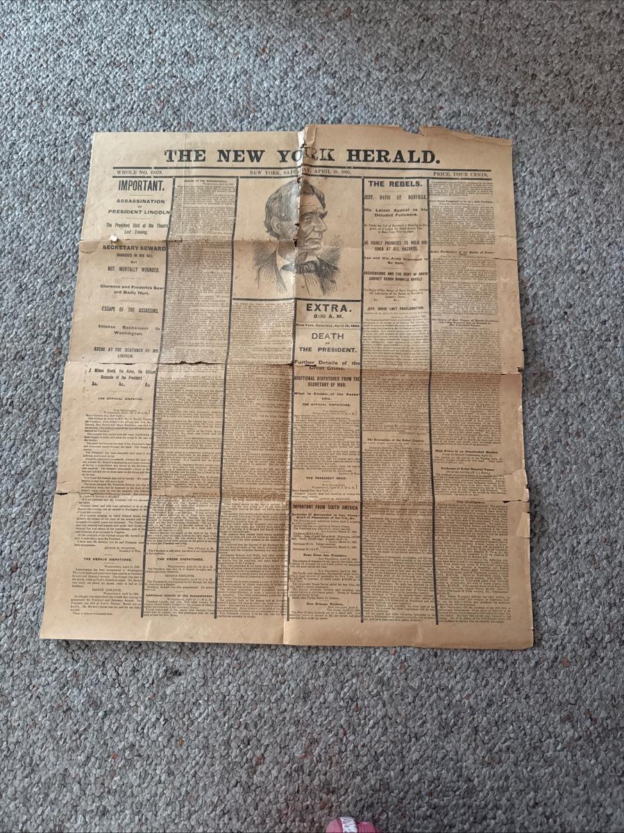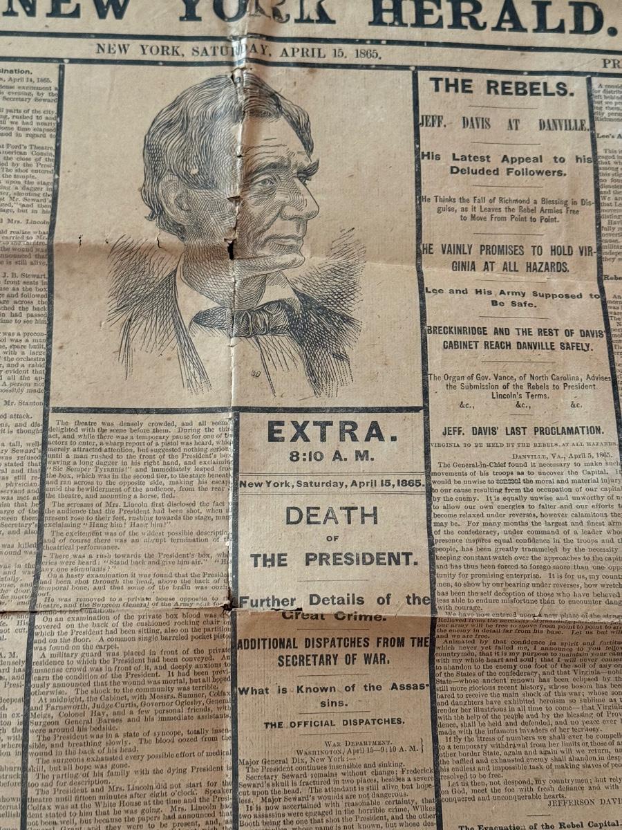LOT 9K: 1865 Book of the Trial for the Assassination of Abraham Lincoln, 1940s Repro New York Herald Lincoln Assassination Newspaper & "Love is Eternal"