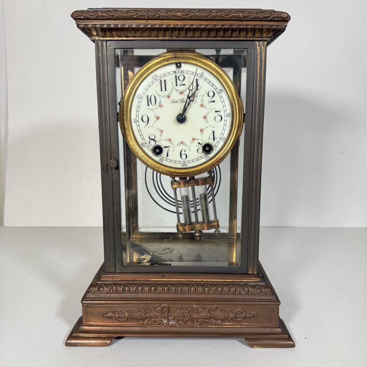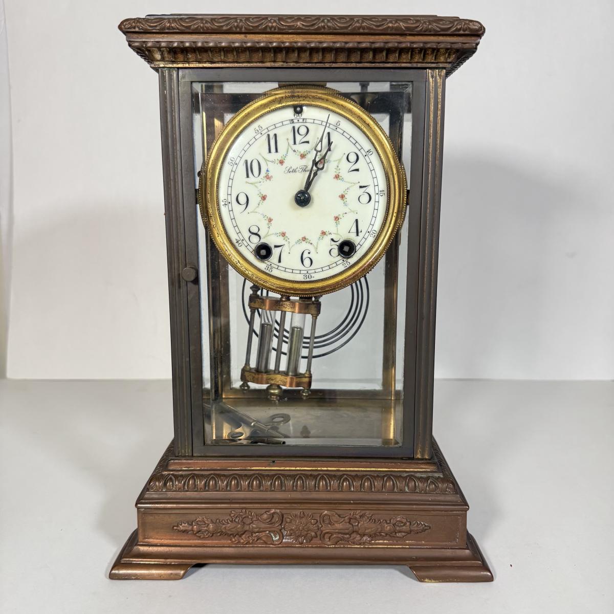 LOT 10L: Vintage Seth Thomas French Style Brass & Glass Desk Clock