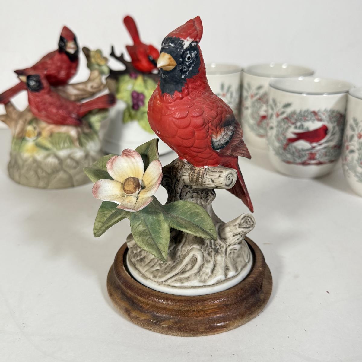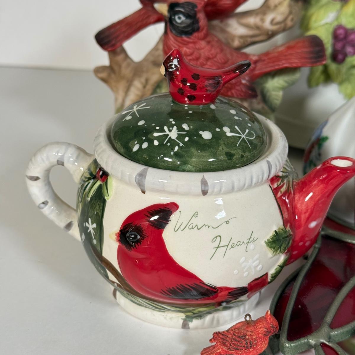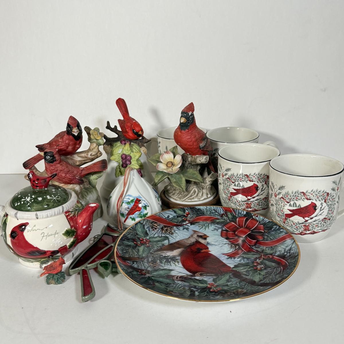 LOT 12L: Cardinal Collection: Franklin Mint Theresa Politowicz Porcelain Collector Plate, Yankee Candle Mini Teapot, Andrea 8627 Sculpture, Four Mugs & More