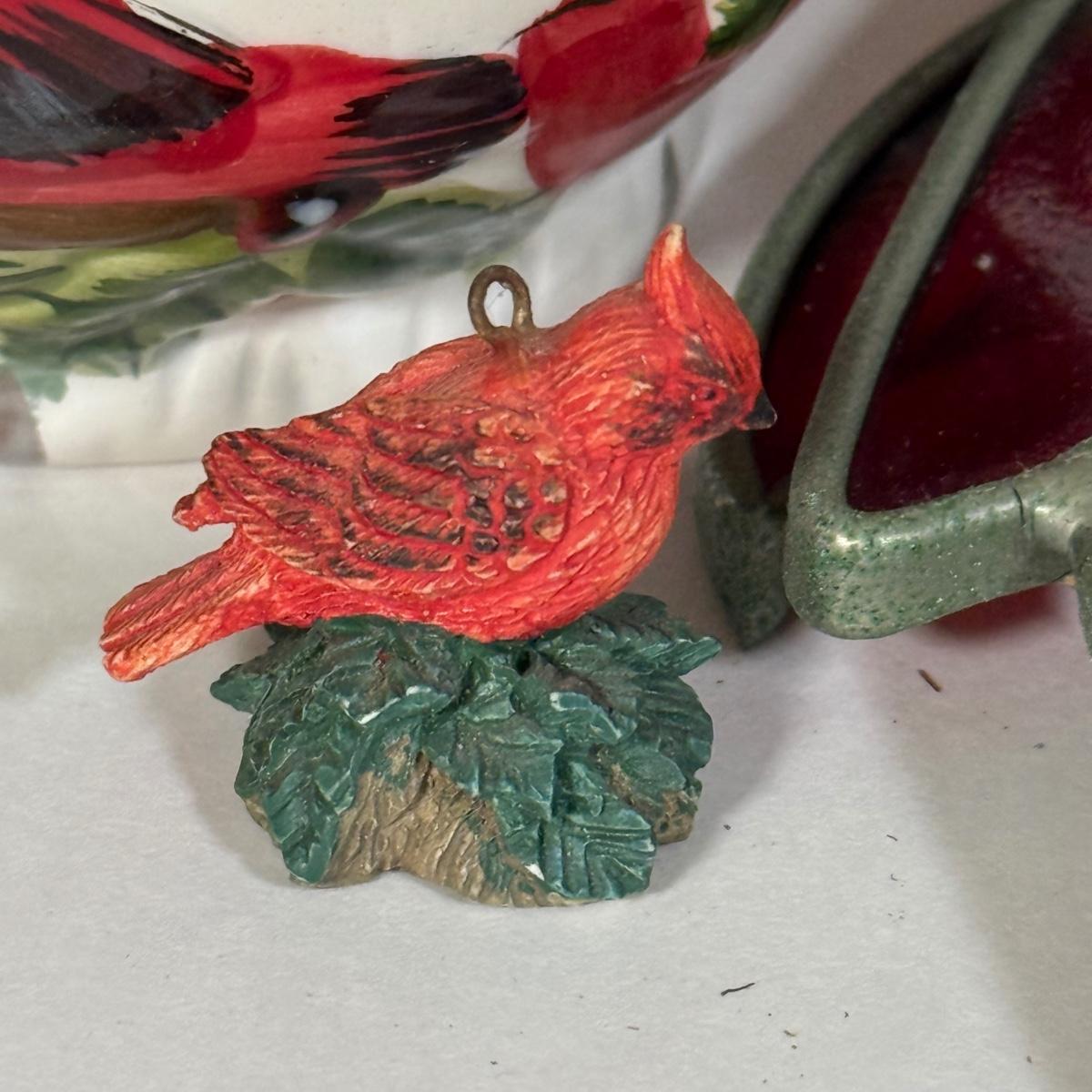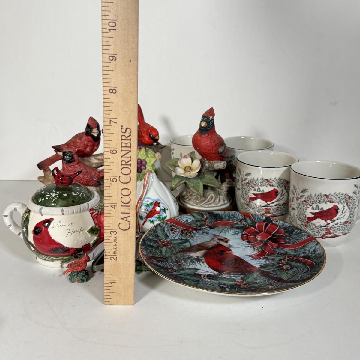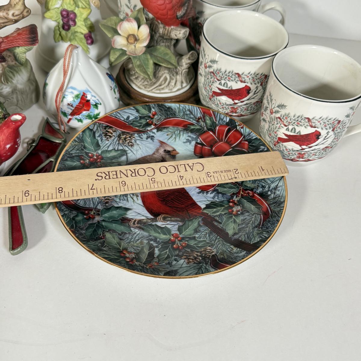 LOT 12L: Cardinal Collection: Franklin Mint Theresa Politowicz Porcelain Collector Plate, Yankee Candle Mini Teapot, Andrea 8627 Sculpture, Four Mugs & More