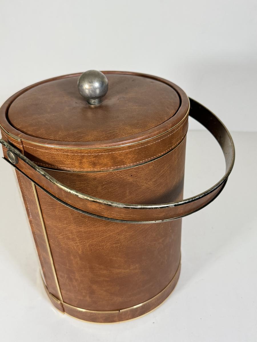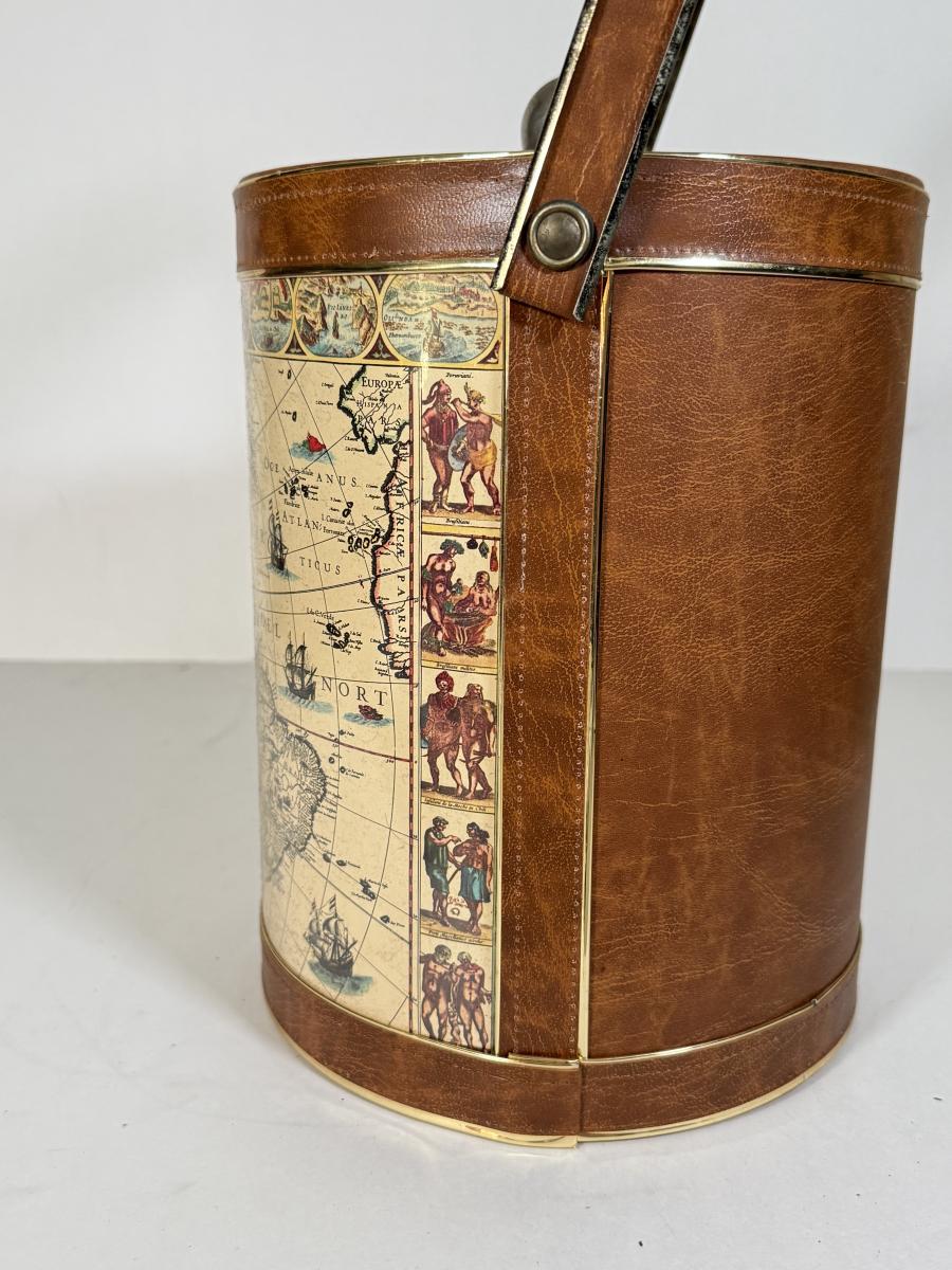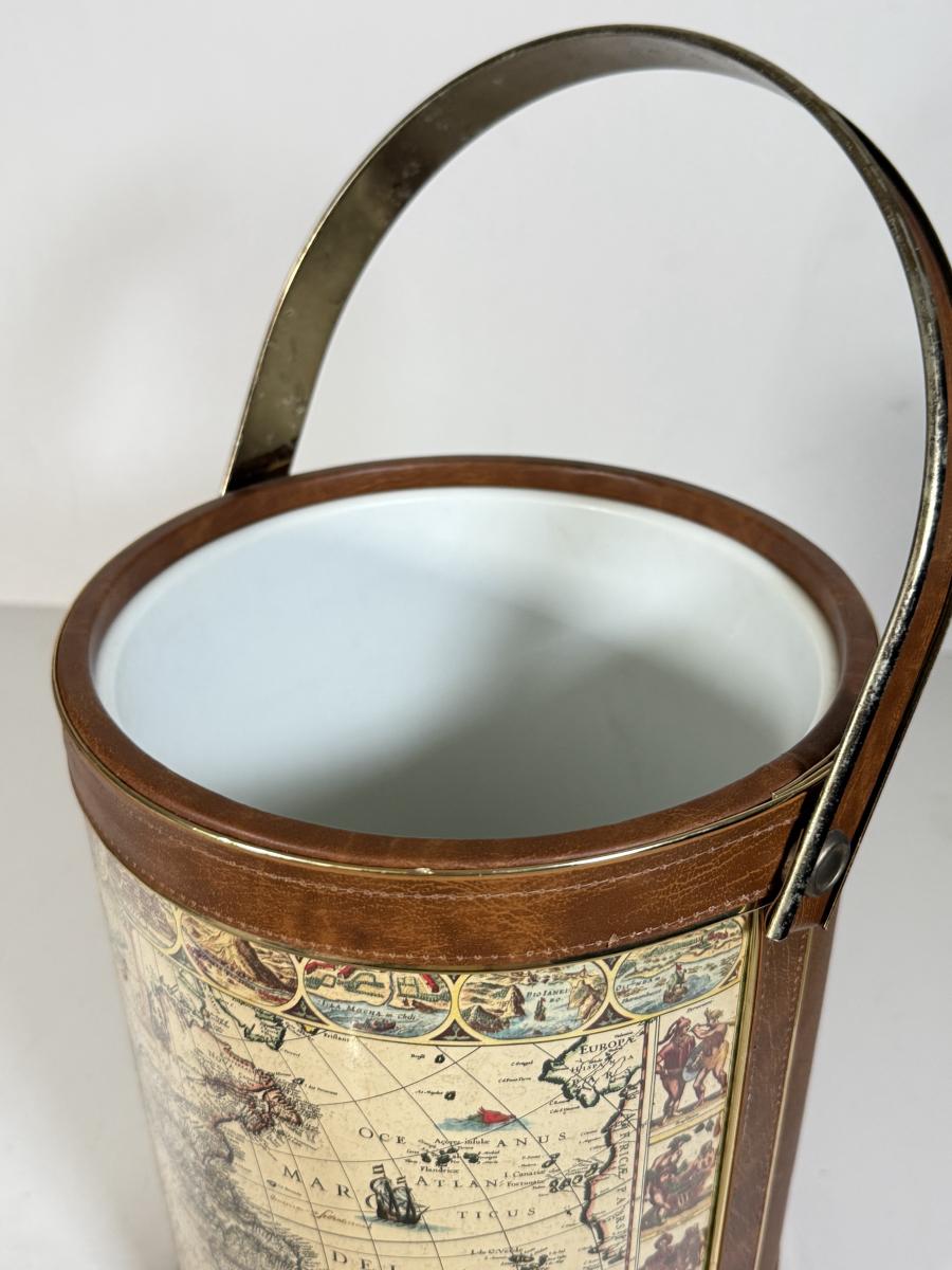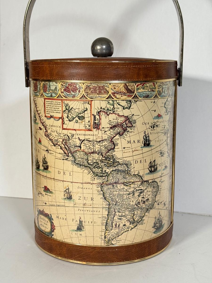 LOT 14K: Vintage Style Map Ice Bucket & Jim Beam Classic Ford Decanter (Empty)