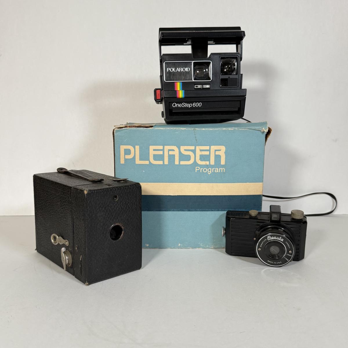 LOT 17L: Vintage Cameras: Kodak Pleaser Program w/ Box, Polaroid OneStep600 & No. 2 Cartridge Hawk-Eye Model C