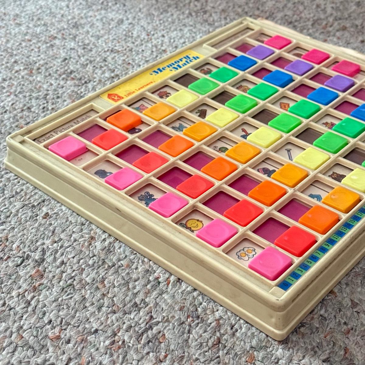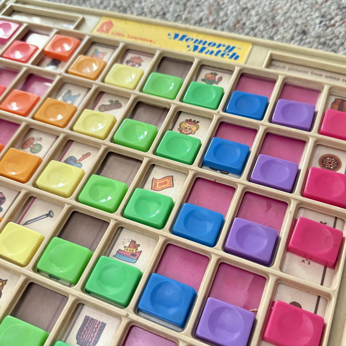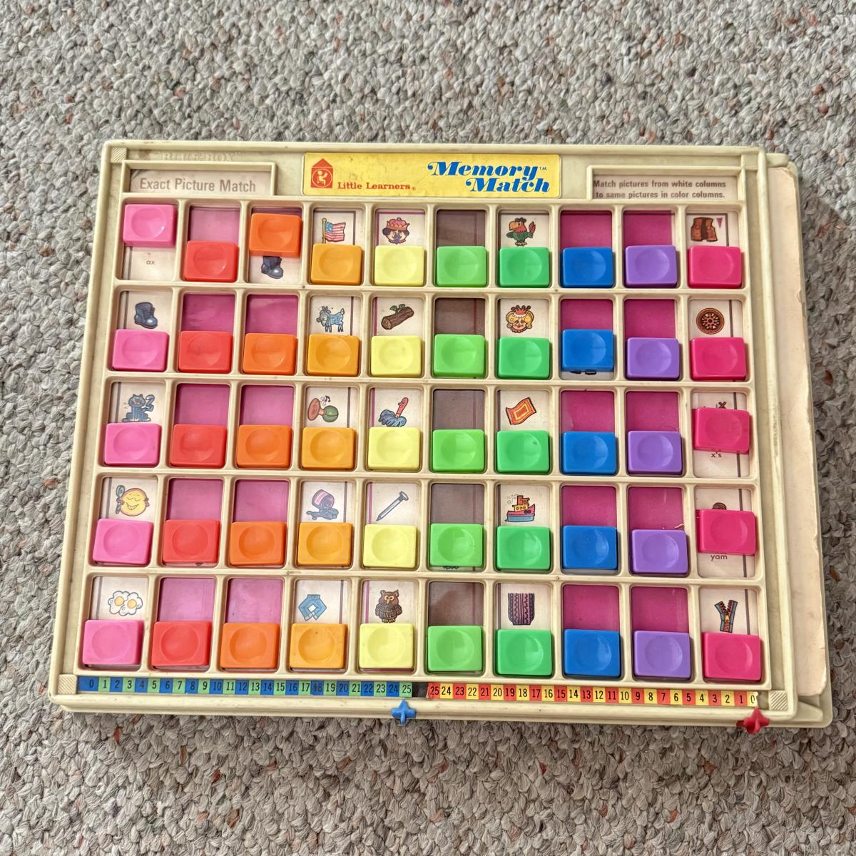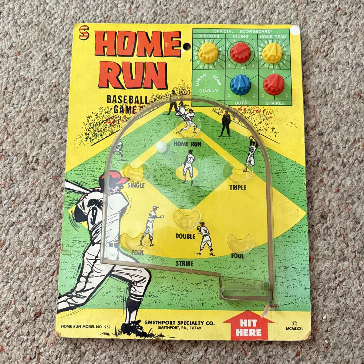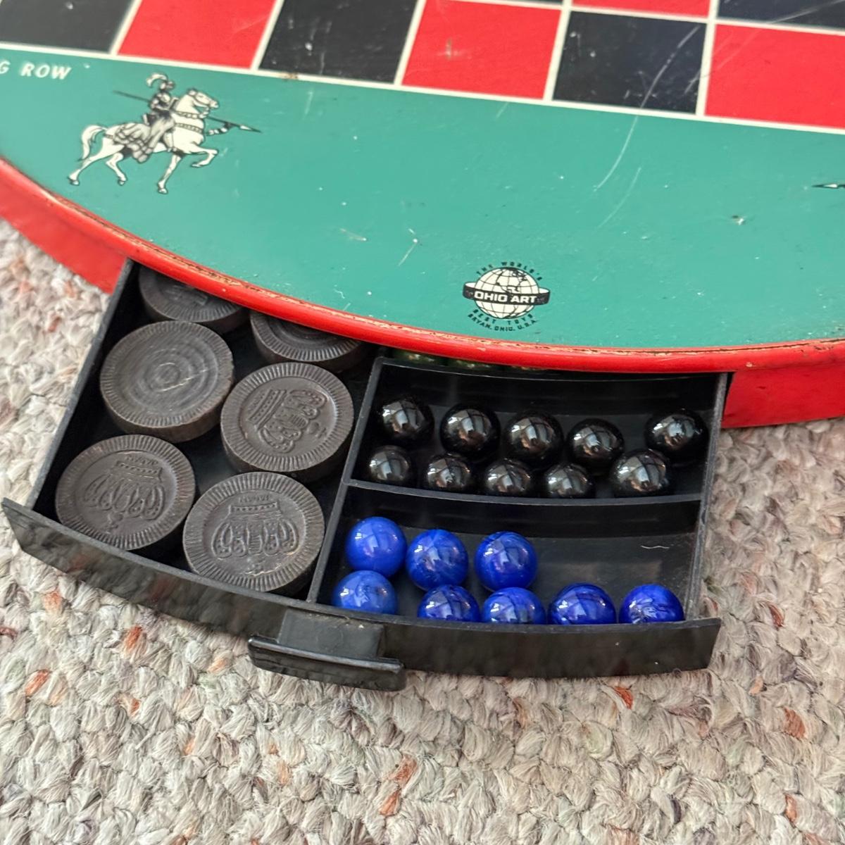 LOT 19L: Vintage Ohio Art Tin Litho Checkers/Chinese Checkers Circular Gameboard w/ Pieces in Drawers, Little Learners Memory Match, 1980s Home Run & More
